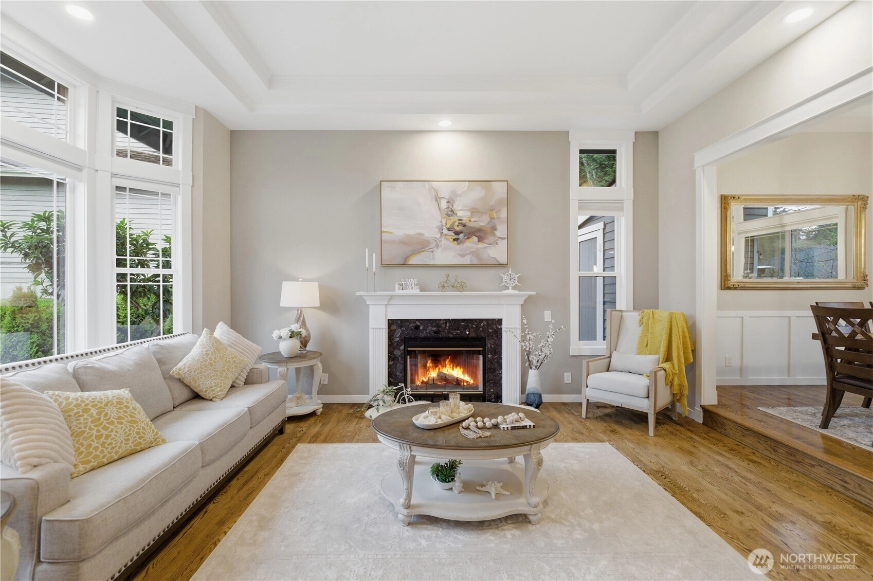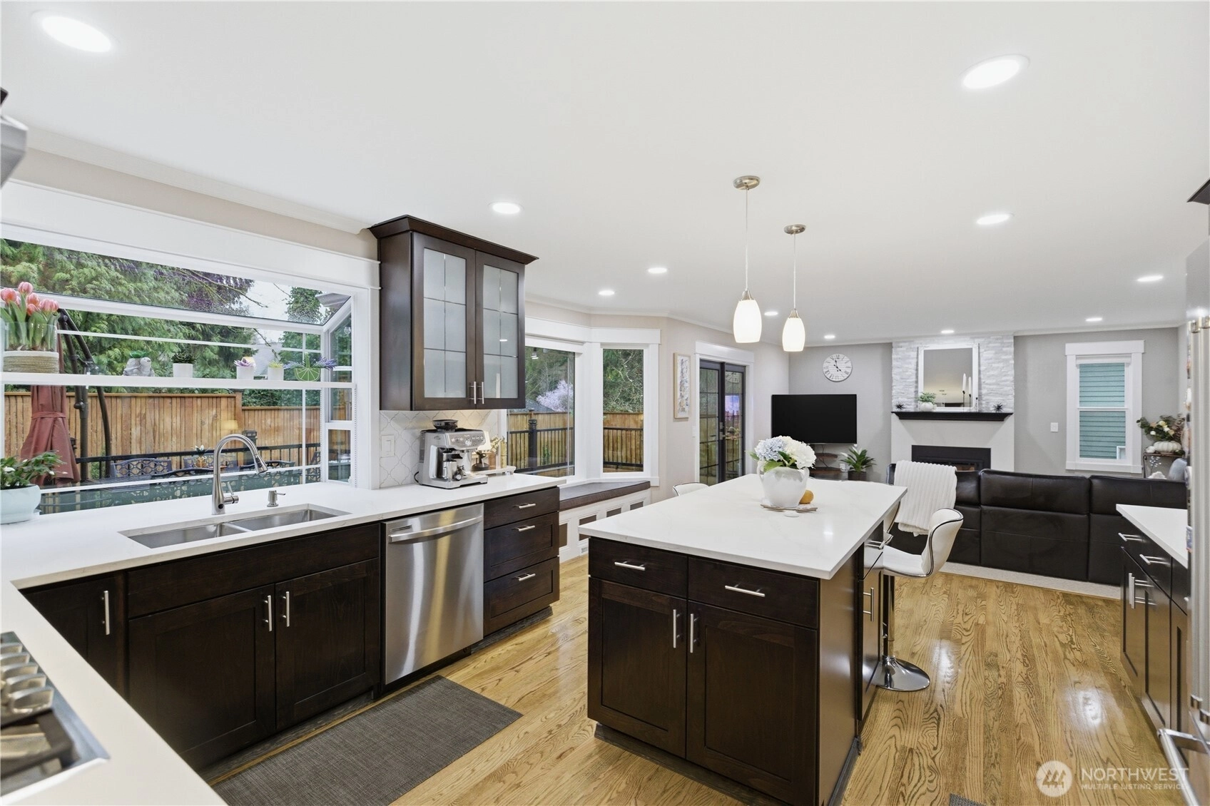 Better than new, completely updated home featuring modern finishes and an abundance of natural light throughout. High ceilings and multiple skylights create a bright and open atmosphere, while two beautiful fireplaces add warmth and charm to the living spaces. The stunning updated kitchen offers stylish cabinetry, quality countertops, and plenty of space for cooking and entertaining. The flexible floor plan includes a convenient main-floor bedroom that can serve perfectly as a guest suite or mother-in-law space. Step outside to enjoy the gorgeous landscaping and a private backyard retreat. The large deck is ideal for gatherings, while the fully finished backyard with elegant pavers provides a low-maintenance outdoor living area. A backyard shed offers additional storage for tools and equipment. The spacious primary suite is a true highlight, featuring a luxurious bathroom with double vanity, freestanding soaking tub, tiled walk-in shower, and a large walk-in closet. This move-in-ready home combines comfort, style, and functionality in a beautiful setting.
