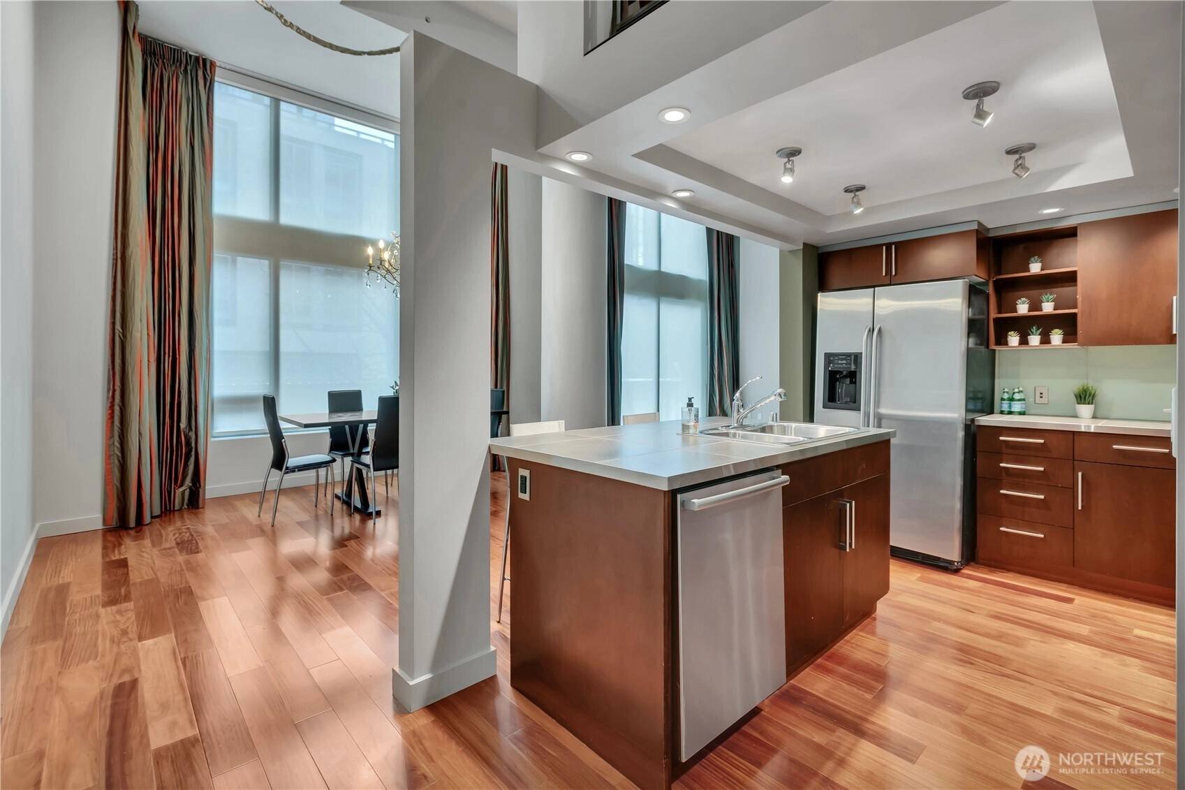 Stunning Live–Work Loft w/European elements in the Heart of South Lake Union. A truly exceptional space, offering refined finishes & an exquisite, light-filled living environment. Formerly operated as the Hedges Family Estate Winery tasting rm, this unique residence features a private 1Br Loft residence+ above, w/a commercial office-retail workspace, workstations, & conference rm (non-conforming) below, creating a rare opportunity for flexible residential &/or commercial w/pedestrian frontage. Distinguished materials include custom limestone shelving sourced from Burgundy, designer light fixtures from Germany, heavy glass doors, & includes a premium sound system. The space offers 2 private entrances, direct street access or entry through the building lobby w/24/7 concierge service allowing seamless separation of living & working environments. Use the space as-is or convert it into a spacious single-family residence. Located w/in the coveted 2200 Westlake mixed-use center (Whole Foods, BofA, 1 Hotel Seattle, Luminous Yoga, Queen Bee Salon/Spa) this live–work townhouse delivers luxury condo living w/soaring ceilings, dark hardwood flrs, expansive windows, & immediate access to world-class amenities: 16 seat theater, fitness ctr, game rm, resident lounge, rooftop terrace, concierge. The lower level features its own entrance off 9th Avenue, ideal for entrepreneurs or professionals seeking convenience, privacy, & style. Included: Gar pkg, storage, some furnishings/media equipment.