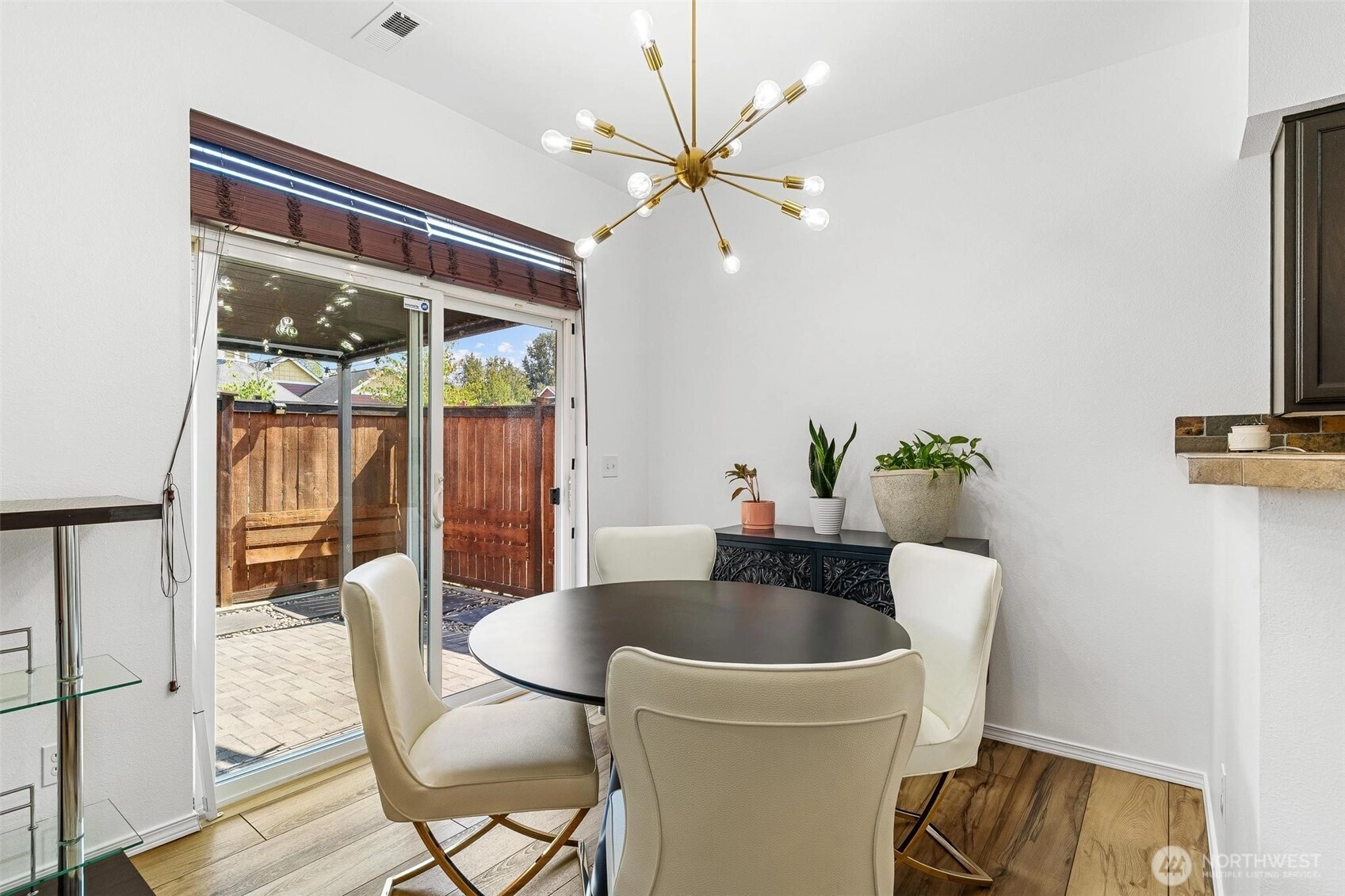 Welcome to Your Serene Retreat in The Village Commons Community Nestled in a gated community with a playground, basketball court, and community center, this charming home blends comfort and style. Thoughtful upgrades include custom blinds, chic light fixtures, chandeliers, LED recessed lighting, fresh paint, a cozy fireplace, and luxury vinyl plank flooring. The main bath features a full renovation and California closet, plus a remodeled half bath. Outdoor living is a dream with a built-in gazebo, fire pit, and freshly stained fence, while the exterior will soon be painted by the HOA. All appliances, A/C units, and a new water heater are included, along with a spacious two-car garage. Conveniently close to I-5, 167, 512. Don’t miss out!