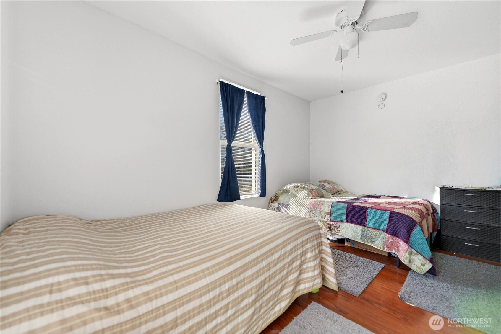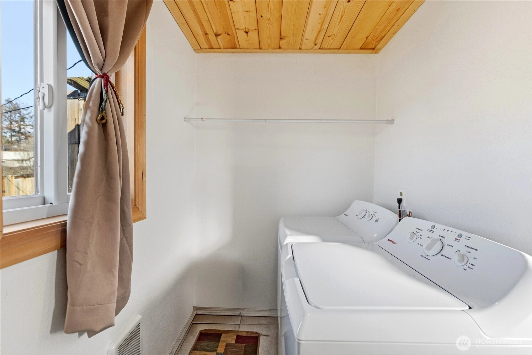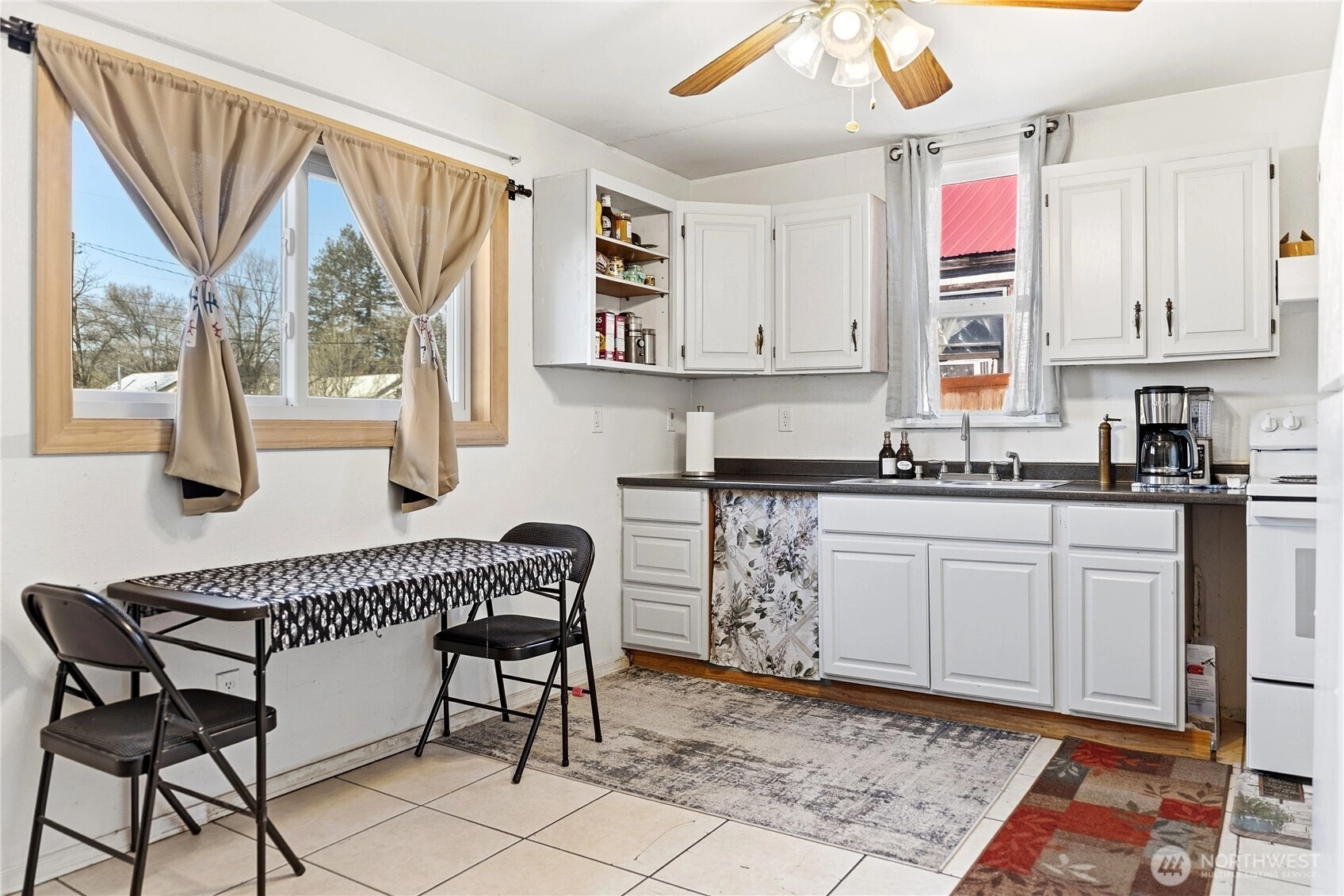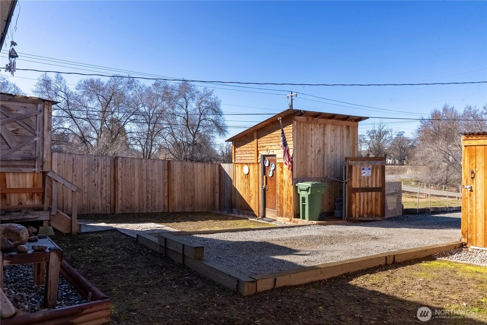 Updated home with loft offering 1,100+ sq ft, 3 bedrooms and 1 full bath. Tiled entry leads to a comfortable living room equipped with new wall radiant heater, ceiling fan, and main bedroom off living room. Kitchen features tiled flooring, newer appliances, hood fan, and mudroom area w/ pantry shelving. Full bath includes tiled flooring, oversized soaker tub with shower. Utility room with new washer/dryer combo. Loft area provides two additional bedrooms, each with new Heat Storm heaters. Fully fenced backyard with two storage sheds. City utilities, metal roof, and a double lot. Conveniently located close to all amenities.