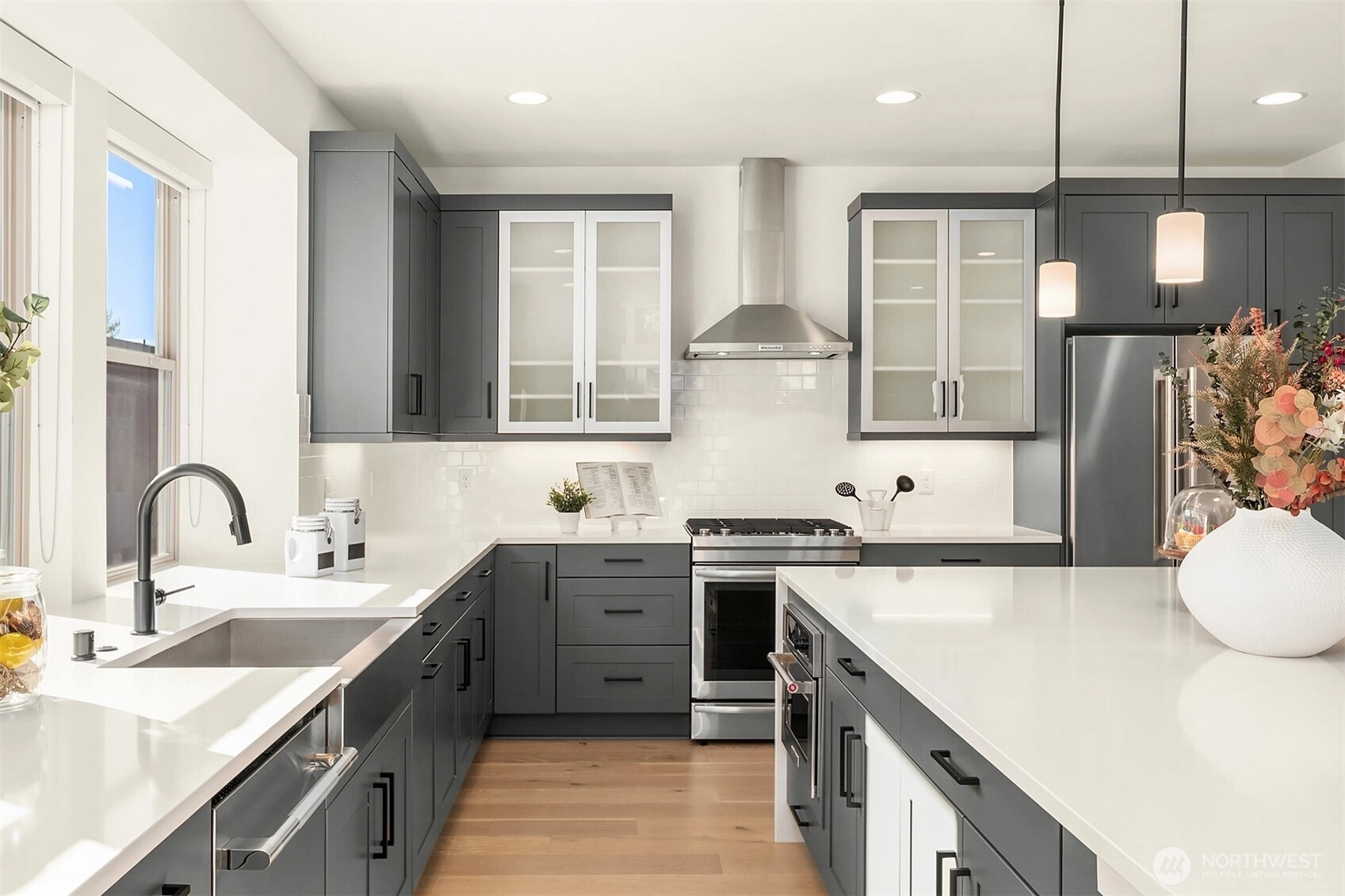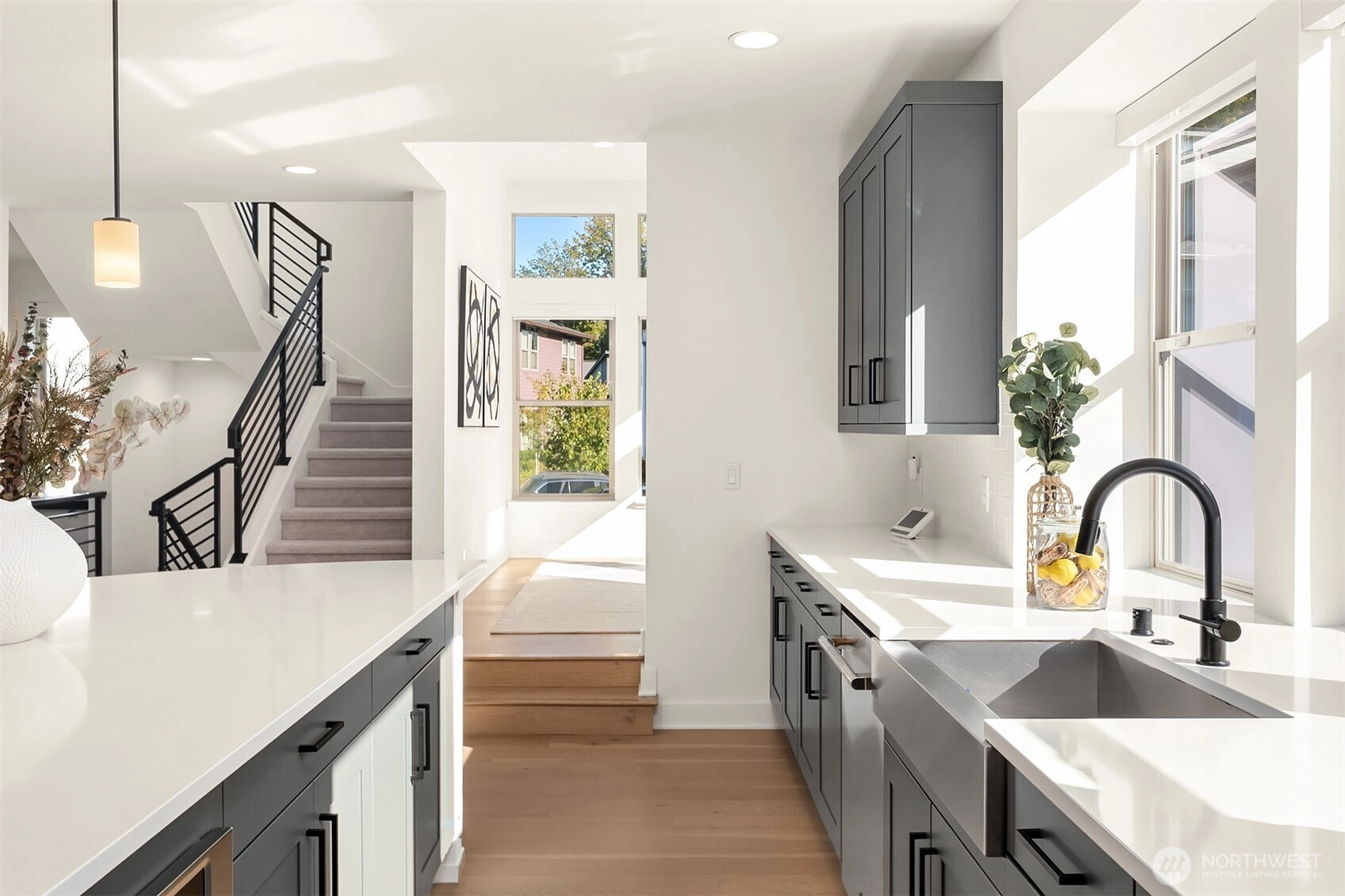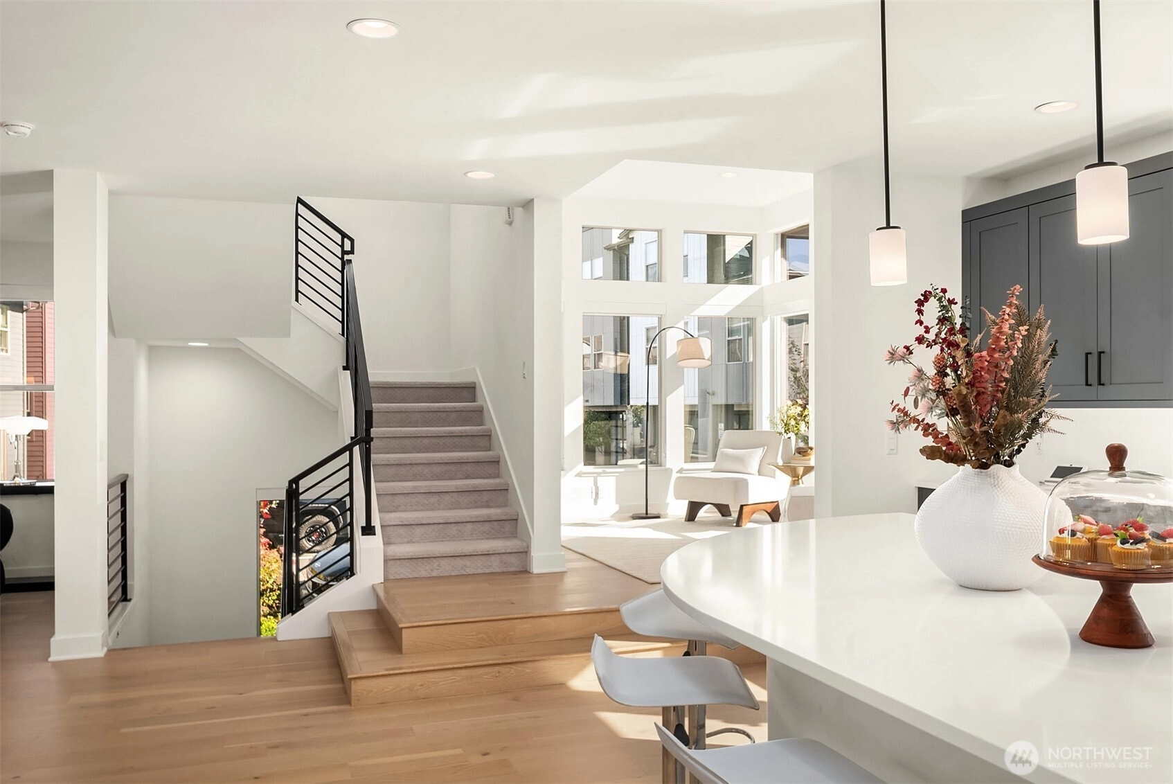 Step into elevated living at Aldea at Newcastle Commons, where space, light, and modern luxury come together effortlessly. This stunning 2,668 sq ft end-unit townhome is filled with natural light from dramatic floor-to-ceiling windows, creating an airy, welcoming atmosphere from the moment you arrive. Thoughtfully designed for both living and gathering, the open-concept layout flows seamlessly into a show-stopping chef’s kitchen anchored by a massive 10-foot quartz island—perfect for hosting, cooking, and everyday moments alike. A private main-floor den offers flexibility for a home office, playroom, or quiet retreat, while the expansive upstairs flex space invites endless possibilities, from den/home office space, media lounge or creative studio. The serene primary suite is a true escape, featuring a spacious walk-in closet and spa-inspired bath designed for relaxation. An oversized two-car garage adds convenience and storage, while resort-style community amenities—including an outdoor pool, fitness center, and beautifully maintained common spaces—enhance the experience. Ideally located with easy access to Downtown Newcastle, Factoria/Eastgate, Downtown Bellevue, and Seattle via I-405 and I-90. All of this, set within the highly sought-after, award-winning Issaquah School District, offers a lifestyle as exceptional as the home itself.