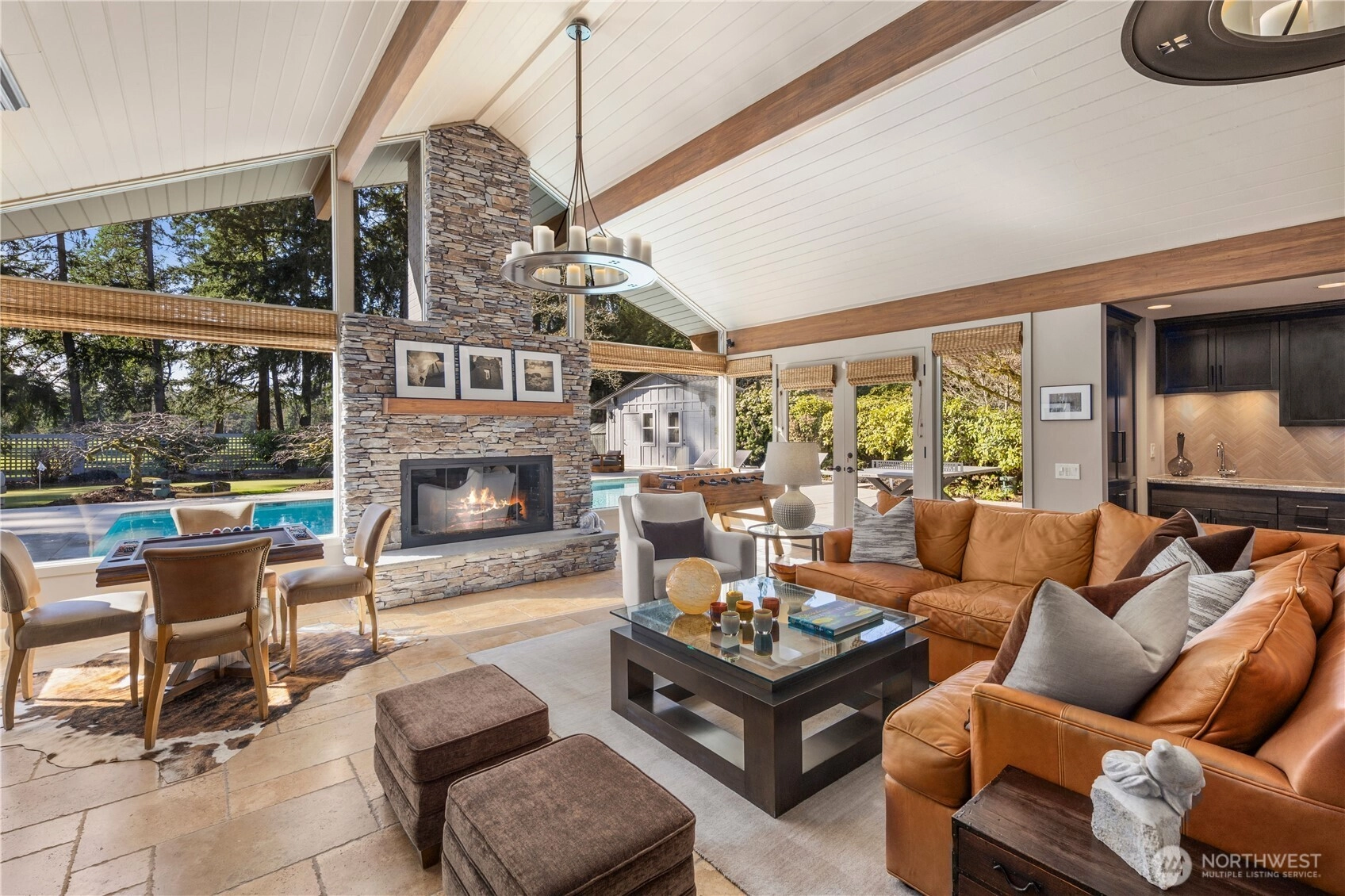 Set along the 2nd fairway inside Tacoma Country & Golf Club, this golf course estate places you at the center of one of Lakewood’s most coveted communities. Here, life unfolds around the rhythm of the club—morning walks to the lake, afternoon rounds of golf, and evenings spent with neighbors. Just under 5,000 square feet of thoughtfully updated living space offers a turn-key blend of timeless design and indoor-outdoor living. Expansive interiors centered around multiple fireplaces create warm gathering spaces, while the layout flows from everyday living to entertaining. Outdoors, the property transforms into a private retreat. A refreshed pool and tile deck set the stage, surrounded by inviting spaces for dining and lounging. Fire features, built-in grilling, and a private putting green overlooking the fairway create the perfect summer evenings. The main-level primary suite offers a peaceful sanctuary, while two additional bedrooms upstairs provide space for guests. A flexible second main-floor suite or den offers versatility for guests, work, or quiet retreat. The lower level features a spacious gym/media room ideal for recreation and relaxation. Life at Tacoma Country & Golf Club extends well beyond the home, offering year-round golf, tennis and pickleball, fine dining, vibrant social gatherings, and access to the shores of American Lake. This is more than a residence, it is an opportunity to live the lifestyle that makes Tacoma Country & Golf Club so special.
