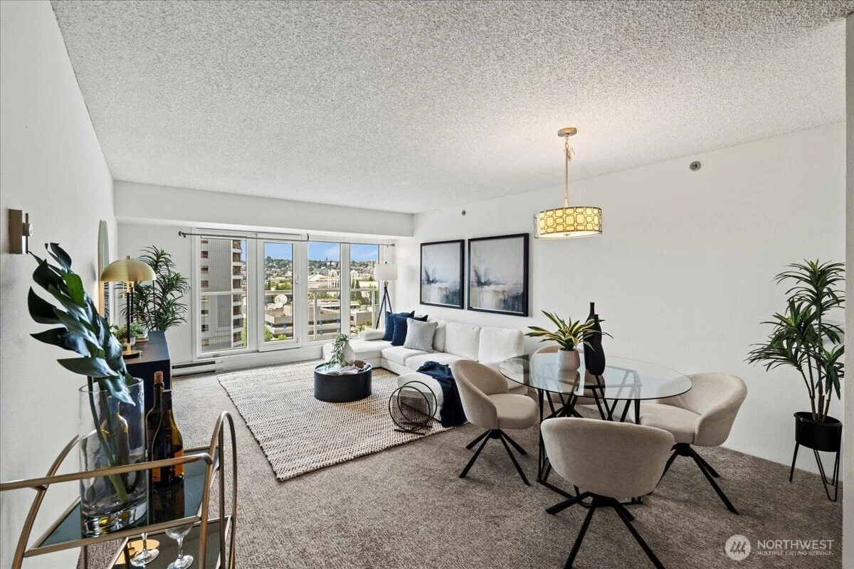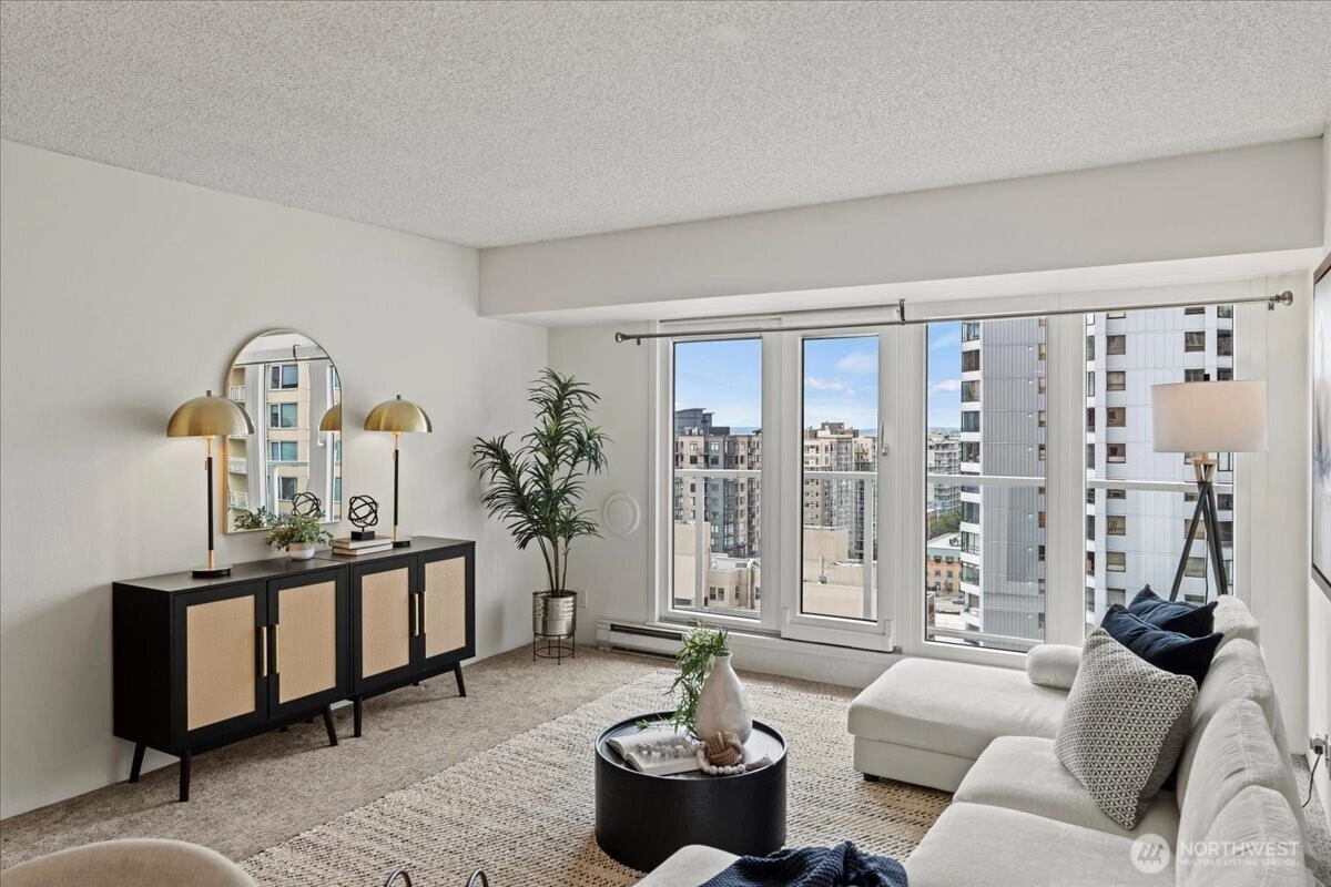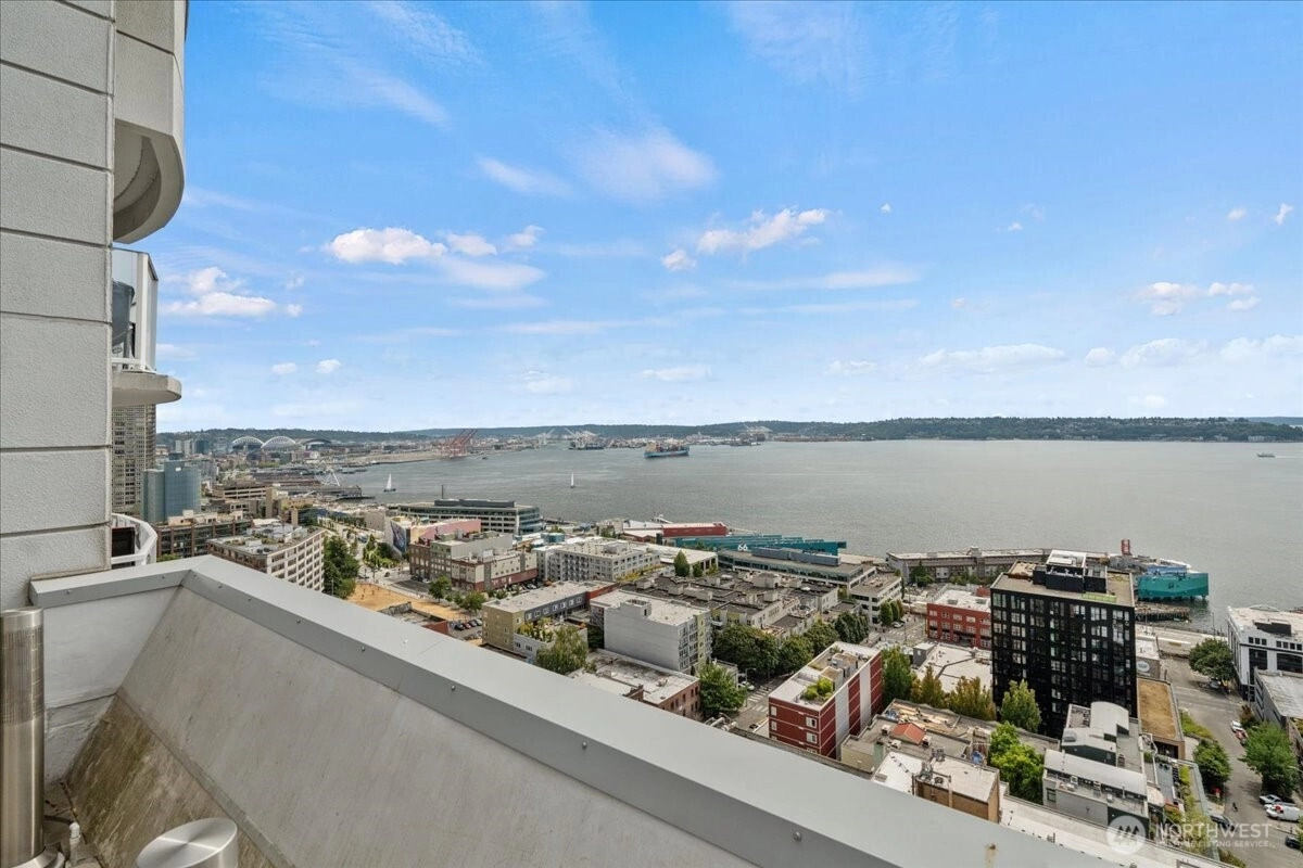 Experience elevated city living with panoramic Puget Sound views! This Arbor Place Tower condo lives like a penthouse above Downtown Seattle & Belltown. Enjoy NW exposure, a private deck with Elliott Bay views, & a bright open layout with new kitchen appliances, new windows, and an AC port. Spacious bedroom w/ views, in-unit washer/dryer & a full bath. Luxurious Resident only amenities include 24/7 concierge service, 4 rooftop view decks w/ BBQs & entertaining space, indoor pool, hot tub, Sauna, fully equipped gym, owner’s lounge & guest suite! Pet-friendly building with NO rental cap, secure garage parking & additional storage. Just blocks to Pike Place, transit & the best of city living. Ideal for full time home or a great investment!