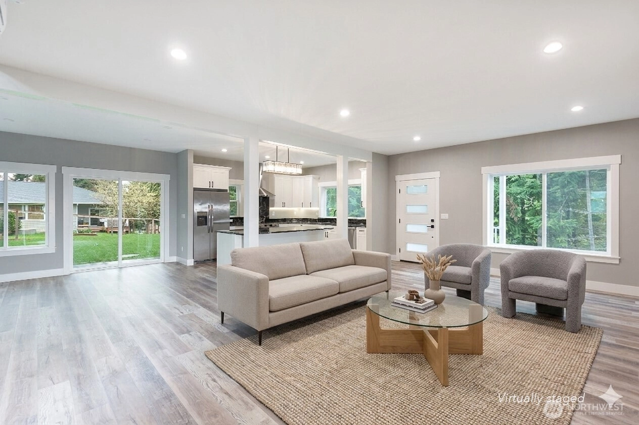 Beautifully crafted luxury home in the desirable Dungeness Heights neighborhood of Sequim. This 4 bedroom, 3 bathroom home offers 2,616 sq ft with 9’ ceilings, wide hallways, and thoughtful design throughout. The spacious primary suite includes an ensuite bath with double vanity, full quartz shower, large soaking tub, and two closets. Granite and quartz surfaces run throughout this home—down to the laundry room. Two bonus office spaces—one upstairs and one downstairs—provide flexibility for work or hobbies. Enjoy a cozy propane fireplace and efficient ductless heat pump for year-round comfort. Luxury tile and luxury vinyl plank flooring run throughout the home, complemented by a powder-coated black rail and custom touches like toe-kick lighting along the stairs. Situated on a .30 acre lot with an oversized garage and abundant storage throughout. Close to town, lavender farms and produce stands.