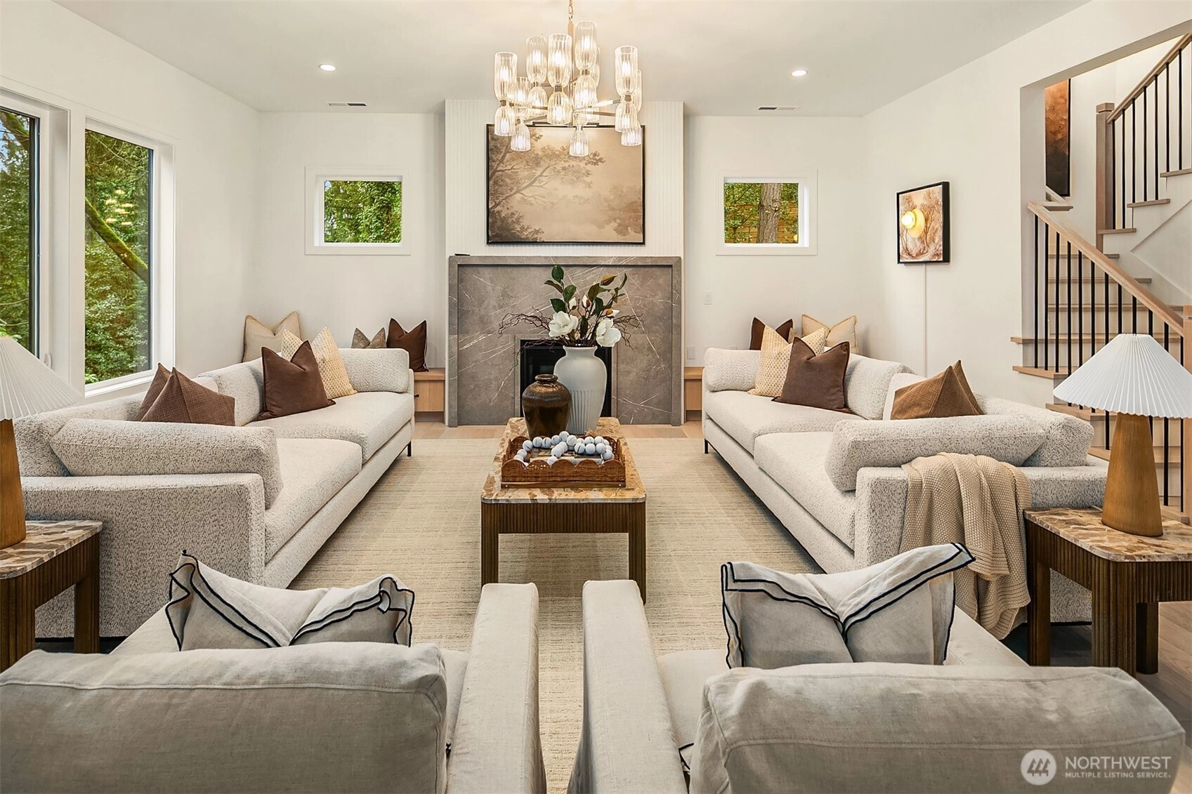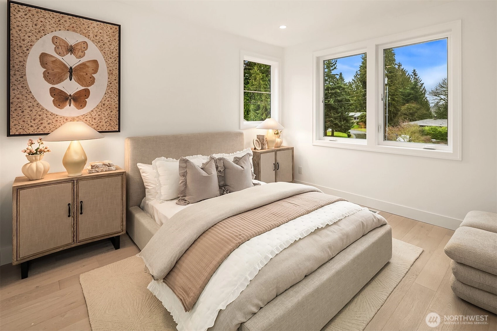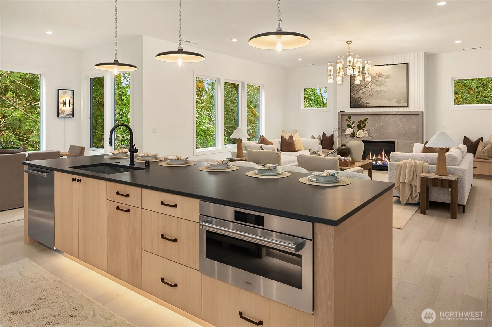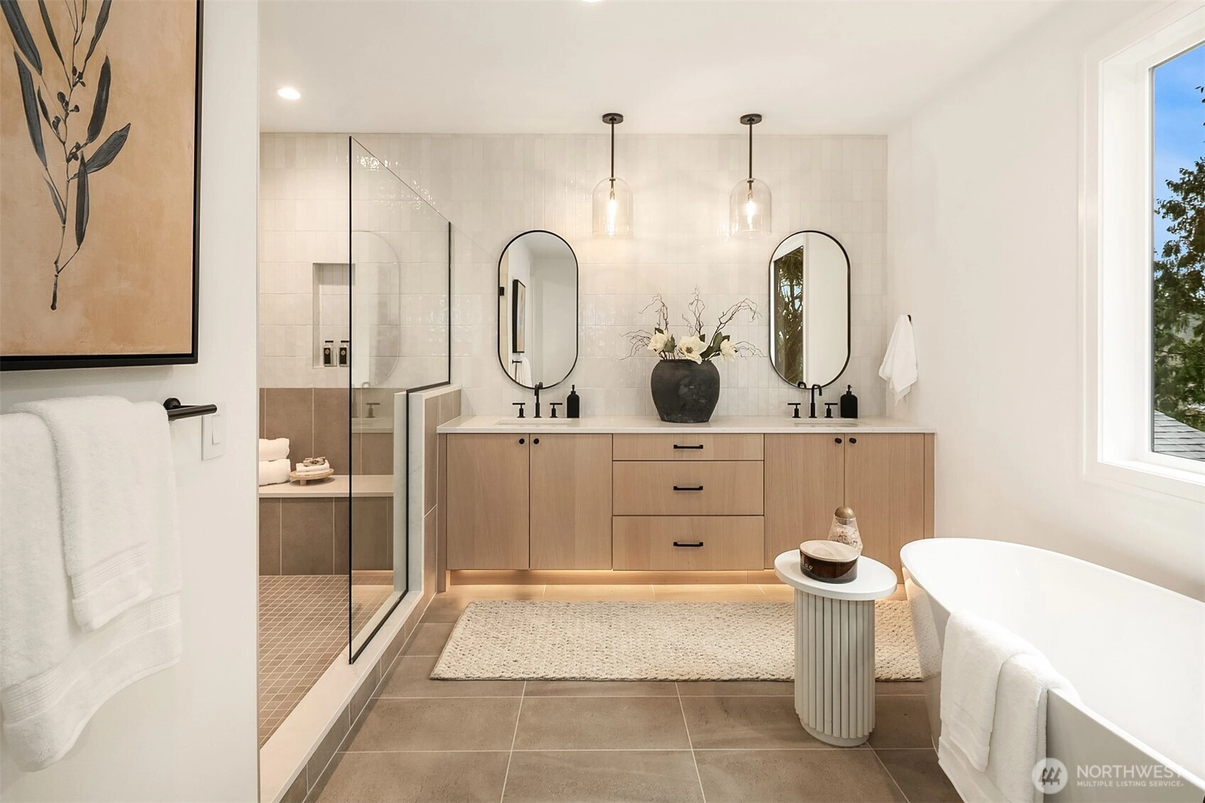Welcome home to exceptional new construction in Hidden Hills by Thomas James Homes. Set on a generous and distinctive homesite, this thoughtfully designed residence offers three spacious levels of modern living and custom designer touches throughout. Main level features formal and casual living areas, a private office, guest en-suite, and a covered heated deck for year-round entertaining and outdoor living. Upper level offers a relaxing primary retreat, three additional bedrooms, and an open vaulted rec space. The walk-out lower level adds flexibility with a guest suite, media room, rec room with kitchenette, exceptional storage including a walk-in crawlspace, and two outdoor living spaces. Walk to nearby trails, parks, and dining, and enjoy being minutes from Bellevue Square, top schools, and the Eastside tech corridor.