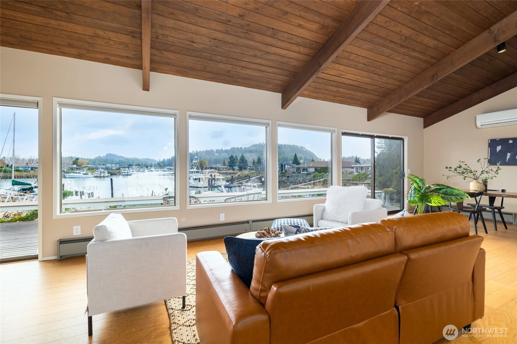 Live the life in this beautiful 2 bd, 3 bth, plus office, 2179 sq ft home with your own private 40' dock. Huge deck, with room and hook up for a hot tub. this home has been newly painted inside and out. Large light primary suite has fireplace and access to the deck. The second suite features a private bath. 3 car garage with abundant storage and plentiful parking. Leased Land.