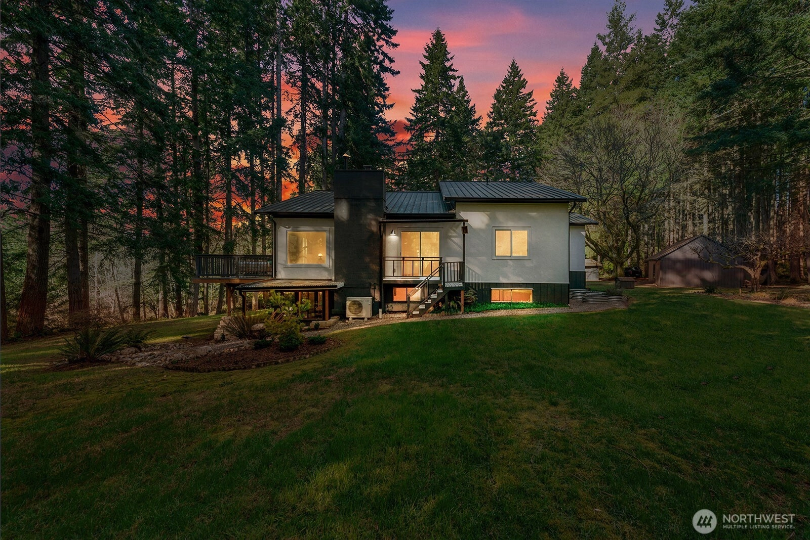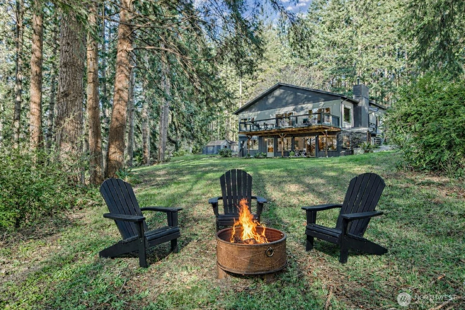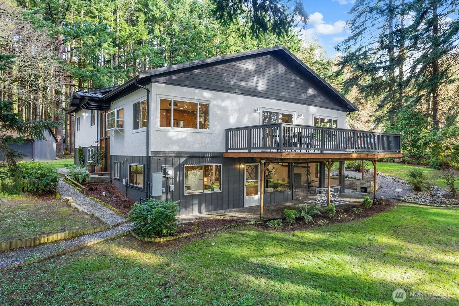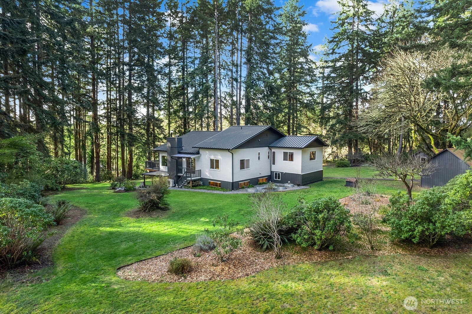 Set on 3 serene acres on Vashon Island’s coveted westside, this spacious 4,040 sq. ft. home offers flexibility, privacy and room to live, work and create. Surrounded by towering firs with territorial views and glowing sunsets, the setting feels peaceful and private yet easy access to town, schools, Seattle ferry and nearby trails at Shinglemill and Fern Cove Preserves. Perfect for multi-generational living or extended living, this entertainment style 4-bedroom, 3-bath home features a studs out remodeled main level with bamboo hardwood floors, new windows and stunning kitchen. Gorgeous tongue and groove wood beamed ceilings highlight the main floor which extends to three bedrooms and two updated baths situated privately in separate wings. The open-concept kitchen and dining area with gas cooking, breakfast space and eating bar flows easily to the large deck—perfect for dining alfresco. Large windows brighten the living and family rooms, each anchored by classic brick fireplaces, while the walk-out daylight basement expands the possibilities with a second living space & kitchen, full bath, bedroom and office. Step outside to the patio with pizza oven for relaxed gathering or enjoy an open yard space, gardens with mature blooming shrubs and apple trees in this lovely, territorial setting. Hobbyists will love the detached two-car garage with studio space plus the separate shop building ideal for storage and creative pursuits. A peaceful island retreat with endless possibilities.