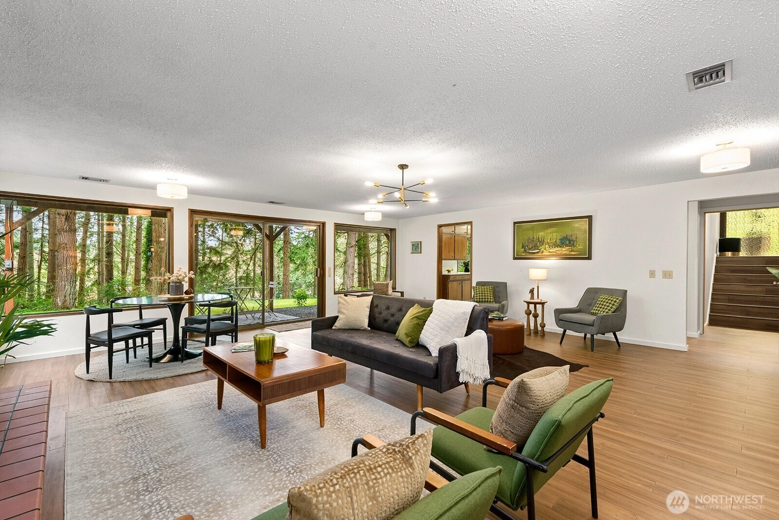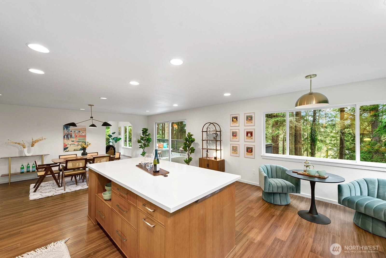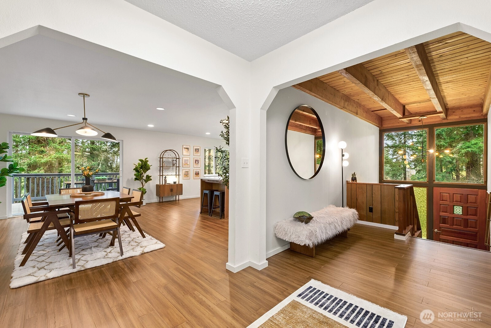 Set on 3 serene acres on Vashon Island’s coveted westside, this spacious 4,040 sq. ft. home offers flexibility, privacy and room to live, work and create. Surrounded by towering firs with territorial views and glowing sunsets, the setting feels peaceful and private yet easy access to town, schools, Seattle ferry and nearby trails at Shinglemill and Fern Cove Preserves. Perfect for multi-generational living or extended living, this entertainment style 4-bedroom, 3-bath home features a studs out remodeled main level with bamboo hardwood floors, new windows and stunning kitchen. Gorgeous tongue and groove wood beamed ceilings highlight the main floor which extends to three bedrooms and two updated baths situated privately in separate wings. The open-concept kitchen and dining area with gas cooking, breakfast space and eating bar flows easily to the large deck—perfect for dining alfresco. Large windows brighten the living and family rooms, each anchored by classic brick fireplaces, while the walk-out daylight basement expands the possibilities with a second living space & kitchen, full bath, bedroom and office. Step outside to the patio with pizza oven for relaxed gathering or enjoy an open yard space, gardens with mature blooming shrubs and apple trees in this lovely, territorial setting. Hobbyists will love the detached two-car garage with studio space plus the separate shop building ideal for storage and creative pursuits. A peaceful island retreat with endless possibilities.