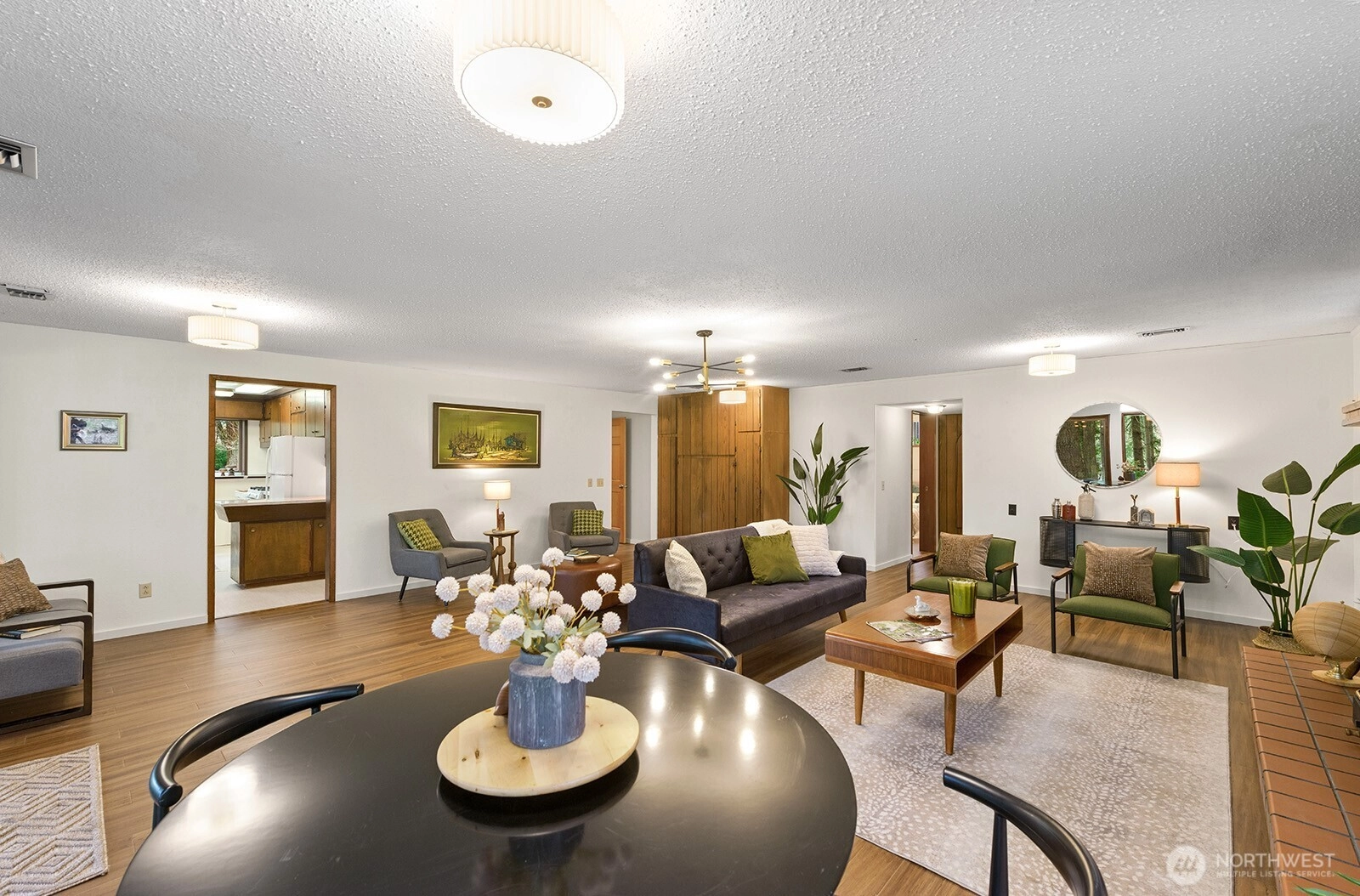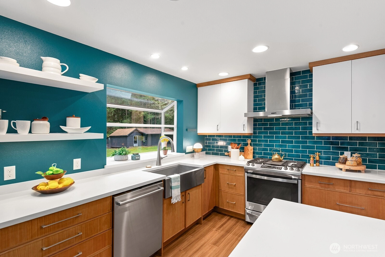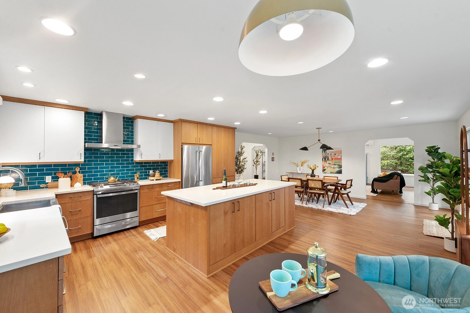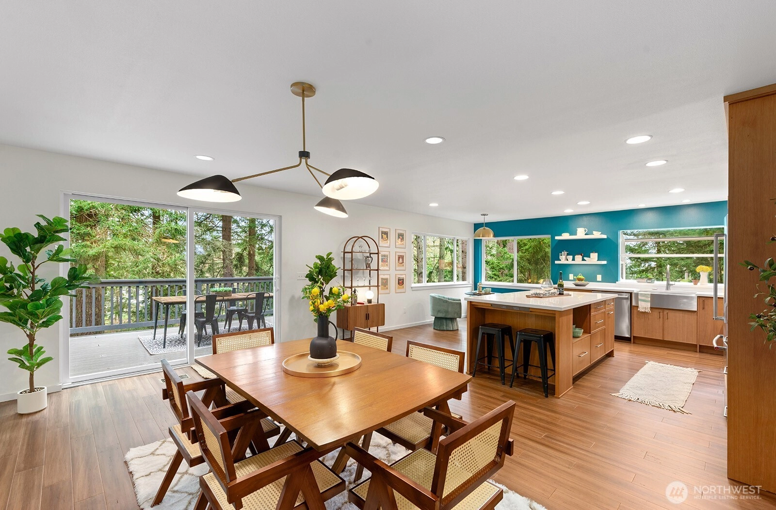 Set on 3 serene acres on Vashon Island’s coveted westside, this spacious 4,040 sq. ft. home offers flexibility, privacy and room to live, work and create. Surrounded by towering firs with territorial views and glowing sunsets, the setting feels peaceful and private yet easy access to town, schools, Seattle ferry and nearby trails at Shinglemill and Fern Cove Preserves. Perfect for multi-generational living or extended living, this entertainment style 4-bedroom, 3-bath home features a studs out remodeled main level with bamboo hardwood floors, new windows and stunning kitchen. Gorgeous tongue and groove wood beamed ceilings highlight the main floor which extends to three bedrooms and two updated baths situated privately in separate wings. The open-concept kitchen and dining area with gas cooking, breakfast space and eating bar flows easily to the large deck—perfect for dining alfresco. Large windows brighten the living and family rooms, each anchored by classic brick fireplaces, while the walk-out daylight basement expands the possibilities with a second living space & kitchen, full bath, bedroom and office. Step outside to the patio with pizza oven for relaxed gathering or enjoy an open yard space, gardens with mature blooming shrubs and apple trees in this lovely, territorial setting. Hobbyists will love the detached two-car garage with studio space plus the separate shop building ideal for storage and creative pursuits. A peaceful island retreat with endless possibilities.