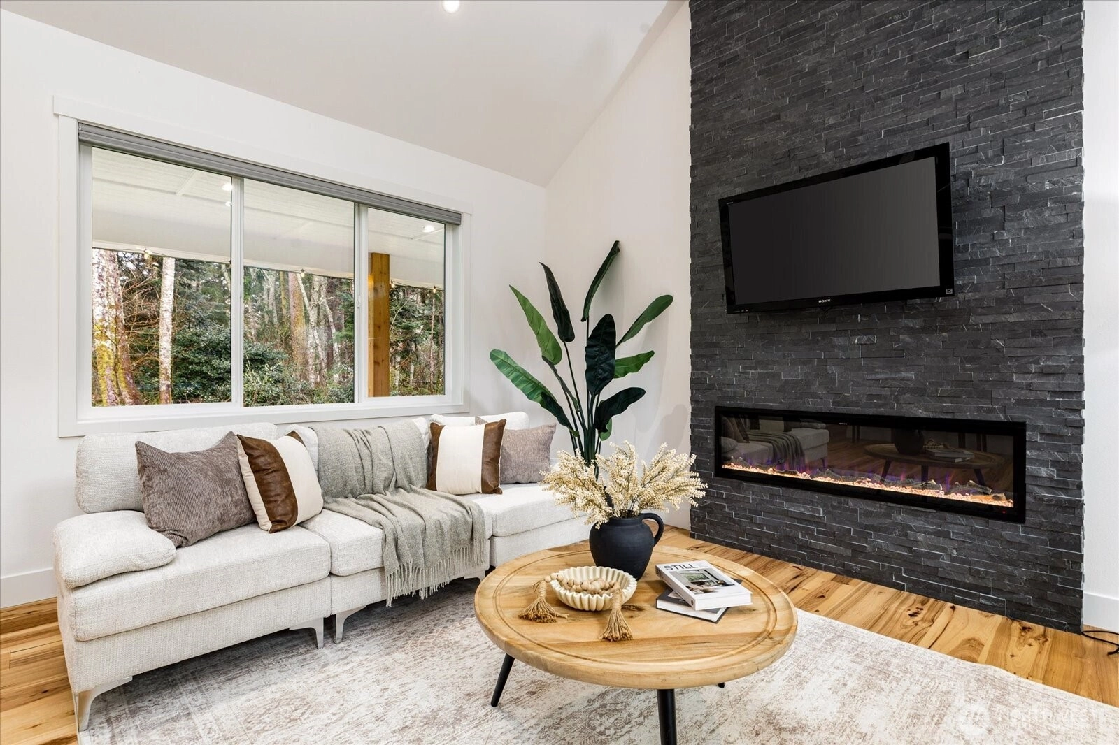 Set on 2.5 level acres in a quiet pastoral pocket of Whidbey Island, this nearly-new home is gracious, livable, and lovely. Spanning 2,477 asf, the main level offers three serene bedrooms and spa-inspired baths, all wrapped in a clean aesthetic and elevated finishes. The great room--complete with luxury laminate wood floors, sky-high ceilings and sunlit picture windows framing bucolic vistas, while a stacked-stone fireplace lends both warmth and timeless sophistication. The kitchen shines in the heart of the home--with polished quartz counters, deluxe appliances, entertaining island/breakfast bar, and adjacent dining space. Upstairs, a multifaceted flex space with its own ¾ bath provides a welcome layer of versatility—perfect for guests, a private office, creative pursuits, or inspired combination. Luxurious extras include remote controlled blinds, built-in vacuum system, ductless heat & A/C and a covered porch--an idyllic setting to relax, revel, and entertain. When you add in the finished two-car garage, circular driveway, sprinkler system, and even more complete this rare offering...a home truly unlike any other....