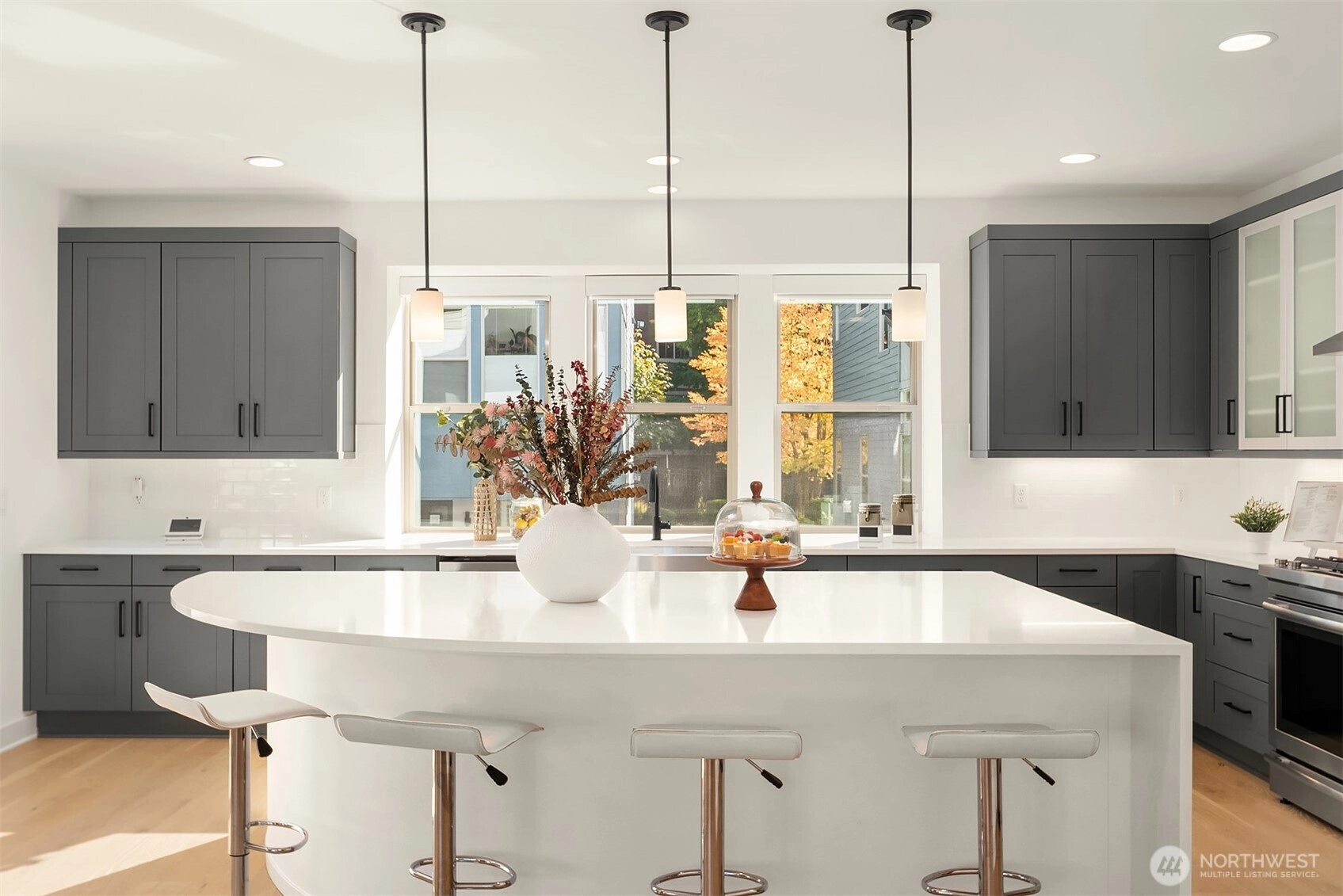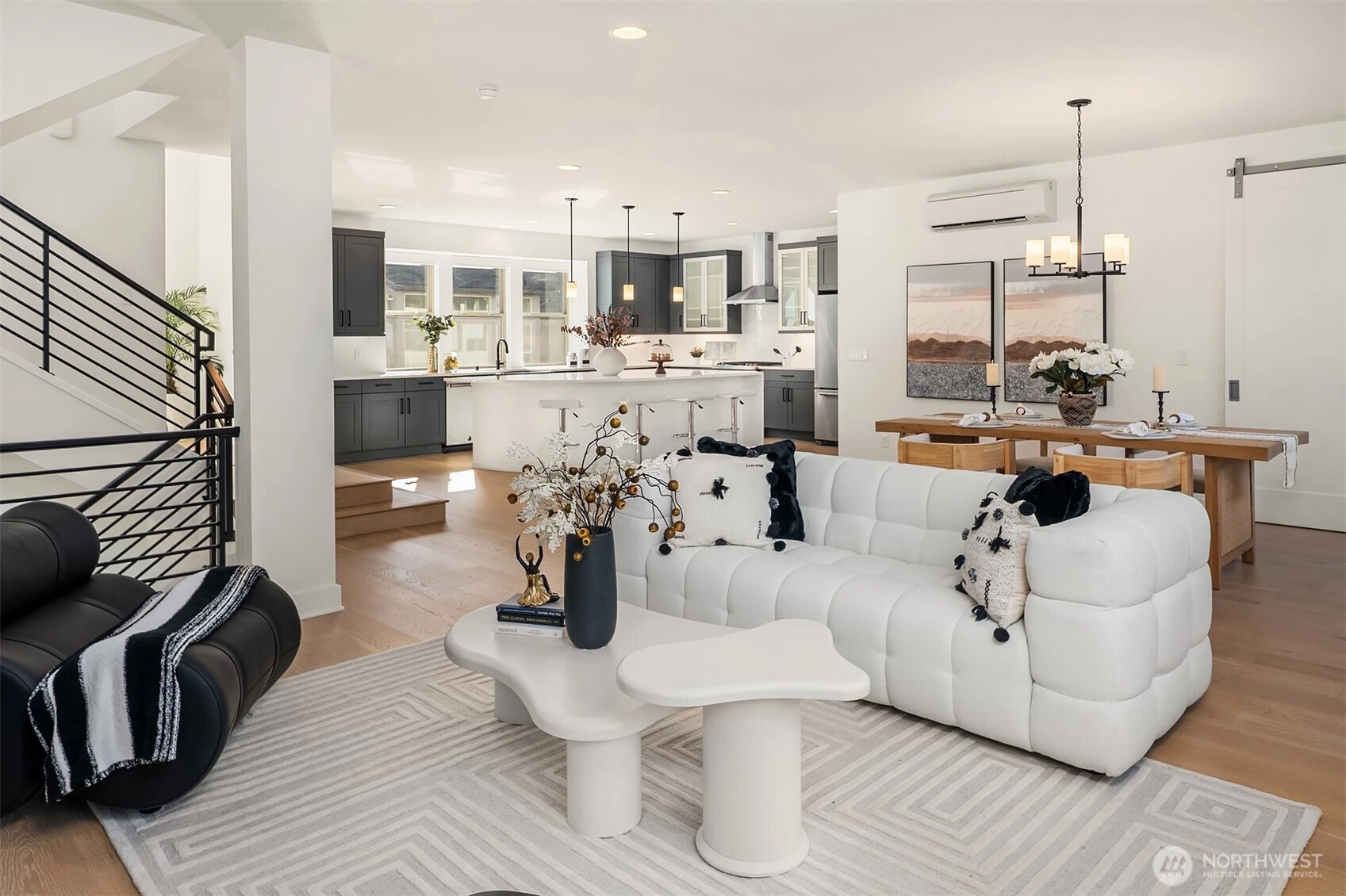 Step into elevated living at Aldea at Newcastle Commons, where space, light, and modern luxury come together effortlessly. This stunning 2,668 sq ft end-unit townhome is filled with natural light from dramatic floor-to-ceiling windows, creating an airy, welcoming atmosphere from the moment you arrive. Thoughtfully designed for both living and gathering, the open-concept layout flows seamlessly into a show-stopping chef’s kitchen anchored by a massive 10-foot quartz island—perfect for hosting, cooking, and everyday moments alike. A private main-floor den offers flexibility for a home office, playroom, or quiet retreat, while the expansive upstairs flex space invites endless possibilities, from den/home office space, media lounge or creative studio. The serene primary suite is a true escape, featuring a spacious walk-in closet and spa-inspired bath designed for relaxation. An oversized two-car garage adds convenience and storage, while resort-style community amenities—including an outdoor pool, fitness center, and beautifully maintained common spaces—enhance the experience. Ideally located with easy access to Downtown Newcastle, Factoria/Eastgate, Downtown Bellevue, and Seattle via I-405 and I-90. All of this, set within the highly sought-after, award-winning Issaquah School District, offers a lifestyle as exceptional as the home itself.