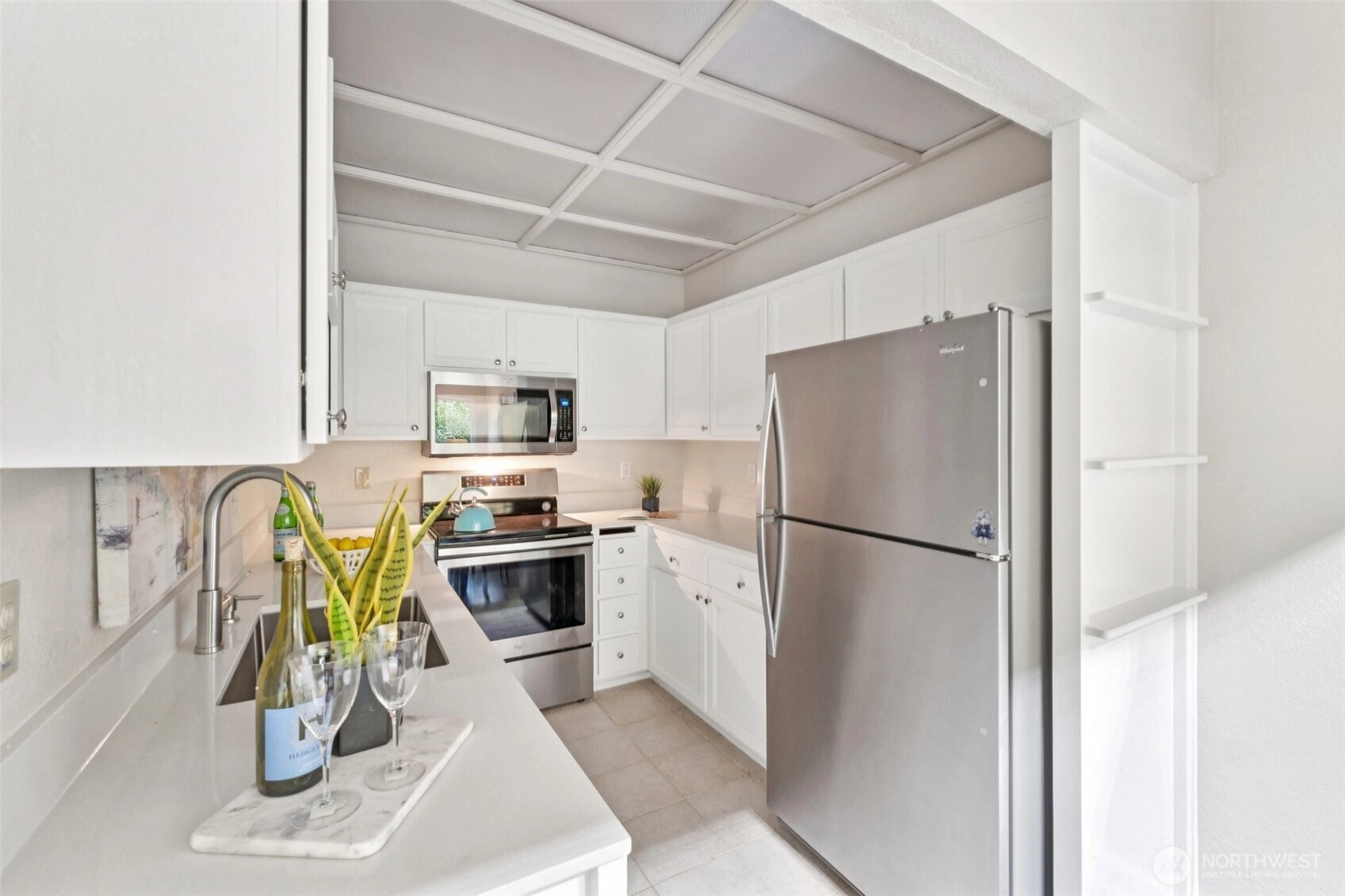 Beautifully refreshed one bedroom move-in ready condo in a convenient North Seattle location. The owners invested over $20,000 preparing this home for market, creating a brighter, more polished living space for the next owner. Vaulted ceiling, large bedroom with walk-in closet, and ductless mini-split that provides heating and cooling for year-round comfort. Recent improvements include fresh interior paint throughout, thoughtful kitchen upgrades, and attention to many of the smaller details that make a home feel well cared for. The result is a light, welcoming unit that lives comfortably. This home comes with an assigned parking space that supports EV charging, in a secure attached garage, and a storage unit as well. Don't miss this opportunity for style, comfort, and convenience in a great location!