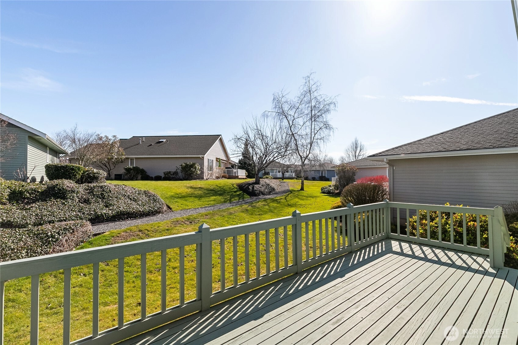 Perfect ‘inner circle’ location in the beautiful and peaceful Village at Cordata, Northside. 55+ community. Privacy of a stand-alone house w/convenience of a condo. Single level home w/deck overlooking the sunny, manicured grounds & trail. Both bedrooms with en-suite bathrooms & double closets. Dual sinks in primary bath. Kitchen w/plenty of cabinet storage & breakfast nook w/bay windows. Din rm off kitchen flowing into open living area w/cozy gas FP. Utility rm. Oversized Dbl garage. Active Community Clubhouse. Central to shops, medical center & parks. Give up the maintenance, not your lifestyle.