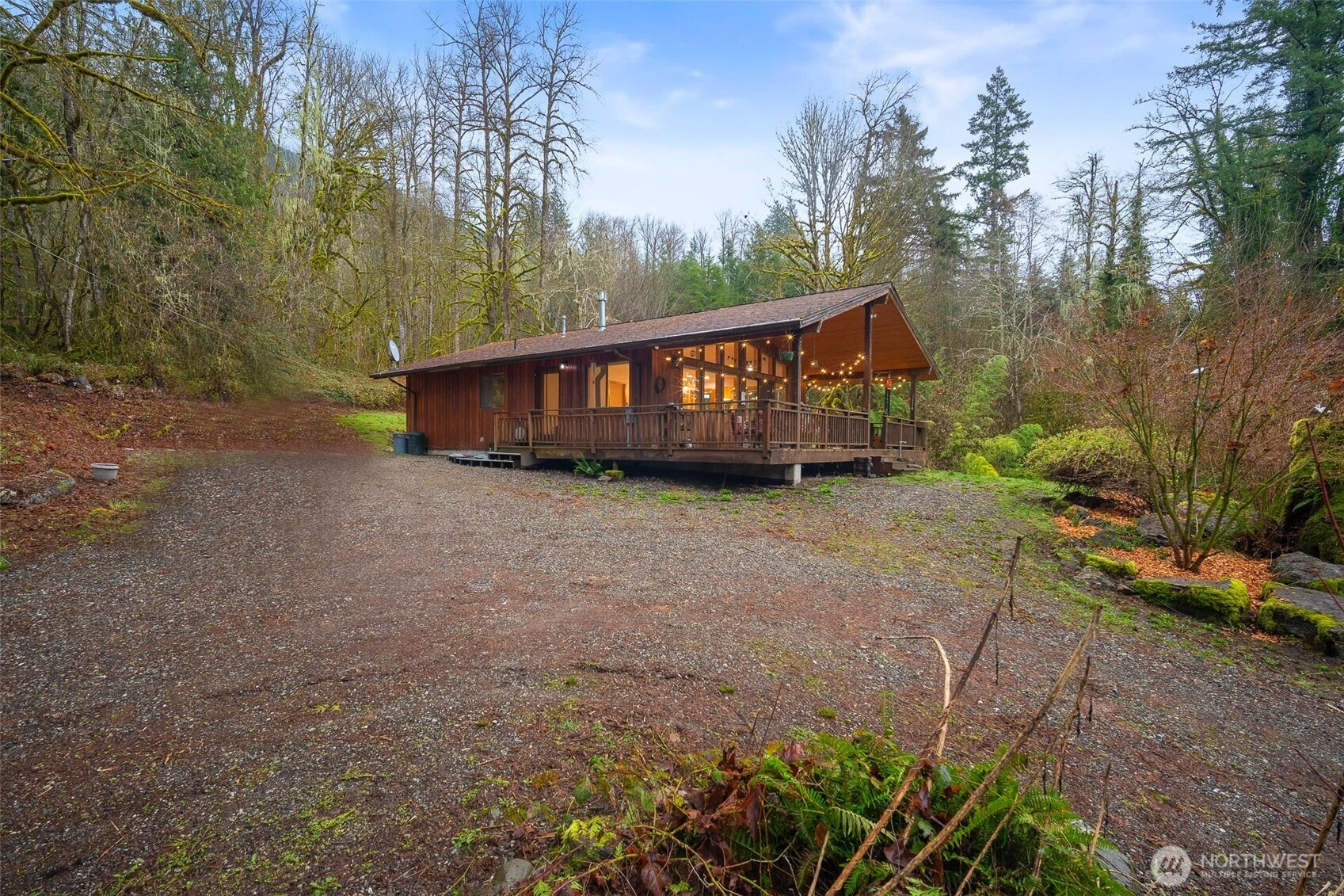 Imagine waking up to the soothing sound of your own waterfall creek. Tucked away on five private acres, this charming two-bedroom retreat offers a rare chance to live surrounded by nature. It offers a rare blend of privacy, nature, and tranquility. Relax on the spacious covered deck while enjoying the peaceful forest setting, fresh mountain air, and the calming sights. It's a perfect place to sip your morning coffee, host friends for a summer evening, or simply unwind and reconnect with nature. There's even a view of Sauk Mountain from the property! Wood flooring throughout, many windows to let in the light and enjoy the scenery, plus sliding glass doors from all rooms to access the grounds, and a stone-finished bathroom. Oh--new interior paint too! Whether you're looking for a full-time residence, a weekend escape, or a potential Airbnb opportunity, this property offers the perfect place to unwind and reconnect with nature. There are outbuildings for additional storage and wiring for a hot tub. The well house would be a perfect candidate for an ADU, grandfathered in, no additional permit required — (buyer to verify). complete with its own well, septic system, and Starlink high-speed internet for modern convenience in a serene setting. Only seven miles from services like gas, food, coffee, library, post office, a mile from a public boat launch and three miles from Rockport State Park. Hurry! This is a one-of-a-kind!