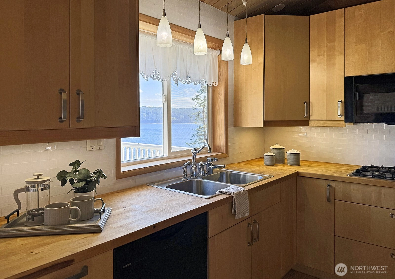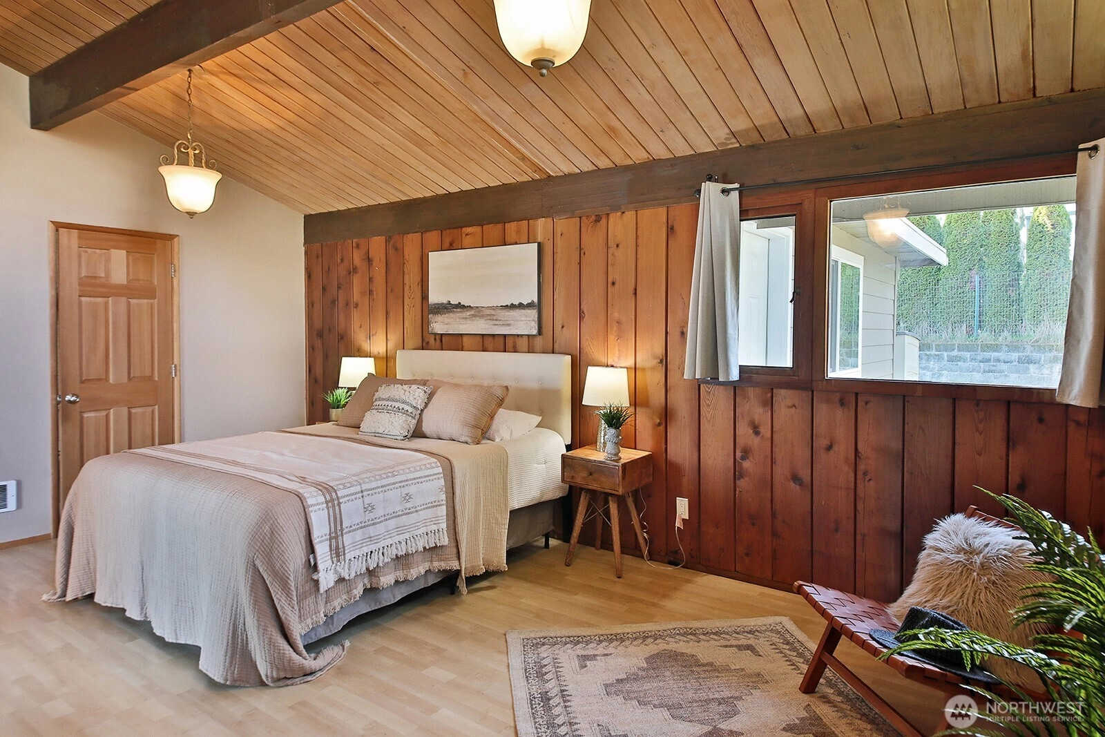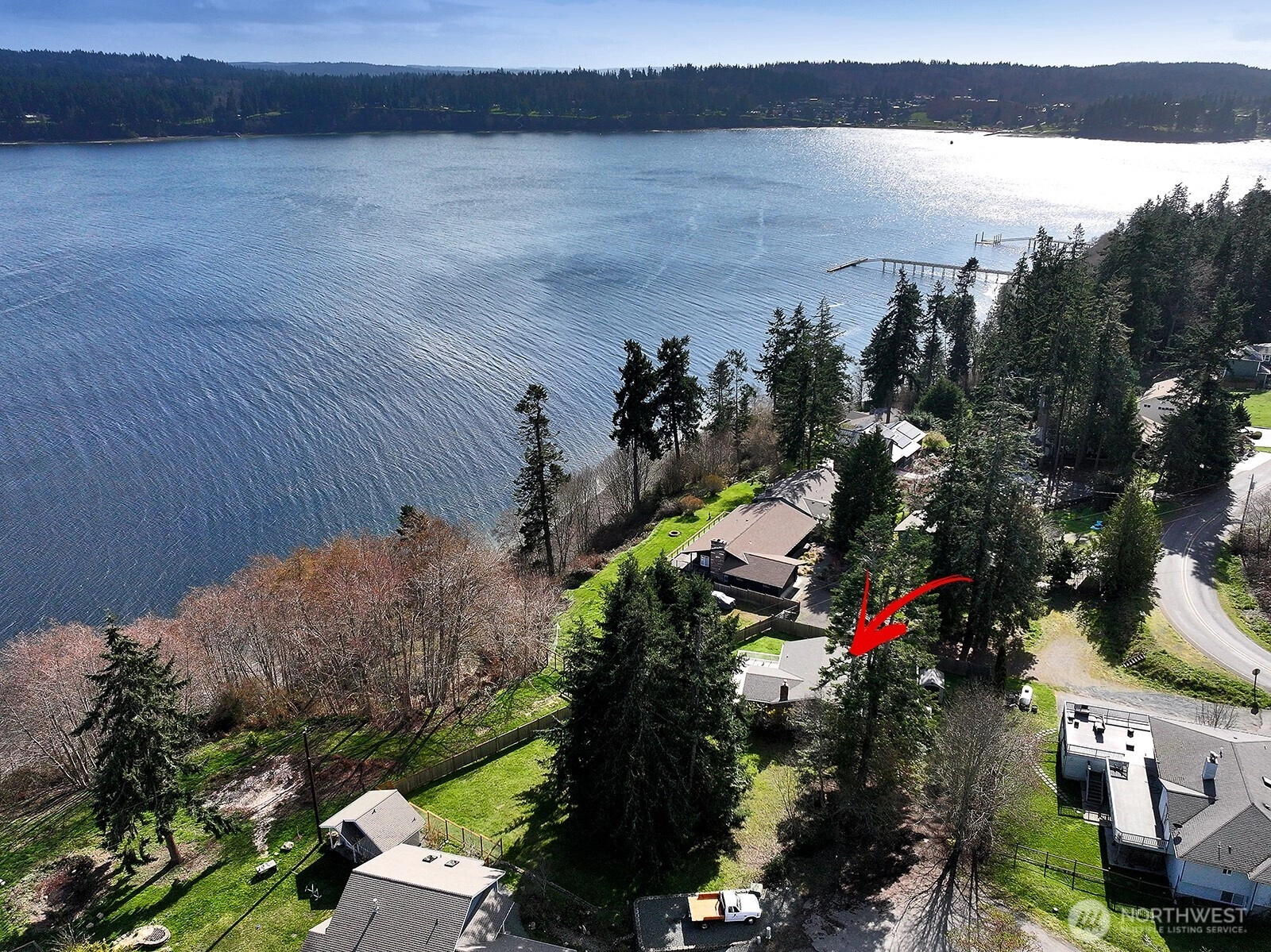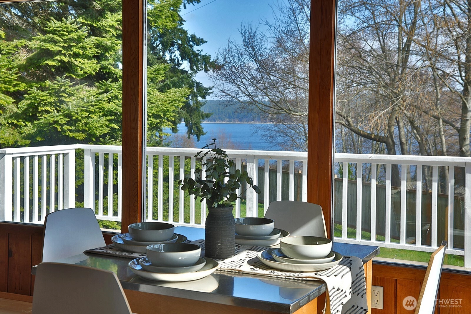 Charming 2-bedroom, 1-bath, 1,000 sq ft single-level home on a quiet cul-de-sac, featuring a fenced yard for privacy. Expansive decks run the length of the home, offering breathtaking views of Holmes Harbor and the Cascade Mountains, perfect for relaxing or entertaining. The cabin-style interior has been thoughtfully refreshed and includes a versatile 464 sq ft concrete-floor area with heat & electricity, ideal as a second bedroom, gym, flex space, or creative retreat. Additional features include a cozy propane fireplace, ductless efficient heat and air, vaulted ceilings, a functional kitchen, and a Primary suite with walk in closet. Ring camera system on house not in use. Situated on a double lot totaling nearly half an acre, this peaceful property combines space, serenity, and unmatched views.