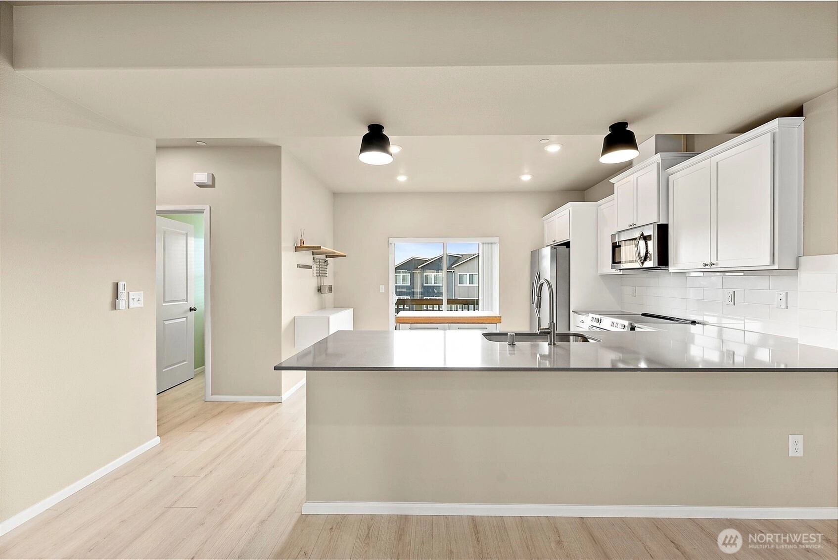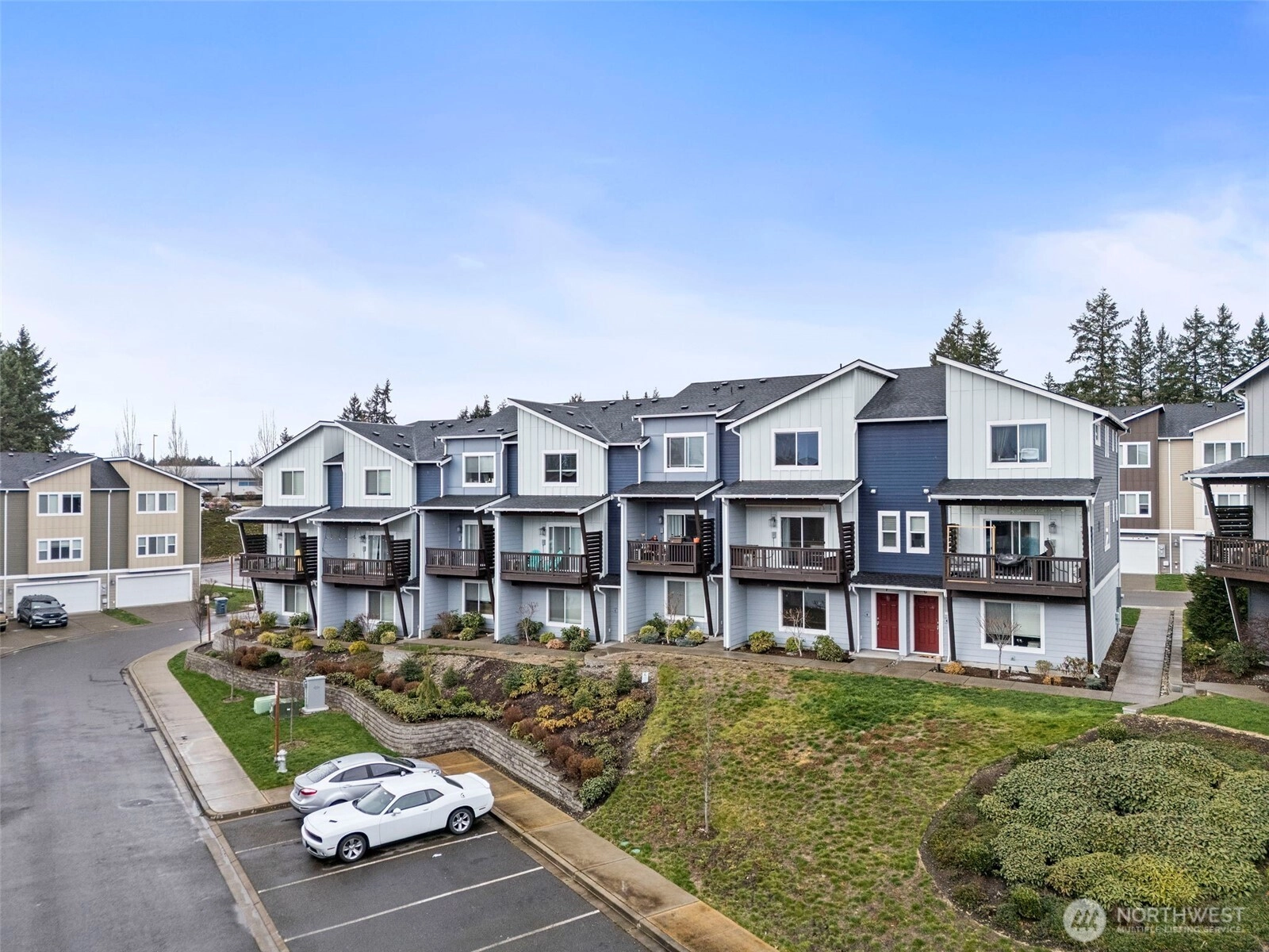 Step into effortless modern living in this beautifully maintained townhome nestled in the highly sought-after Sunrise community of Puyallup. Thoughtfully designed & impeccably cared for, lives like new construction and offers the perfect blend of comfort, style, and convenience. Stunning kitchen featuring sleek quartz countertops, a designer tile backsplash, & an oversized island, opens effortlessly to the expansive living area & extends out to a private balcony—perfect for morning coffee, evening sunsets, admiring Mt. Rainier, or simply enjoying the peaceful surroundings. Upstairs, spacious primary suite and junior suite each with their own private bath. The entry-level rec room adds valuable versatility—ideal for a media room, gym, home office, or bonus lounge—while the attached garage offers everyday convenience and additional storage. With HOA-maintained landscaping and exterior care, you’ll enjoy truly low-maintenance living. All of this is perfectly positioned minutes from Sunrise Village, parks, schools, dining, shopping, and major commuter routes, placing everything you need right at your fingertips. Stylish, spacious, and move-in ready—homes like this don’t stay available for long. Come experience Sunrise living, admire the beautiful views of Mt. Rainier throughout the neighborhood and your very own unit!!