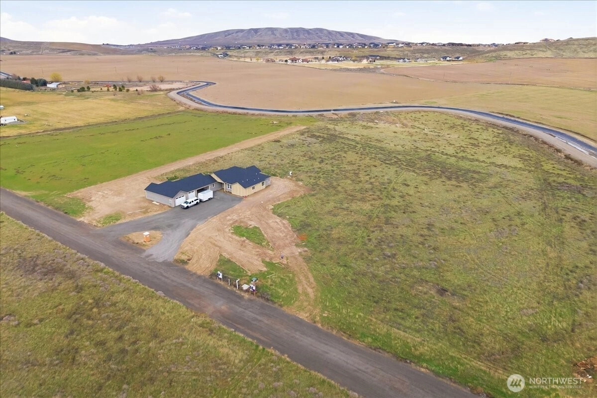 Beautiful 1-story with space for cars, toys, country view. Split bdrm layout, 10' ceilings, great room with fireplace, lots of natural light with large slider to covered outdoor living. Dream kitchen with 4x10 island, wine fridge, built-in microwave, dishwasher, range/oven, niches, ample counters/storage and walk-in pantry. Large primary suite with backyard access, zero-step shower that you will love & enjoy, dual vanities, freestanding tub, and huge closet. Two spacious bedrooms with their own private bathroom, plus private 4th bedroom next to 4th bath. Big laundry, mudroom, office, hot-tub wiring, soffit lighting, power for future shop, irrigation to property and more.