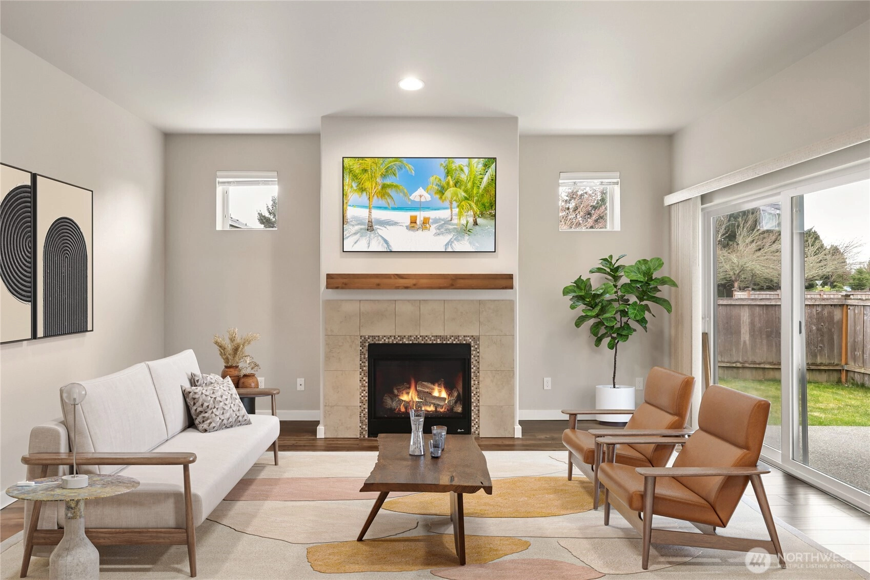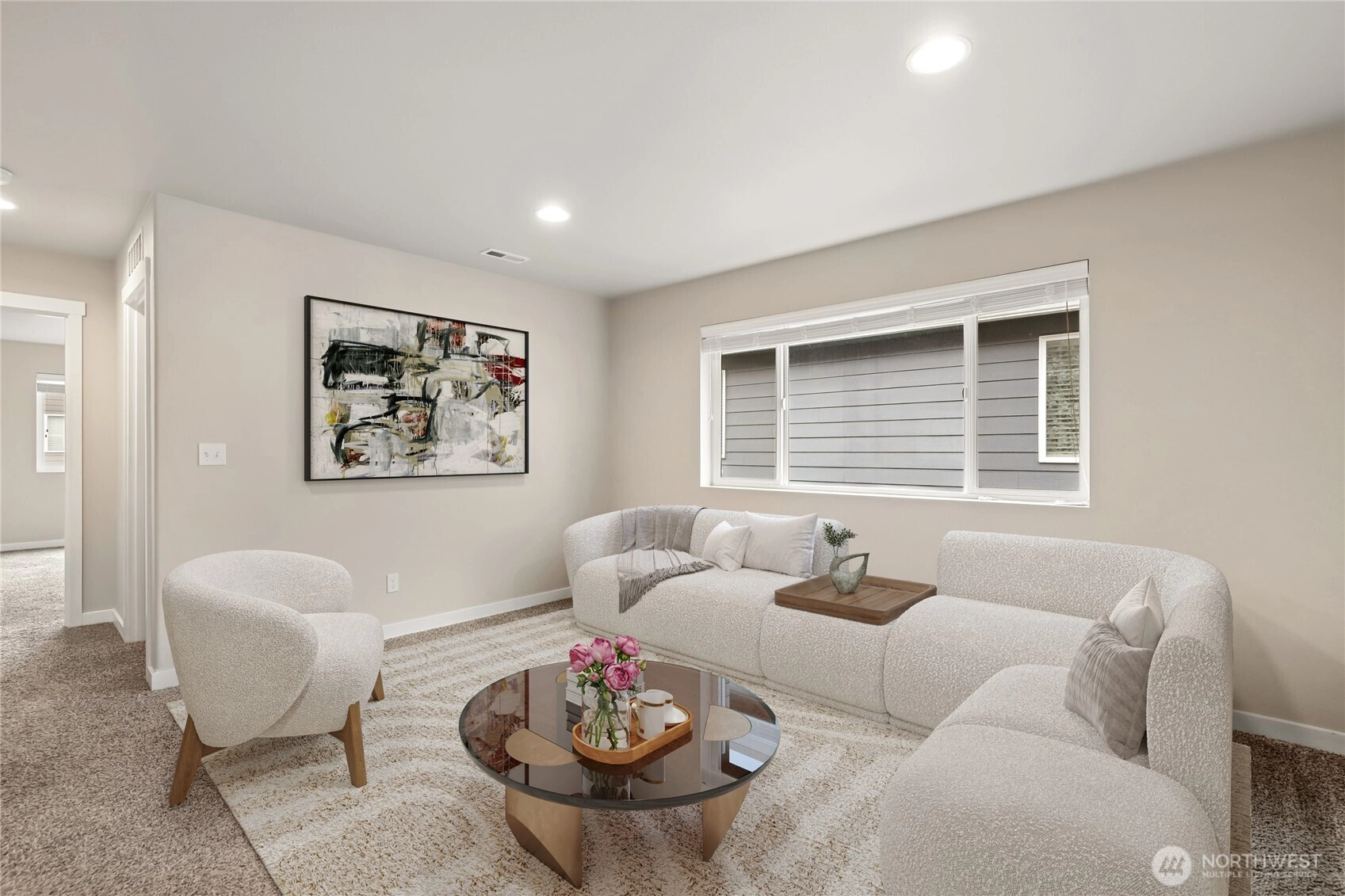 Welcome to this stunningly maintained 4-bedroom, 2.5-bath cottage-style home designed with comfort and versatility in mind. A spacious upstairs loft provides the perfect setting for a media area, lounge, or additional living space. The generous primary suite offers a relaxing retreat, while thoughtful design elements create a warm and inviting atmosphere throughout. The well-appointed kitchen features granite tile countertops, 42" cabinetry with abundant storage, and a full suite of stainless steel appliances including range, dishwasher, and microwave. White painted millwork, 9-foot ceilings, recessed lighting, rounded corners, and nickel hardware enhance the home's clean, modern feel. A flexible semi-formal dining area offers the option for a home office, sitting room, or gathering space. The charming exterior is complemented by a rear-load 2-car garage, maintaining the classic cottage-style appearance from the street. With its smart layout, stylish finishes, and multiple living spaces, this brand new home offers both function and comfort for everyday living and entertaining.