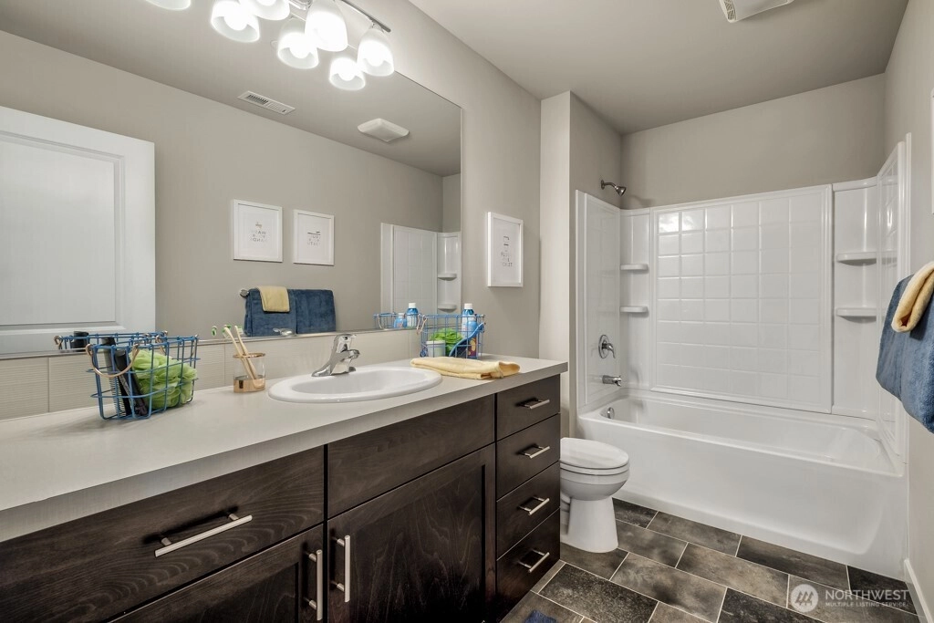 The Wellington floor plan will “wow” you. Located at Bakerview in Stanwood, this wonderfully designed floorplan has a formal dining room, beautifully appointed kitchen, 4 bedrooms, 2.5 baths and a bonus room. Hall bath upstairs has double vanity for easy sharing and a spacious laundry room with large counter for folding and sorting laundry. Bring groceries into the kitchen right from the 2-car garage, enjoy the comfort of A/C, home automation package, 240Volt outlet for your car charger in the garage, plus a 1-2-10 year warranty. Bakerview is a stunning new home community featuring amenities such as pickleball courts, basketball court, playgrounds, picnic structures and tree lined sidewalks. Buyers must register their broker on site at first visit, including open houses. See you soon!