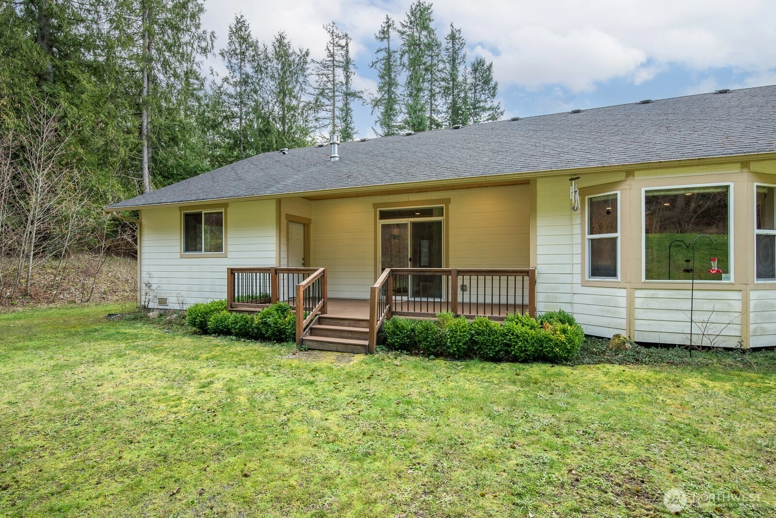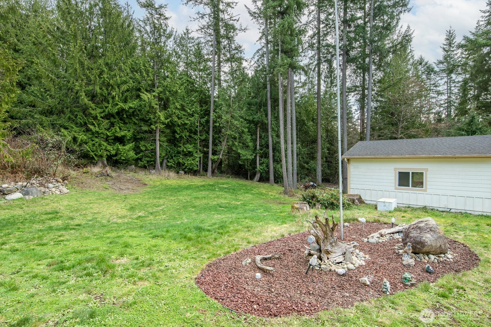 This spacious well laid-out rambler sits on 1.25 beautiful acres with easy access to I-5, shopping, and dining. Great room concept with large kitchen withpantry, bar space, and large eating area. It's also open to the large living/family room with gas fireplace. Large dining room as well that could also be another living room or family room. The primary suite is on one end of the house and has a very spacious bedroom, large 5 piece bath with jetted soaking tub and walk-in shower, large walk-in closet, and separate toilet space. 2 bedrooms and a full bathroom are at the opposite end on the house. Another large bedroom with french doors sits at the front of the house and could also be added living space. Large 3 car garage. Property also includes a detached 18x20 foot shop and RV electrical and water hook-up.
