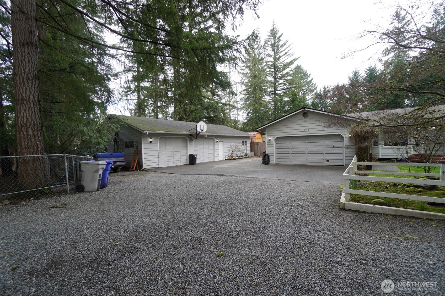 Welcome home to your One story Ravensdale 3 bedroom 2.25 bath home with large detached shop/garage in the award winning Tahoma School District. Nestled in a peaceful private setting. Beautiful kitchen with brand new appliances for your cooking enjoyment that over looks your open floorplan and beautiful backyard. The Kitchen flows easily to the rest of the home's living, dining and family rooms. Large Family room with cozy fireplace and french doors. Spacous primary suite. Enjoy your luscious landscaping from all of the rooms. A Car Buff's dream shop with the in-floor vehicle lift, plumbed external air compressor and an office space with its own electric meter. If you want a shop this is it. There is room for everyones hobby and recreation in this expansive space. Dream a little. Wood shop or cars, there is room for both. Currently used as a perfect recreation space. 2 more large outbuildings. A gardener's paradise with mature fruit trees including apple, plum, peach and Rainier Cherry. Raspberries, garden space and raised beds. Outdoor fire pit. Front yard with water feature. RV parking. Newer roof, new septic system in 2023. New Hot water heater, trex deck. LED lighting. Fully fenced. Large Dog Run. Close to Parks and shopping. Private yet an easy commute. Peaceful and quiet. Work from home and enjoy life. This could be exactly what you have been looking for.