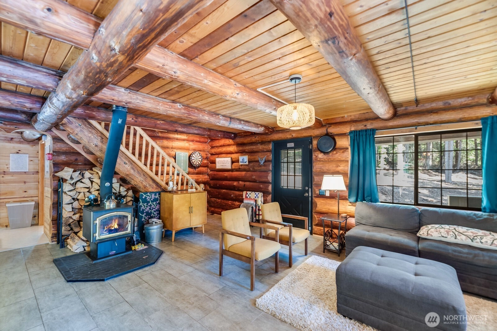 Escape to rustic tranquility with this charming 3-bed, 1-bath cabin-style home set on 5 peaceful acres, ideal as a personal retreat, Airbnb, or investment opportunity. Inside, warm log cabin character meets modern comfort with vaulted ceilings, a cozy wood stove, and an open-concept layout that flows seamlessly between the kitchen, dining, and living areas—perfect for gatherings or hosting guests. Step outside to enjoy two inviting porches, a firepit area, and expansive outdoor space surrounded by mature trees and open land with endless potential. With strong short-term rental appeal and turn-key readiness, this property is ready to generate income or serve as your private escape. Located just minutes past Snoqualmie for winter recreation and outdoor adventure, with access to beautiful Lake Kachess nearby.