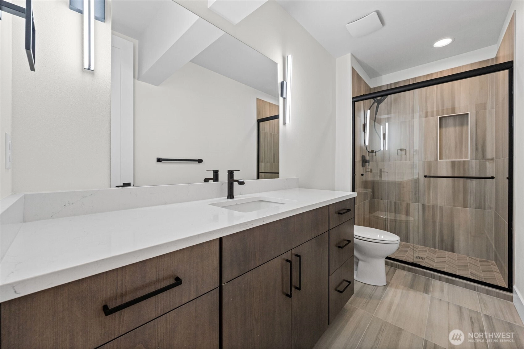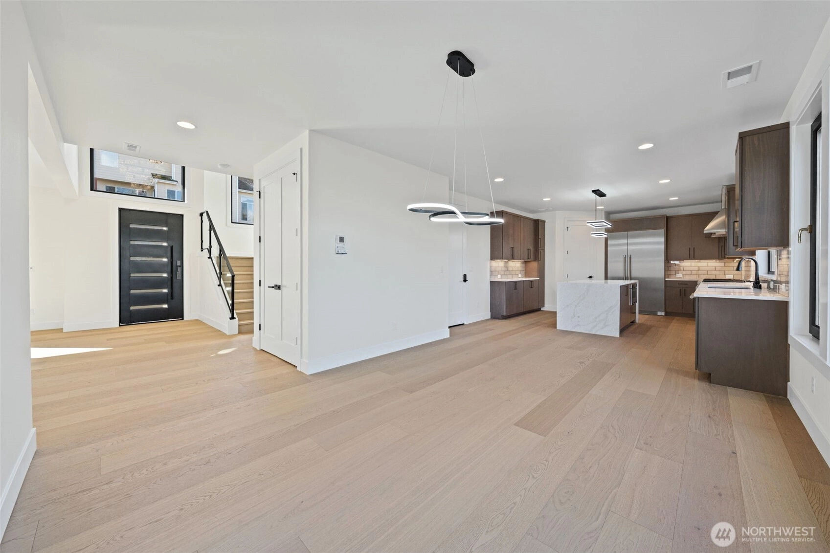 Exceptional new construction by Triton Homes, this stunning Northwest contemporary masterpiece sets a new standard for luxury living in Bellevue's coveted Eastgate neighborhood. Thoughtfully designed with an emphasis on light, flow, and refined finishes, the expansive open floor plan creates seamless transitions between living spaces — perfect for intimate evenings and elevated entertaining alike. Soaring triple-pane, heavy-duty aluminum/vinyl windows bathe every room in natural light while capturing partial Lake Sammamish views, delivering superior energy efficiency and whisper-quiet sound insulation. The chef's kitchen is appointed with top-of-the-line Thermador appliances, marrying professional-grade performance with sleek, contemporary aesthetics. A bold heavy-duty metal entry door anchors the striking exterior elevations, making an immediate impression of quality and sophistication. Inside, generous room proportions, premium materials, and meticulous attention to detail speak to Triton Homes' signature commitment to craftsmanship. From the moment you arrive, every element — curated, considered, and expertly executed — reflects a home built not just to impress, but to endure. A rare opportunity to secure brand-new luxury construction in one of the Eastside's most desirable addresses. Welcome home.