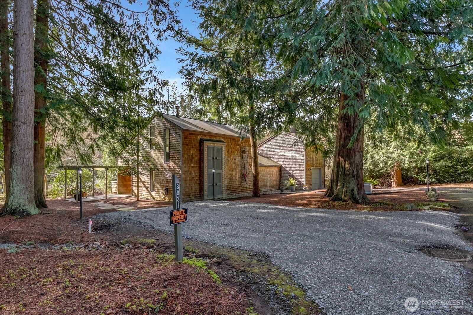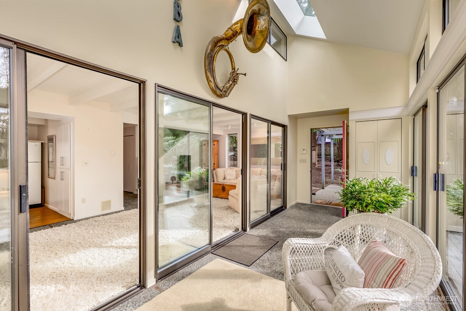 Private retreat on .29 acres, this stunning 2,155 sq ft home was originally crafted by Mike Daffron and enhanced with beautiful additions, including a electric wall fireplace. Light-filled and thoughtfully designed, the home features 3 bedrooms, 1 3/4 bathrooms, plus a dedicated office. The primary suite offers two closets and a 3/4 bath, while abundant storage is found throughout the home. Vaulted ceilings highlight both the living and family rooms, complemented by skylights that fill the space with natural light. A sunroom adds year-round enjoyment and flexible living space. Additional features include main-level laundry, energy-saving features, for added peace of mind. Enjoy outdoor living on the large, newly painted entertainment deck, ideal for relaxing or hosting guests. Set in a private natural setting yet conveniently close to shopping, dining, and amenities, this home offers the perfect balance of tranquility and accessibility.