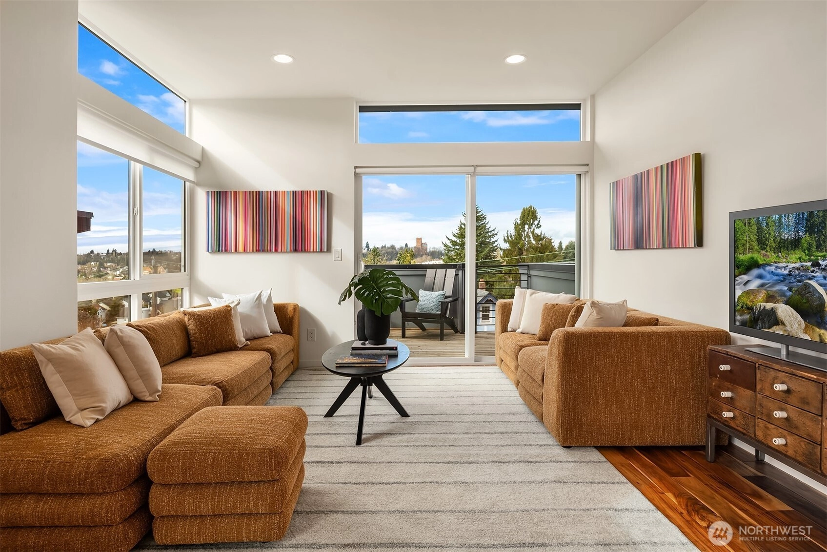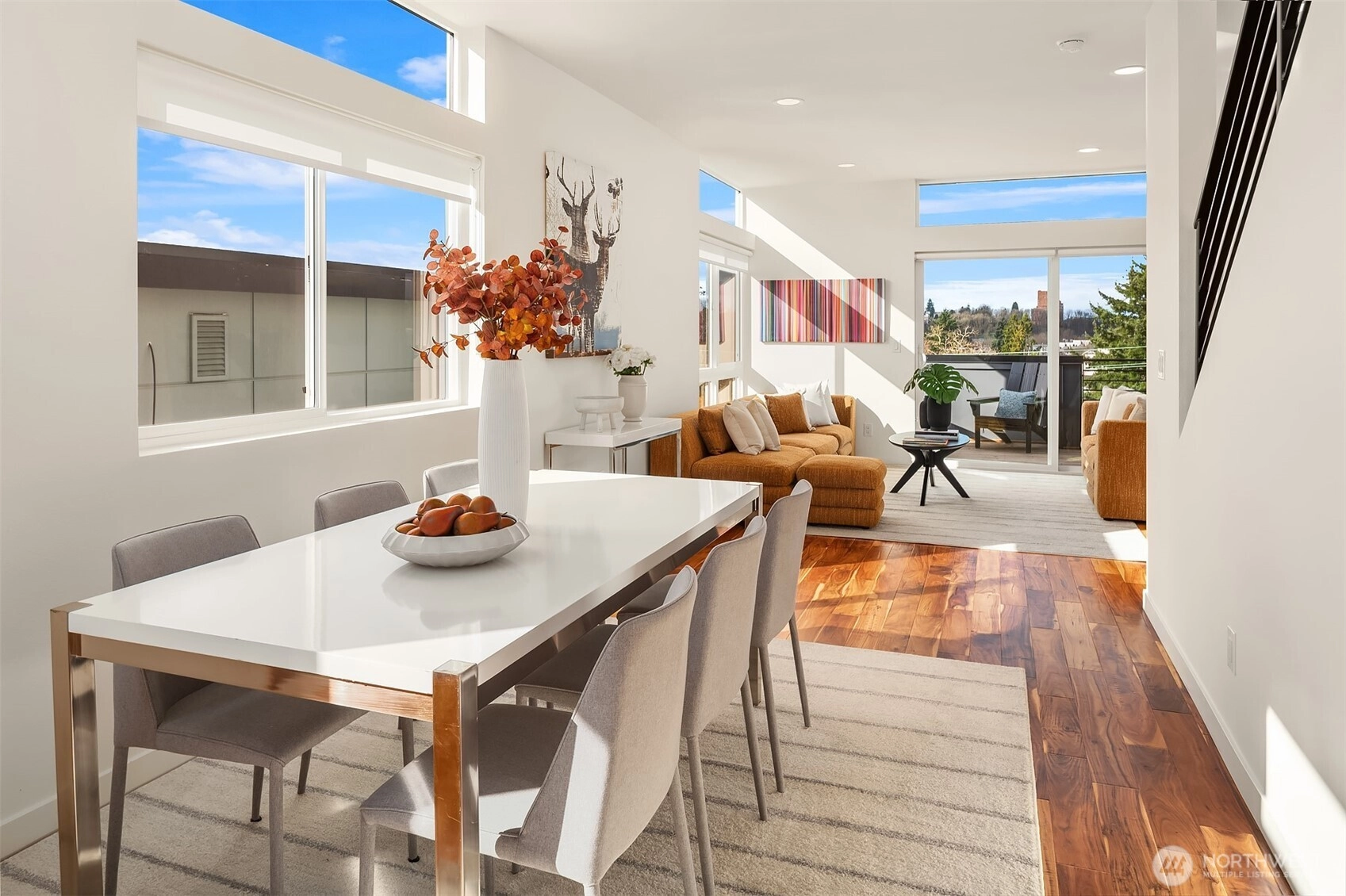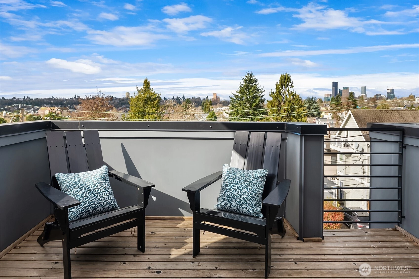 Bright, modern townhouse living with Olympic Mountain views, abundant natural light, and outdoor space you’ll actually use. The home’s top-floor living level is where everything comes together: 9’ ceilings, large windows, and southern exposure fill the space with light while showcasing Seattle skyline and Olympic views. Sliding doors open directly to a spacious deck off the living room, creating an easy indoor-outdoor connection for grilling, relaxing, or entertaining. One level above, a rooftop deck offers an additional outdoor retreat and another place to take in the city and mountain views. The open kitchen features quartz countertops, stainless appliances, island seating, and pantry storage, flowing naturally into the dining and living spaces. Large bedrooms provide flexibility for guests, work-from-home space, and everyday living. Fresh interior paint and new carpet make the home feel clean and move-in ready. A convenient second-floor entry directly from the parking area makes daily comings and goings easy. The home also has a surprisingly private feel compared to many townhomes, creating a comfortable sense of separation from neighboring homes. Located in historic Leschi, you're blocks from Lake Washington, with easy access to I-90, Downtown Seattle, Bellevue, and the Eastside tech corridor. The nearby Judkins Park Light Rail Station and multiple Metro bus routes provide excellent connectivity throughout the city. Modern design, great light, outdoor living, and transit.