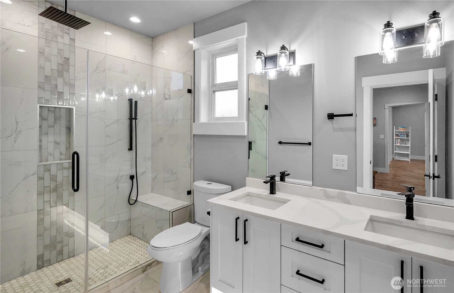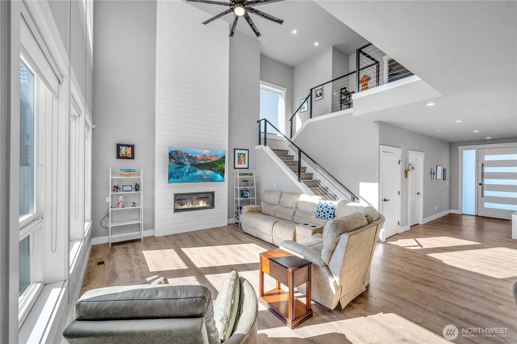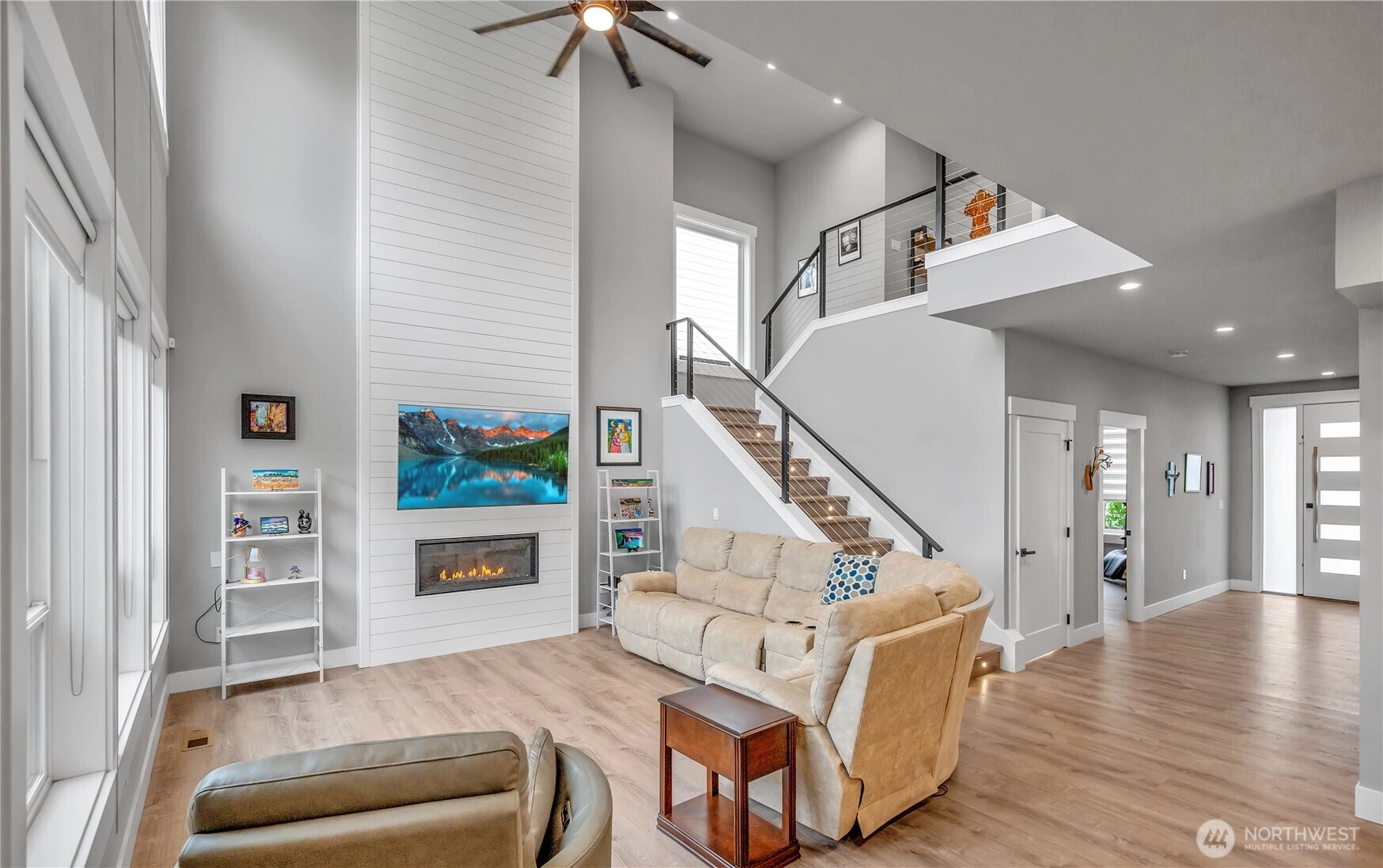Tucked into the sought-after Heather Ridge neighborhood of Ferndale, this beautifully crafted 5-bedroom, 2.5-bath home offers modern comfort with thoughtful design throughout. Built in 2022, the 2,800 sq ft layout features spacious living areas, quality finishes, and plenty of room to gather or spread out. The well-appointed kitchen is designed for both everyday living and entertaining, complete with premium appliances, generous storage, and a separate prep kitchen to keep everything organized behind the scenes. The open living area is warm and inviting, highlighted by a cozy fireplace and abundant natural light. Upstairs, the spacious primary suite offers a relaxing retreat with dual walk-in closets and a stylish en-suite bath. Four additional bedrooms provide flexibility for guests, hobbies, or a home office. A private office space adds even more versatility for today’s work-from-home needs. Step outside to enjoy the covered wood porch and upper balcony, where you can unwind while taking in peaceful surroundings and subtle mountain views from the top floor. Located in one of Ferndale’s most desirable communities, this home blends modern style, comfort, and convenience just minutes from town amenities.