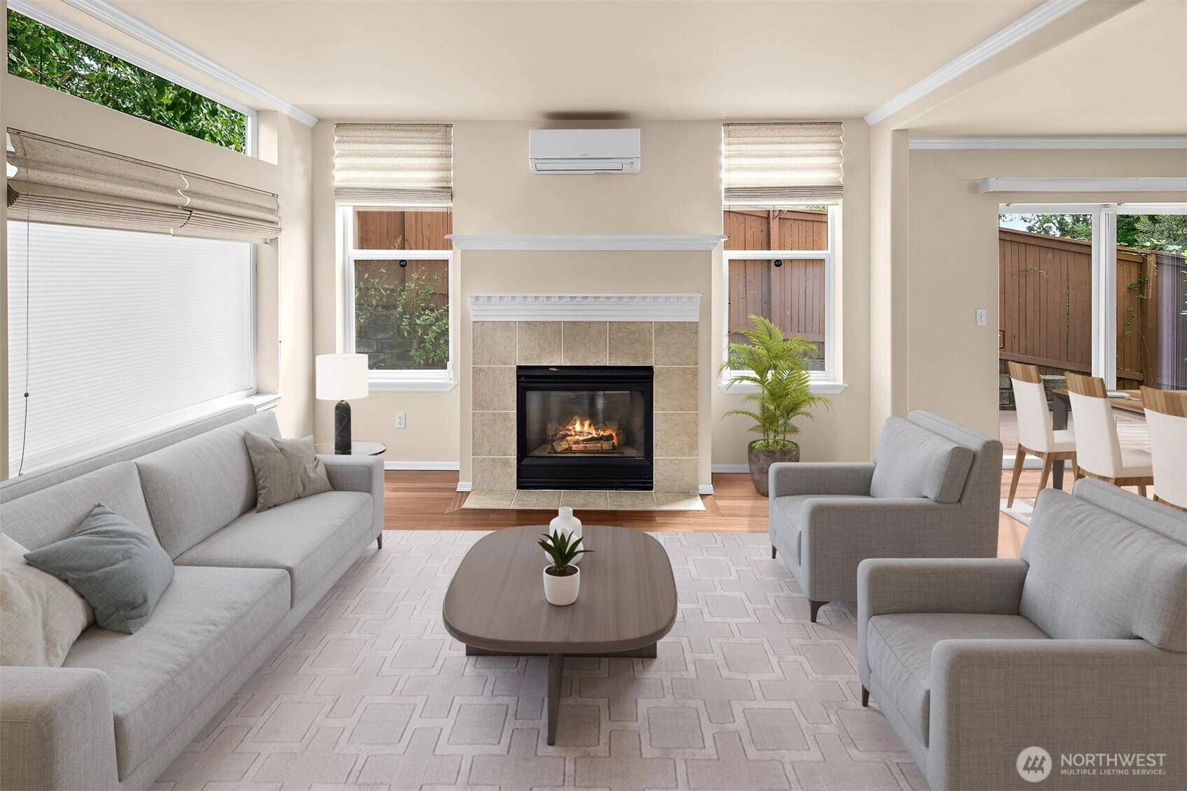 Mukilteo's Finest ~ Enjoy the open floor plan and privacy in this spacious 2 BEDROOM END-UNIT condo in the beautiful gated community of Possession Ridge! 1,529 square feet, fresh interior paint, stunning hardwood floors & custom millwork throughout. The open-concept great room is perfect for entertaining, complemented by a kitchen featuring a Brand New SS Refrigerator & 2022 SS Stove & Dishwasher. Upstairs laundry room & 1/2 Bath with Newer Stacked Full Size Washer & Dryer, 2023 Hot Water Heater and a loft area that is perfect for WFH. Use your green thumb in the back garden area or relax on your private deck. Comfort meets convenience with 2023 mini-split A/C, radiant in-floor gas heating & a huge walk-in closet in the primary suite. Easy level entry & elevator access from the secure garage with 2 Parking Spaces & storage closet ~ this one truly has it all!