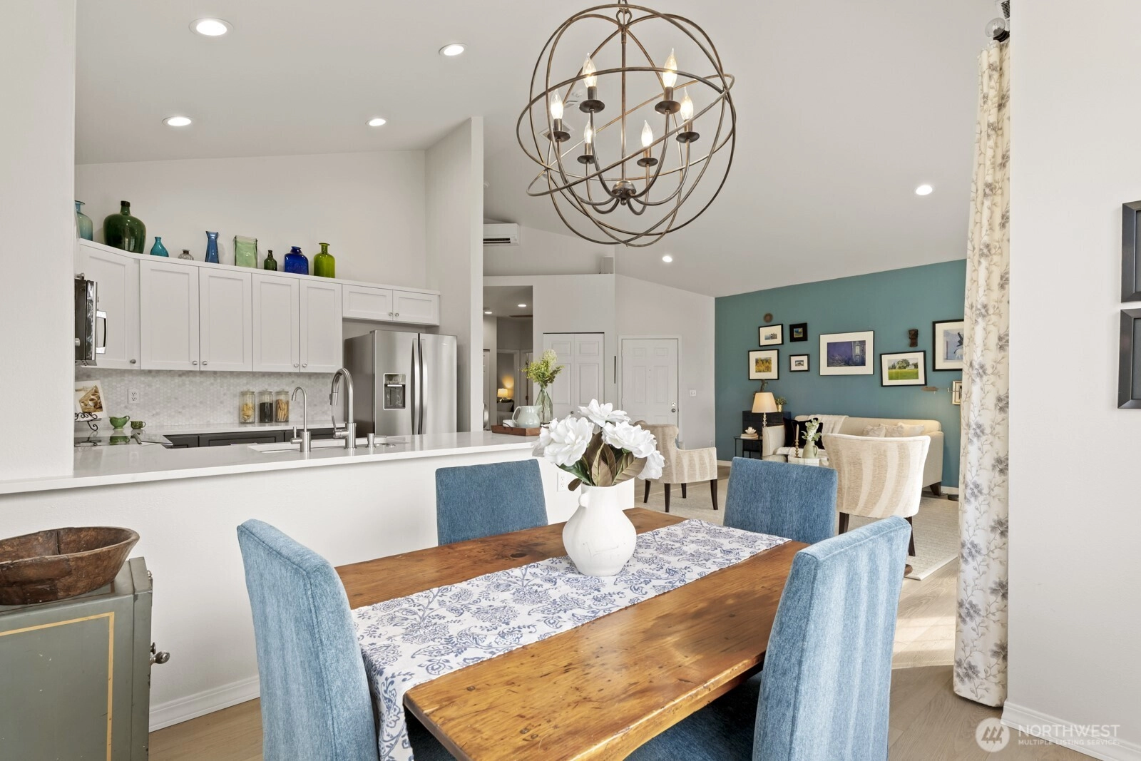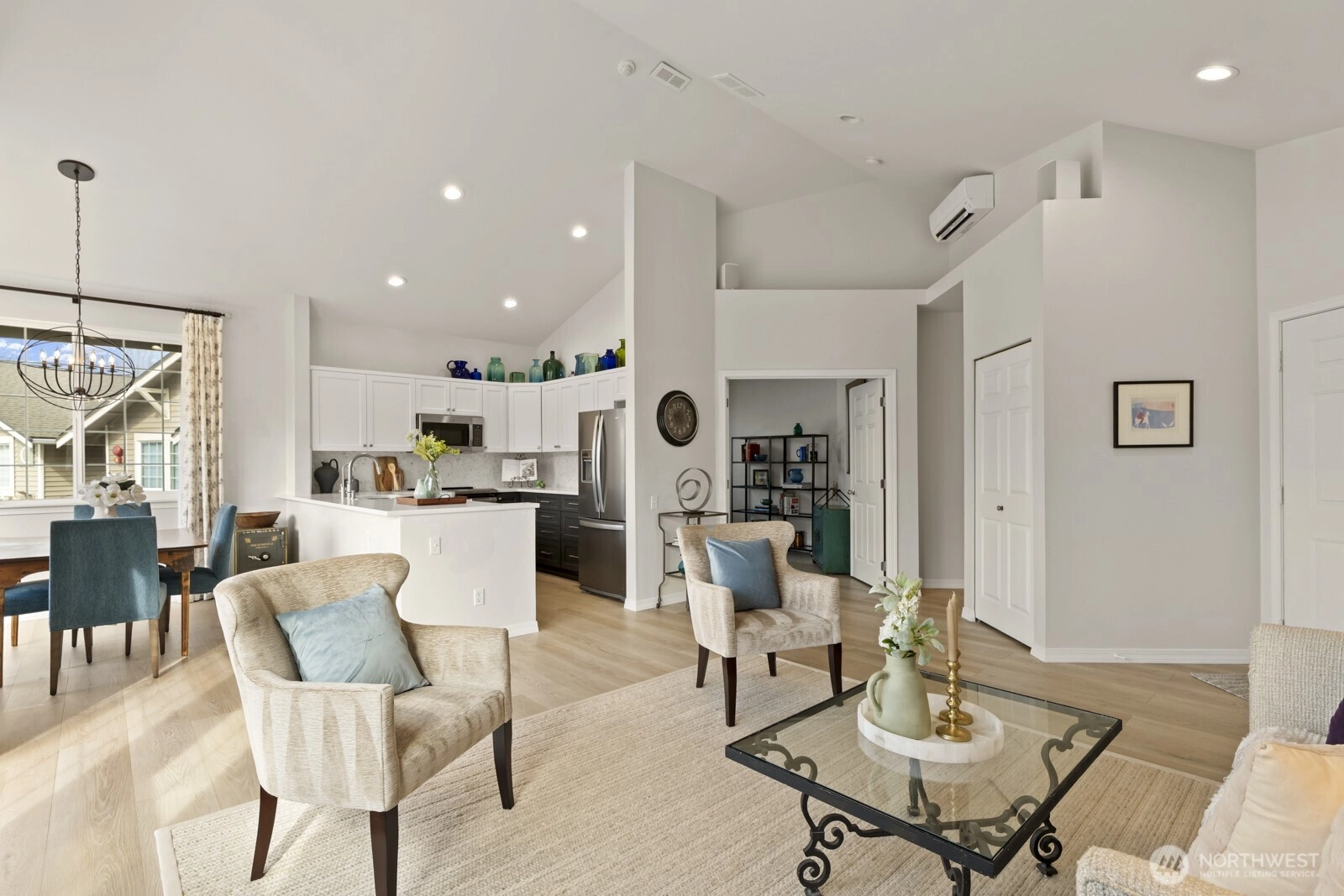 A move to the suburbs doesn't have to mean giving up connection to the city, & that's especially true at English Cove! Set just moments away from world-class restaurants, beloved Marymoor Park, great shopping & light rail transporting you to Bellevue & beyond, you can have it all right from this quiet, park-like setting. Step inside this bright & airy top floor unit to find stylish, thoughtful updates at every turn: luxe vinyl plank floors, high-end custom curtains, accent walls w/ designer colors, & 2 remodeled bathrooms. The open concept is truly made for entertaining; a spacious dining area easily accommodates dinner parties & holiday meals, accentuated by vaulted ceilings & plentiful windows. Chefs will love to showcase their talents in the beautifully remodeled kitchen, equipped w/ newer stainless appliances, quartz counters, new cabinets & hex tile backsplash. A generously-sized primary boasts dual closets & an ensuite 3/4 bath, complete w/ marble counters, dual vanities & a skylight. A second bedroom w/ custom storage organizers & a roomy den/office space give you great versatility & potential uses. In-unit laundry, a 2-car tandem garage & many furniture pieces are included! This well-run HOA offers a serene place to call home w/ parks, trails & greenery all around you. Microsoft, Redmond Town Center, grocery stores, cafes & all the modern conveniences are within easy reach. Get the best of every world here!