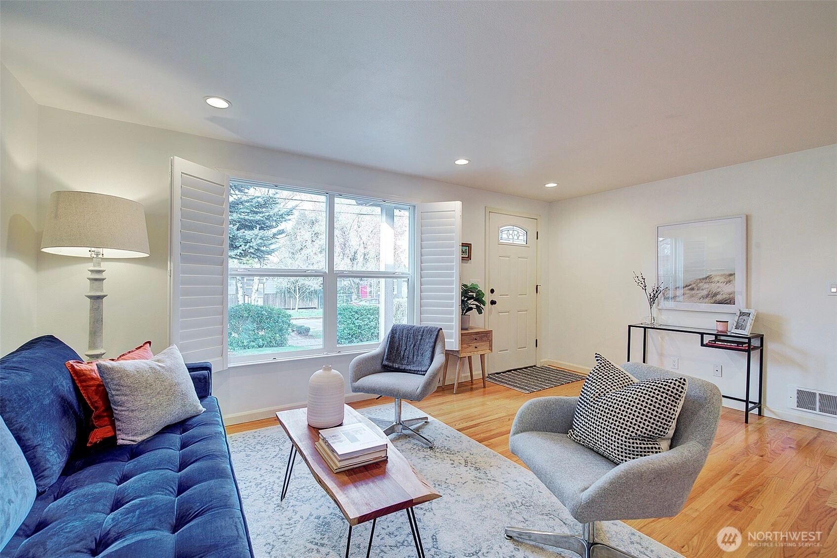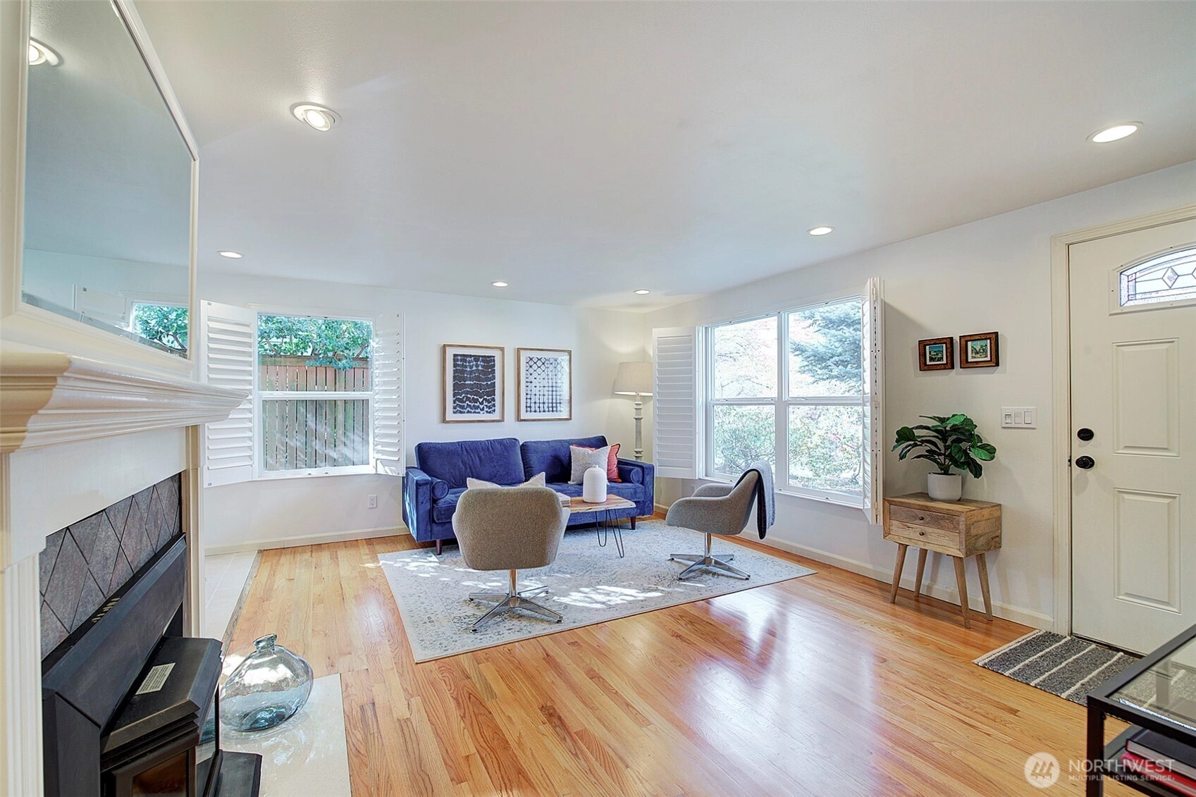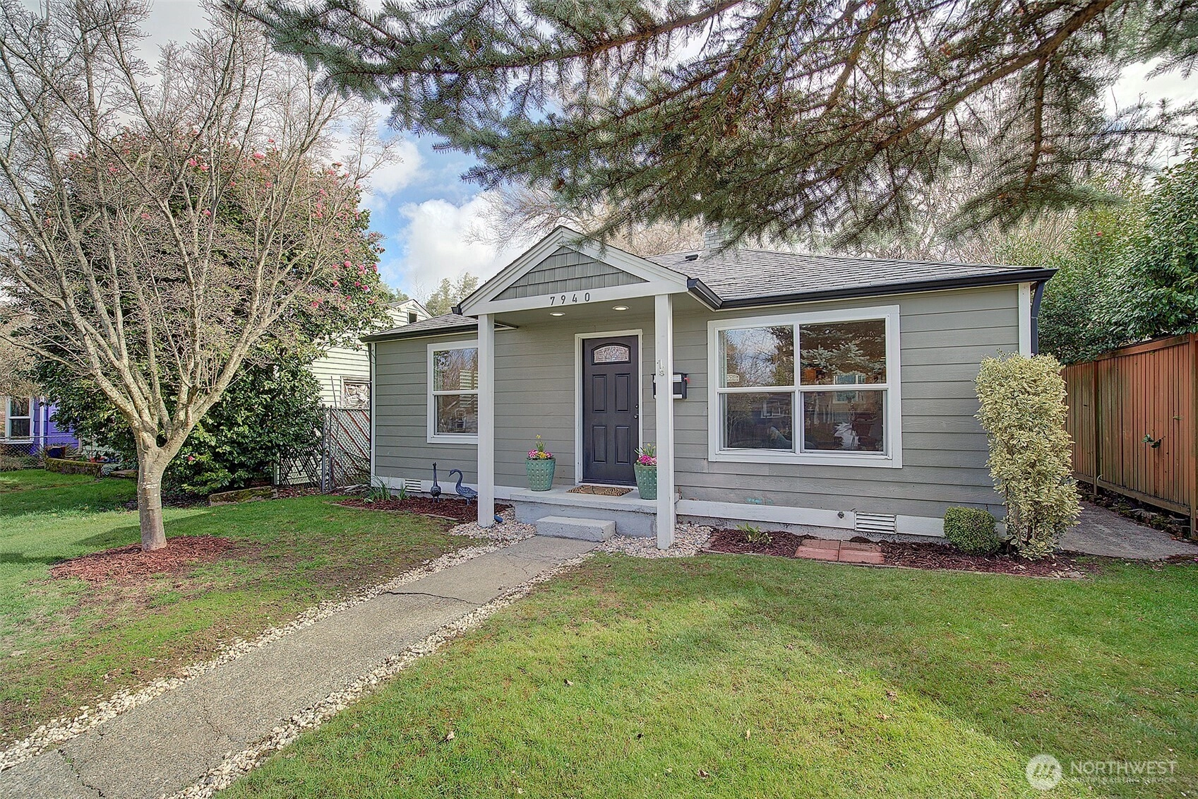 Welcome to this charming, updated, 2 bedroom, 1 bath, West Seattle Bungalow! Light filled, and freshly painted, the spacious living room features a beautiful tiled, mantled fireplace - the centerpiece of the home! Lovely hardwood floors, recessed lighting, beautiful window treatments, set the backdrop to your new lifestyle. Updated kitchen opens to eating area and living room, and has door to rear yard - perfect for BBQ’s and entertaining! The hardwood floors continue to both bedrooms. Tiled updated full bath and laundry includes a skylight. Improvements include double pane windows, cement board siding, recessed lighting, updated bath/laundry, and kitchen. Generous yard with mature landscape, fruit trees, and alley access. Large oversized 1 car garage with shop off alley has power and water - Perfect site for future DADU! Garage does needs some TLC. Additional 1 car off-street parking spot off alley. Wonderful location - great access for transit, and commuting. Close to Westwood shops, schools, and parks. Estate Sale, sold "as is".