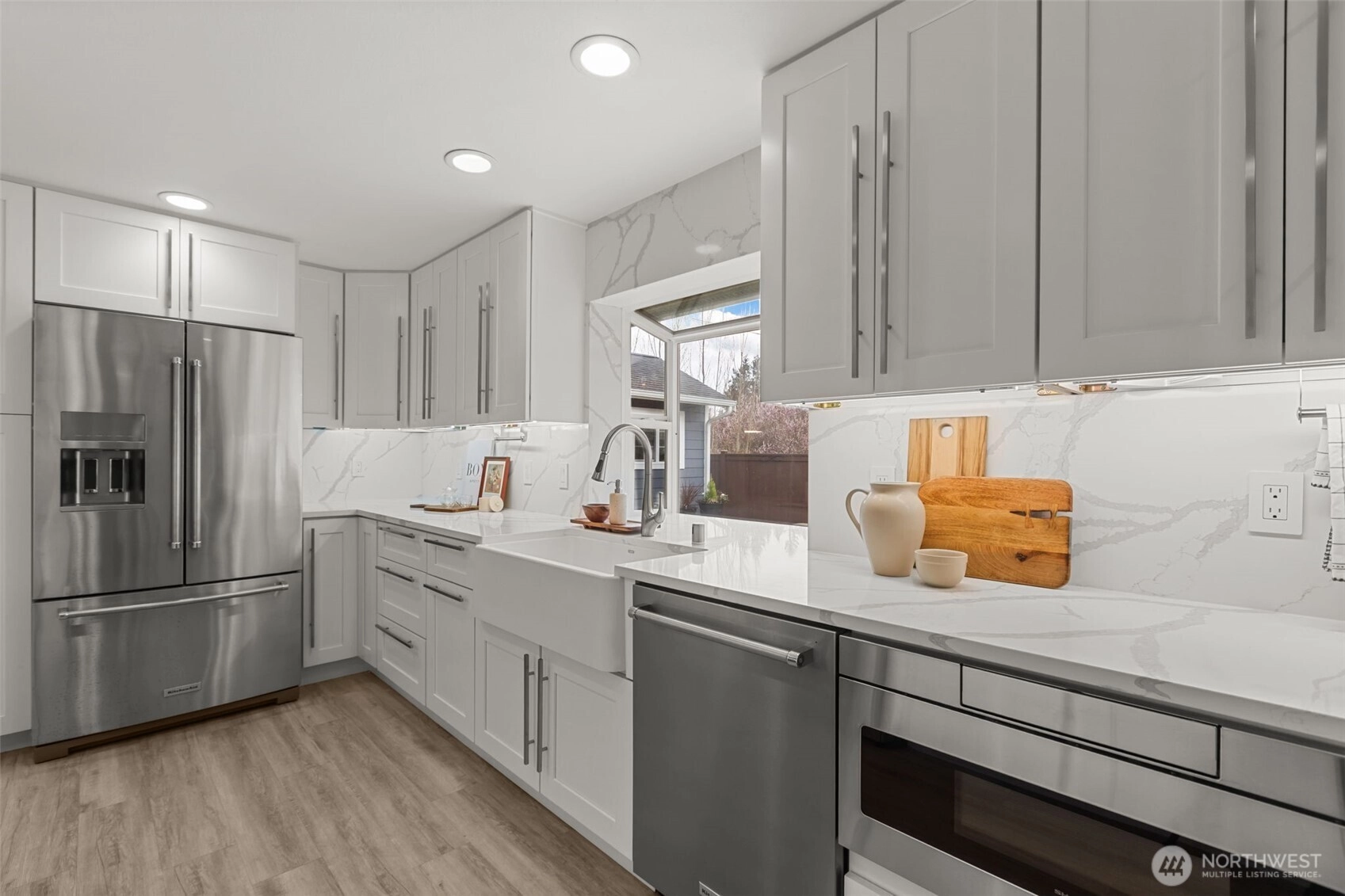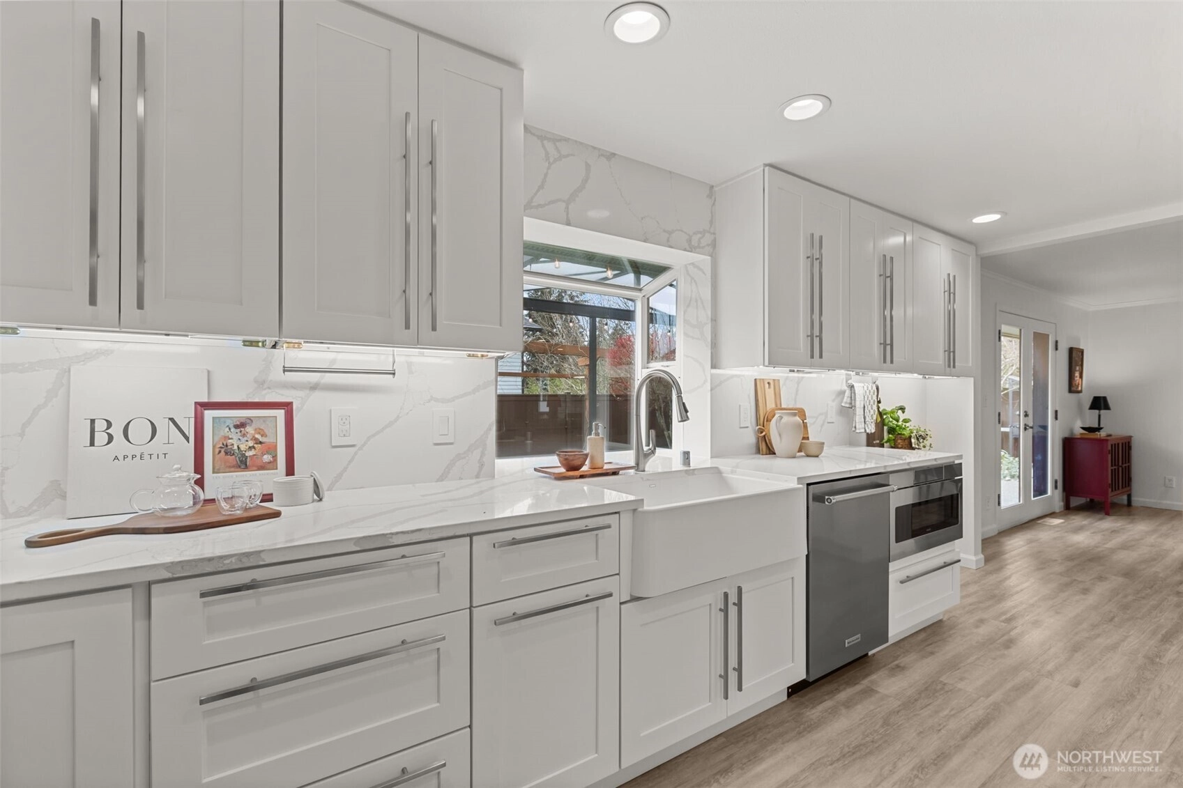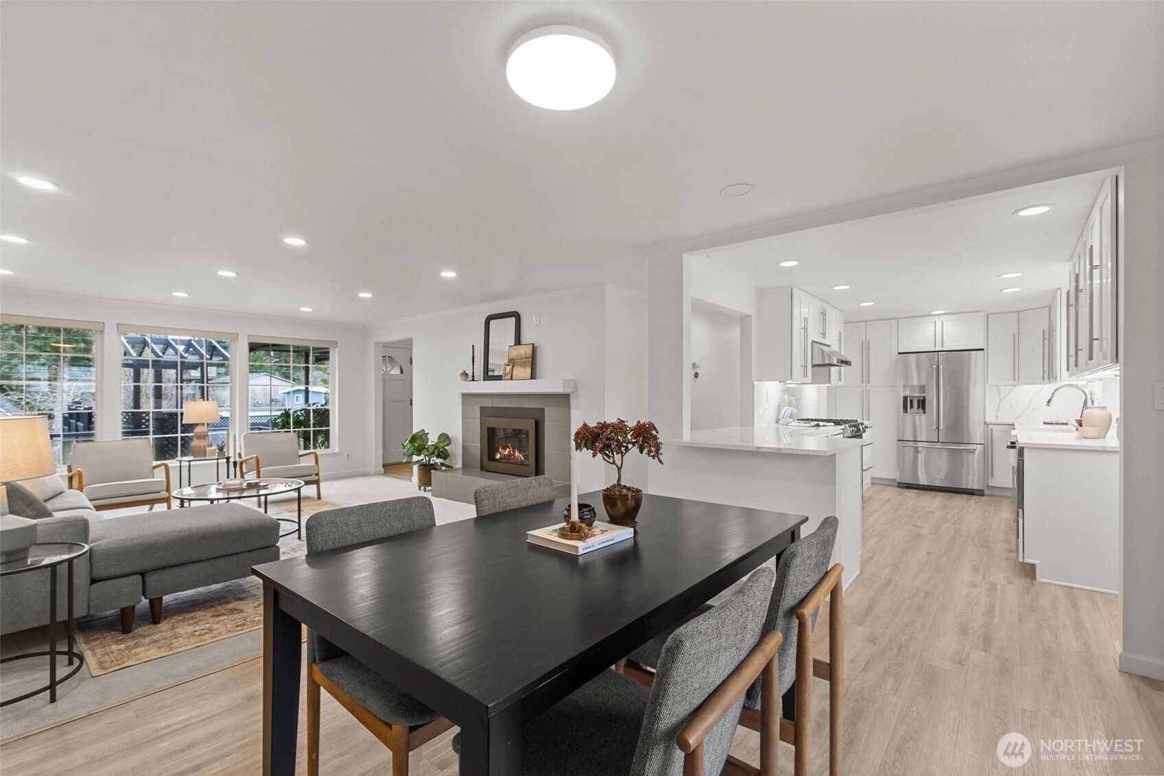 Welcome home to one level living done right. Located in coveted Edmonds, this home is bursting with function and charm! A bright and open layout, the living room offers cozy gas fireplace for both comfort and ambience. The updated chefs kitchen adorned with shaker cabinets and pental quartz slab counters offers plenty of storage and flows seamlessly into a dining area just waiting to host you! Three spacious bedrooms including a primary with an ensuite spa like shower, heated floors, large walk in closet, and a reading nook. Step outside to a generously oversized covered and lit patio perfect for entertaining, enchanting nights by the firepit and a backyard with room for gardening and more. A large storage / potting shed for all of your lawn care needs too. A detached heated bonus space w/ a loft that’s perfect for home office, guests or a gym, whatever you want it to be! Huge 2 car garage plus storage, koi pond, hardee plank siding, newer roof, updated systems (plumbing, electric, furnace, h2o heater and A/C) are added bonuses. Conveniently close to Edmonds parks, shopping, dining, and the dreamy Edmonds waterfront. Every house has a story, come and start living the Edmonds dream here today! Pre inspected and ready to be yours! Welcome home .
