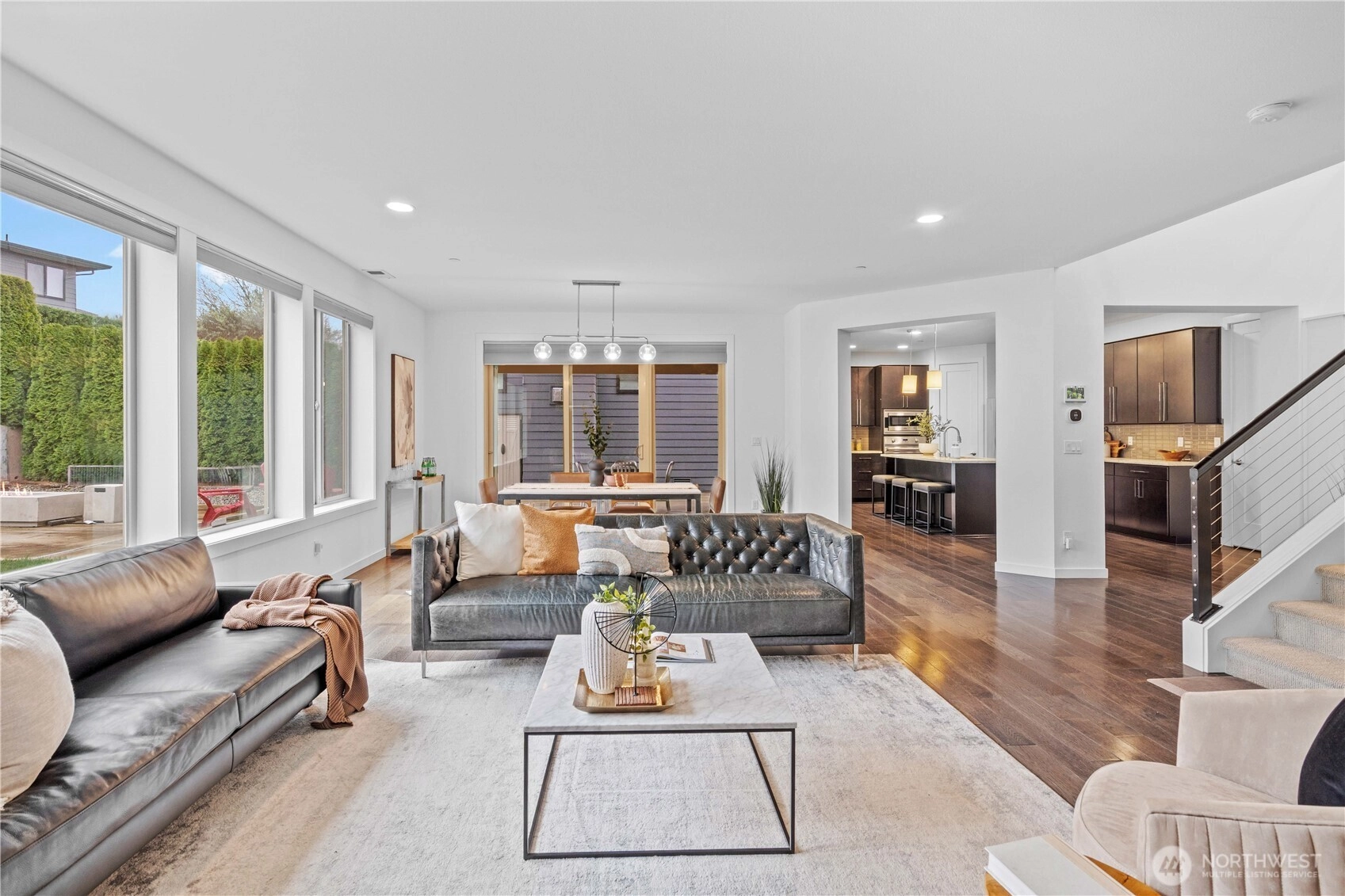 Lake and mountain view living in this beautifully maintained 5BD / 3.25BA home offering 3,270 sq. ft. of thoughtfully designed space. Built in 2014, this home shows exceptional pride of ownership and features a bright open-concept layout perfect for everyday living and entertaining. The spacious kitchen and main living areas flow seamlessly to outdoor space with a firepit, ideal for relaxing evenings and gatherings. Two bedrooms feature private en-suites, creating a flexible layout perfect for multigenerational living or guests. Set on a low-maintenance 6,008 sq. ft. lot with a 2-car garage. Conveniently located near Lake Washington, The Landing, and quick access to Interstate 405. Enjoy lake walks, nearby dining, shopping, and an easy commute. Move-in ready and a rare opportunity in a prime Lower Kennydale location.