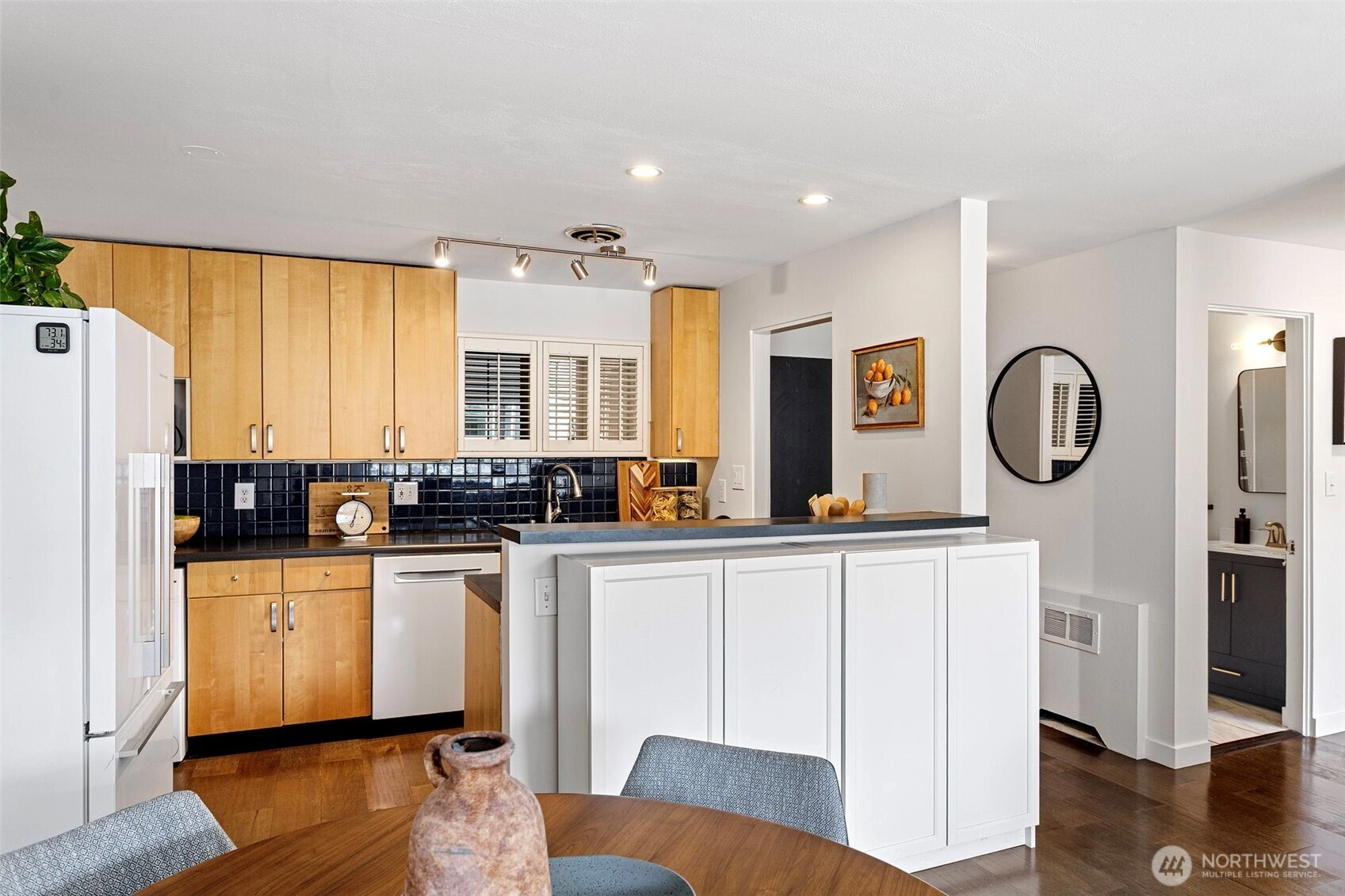 Discover the Toltec Condominium unit #12 on Capitol Hill, an inviting 2 bedrooms, 1bath home with 687 square feet its own outdoor entrance. Step inside to find a welcoming foyer perfect for hanging coats. The open kitchen seamlessly flows into a spacious dining and living area. The kitchen features include maple cabinets, a blue tile backsplash, dishwasher, induction range, track lighting, and a convenient W/D combo unit. Large windows in the living room lead to a covered balcony, ideal for container gardening, enjoying your morning coffee, or evening cocktails. Down the hallway is the bathroom with white tiled surround, ceramic floors, and 2 comfortable bedrooms. Engineered hardwoods, fresh paint and radiator heat throughout. This home is perfect for first-time buyers, those looking to downsize, or investors. The Toltec sits on a large lot surrounded by greenery and pathways that provide easy access to both 13th and 14th Ave East. You’re just 2 blocks away from Volunteer Park, 7 blocks from the Capitol Hill light rail, and surrounded by a vibrant array of restaurants, performing arts, shops, schools, healthcare, nightlife, and transportation in all directions. Don’t miss this wonderful opportunity!