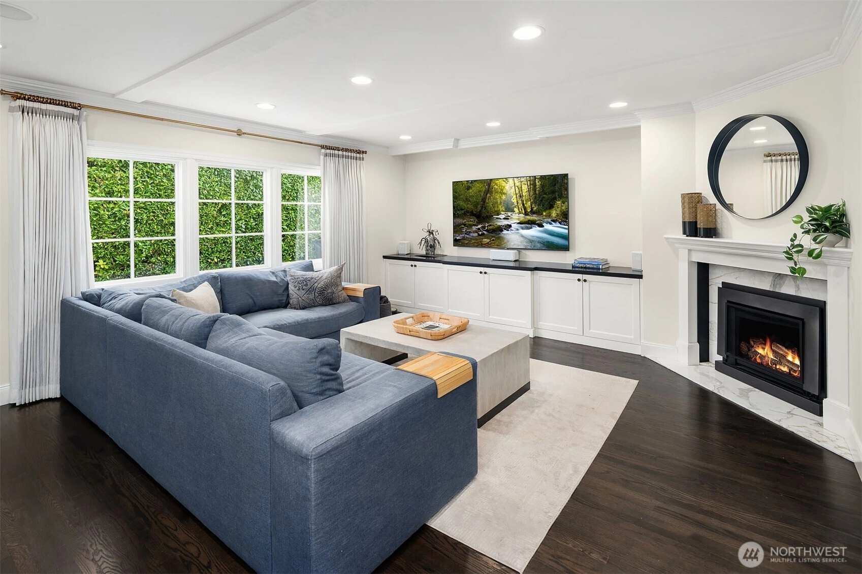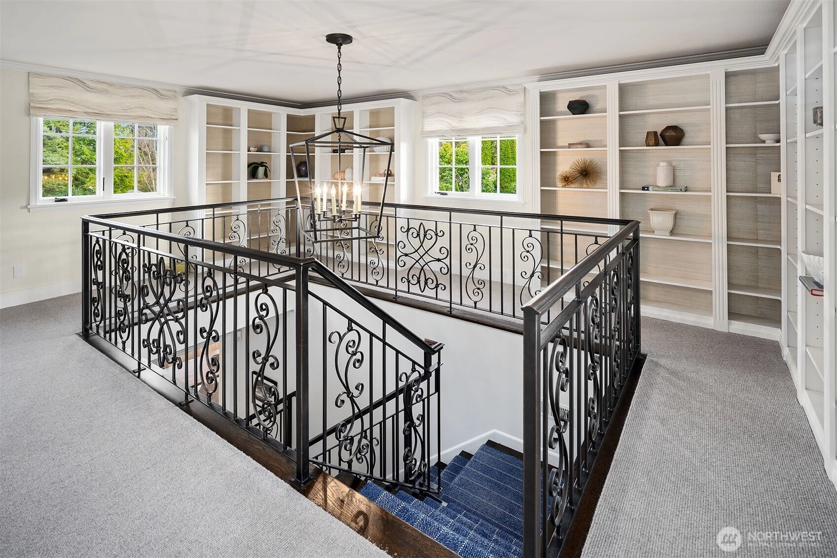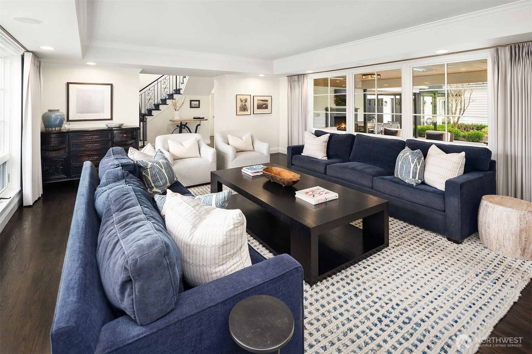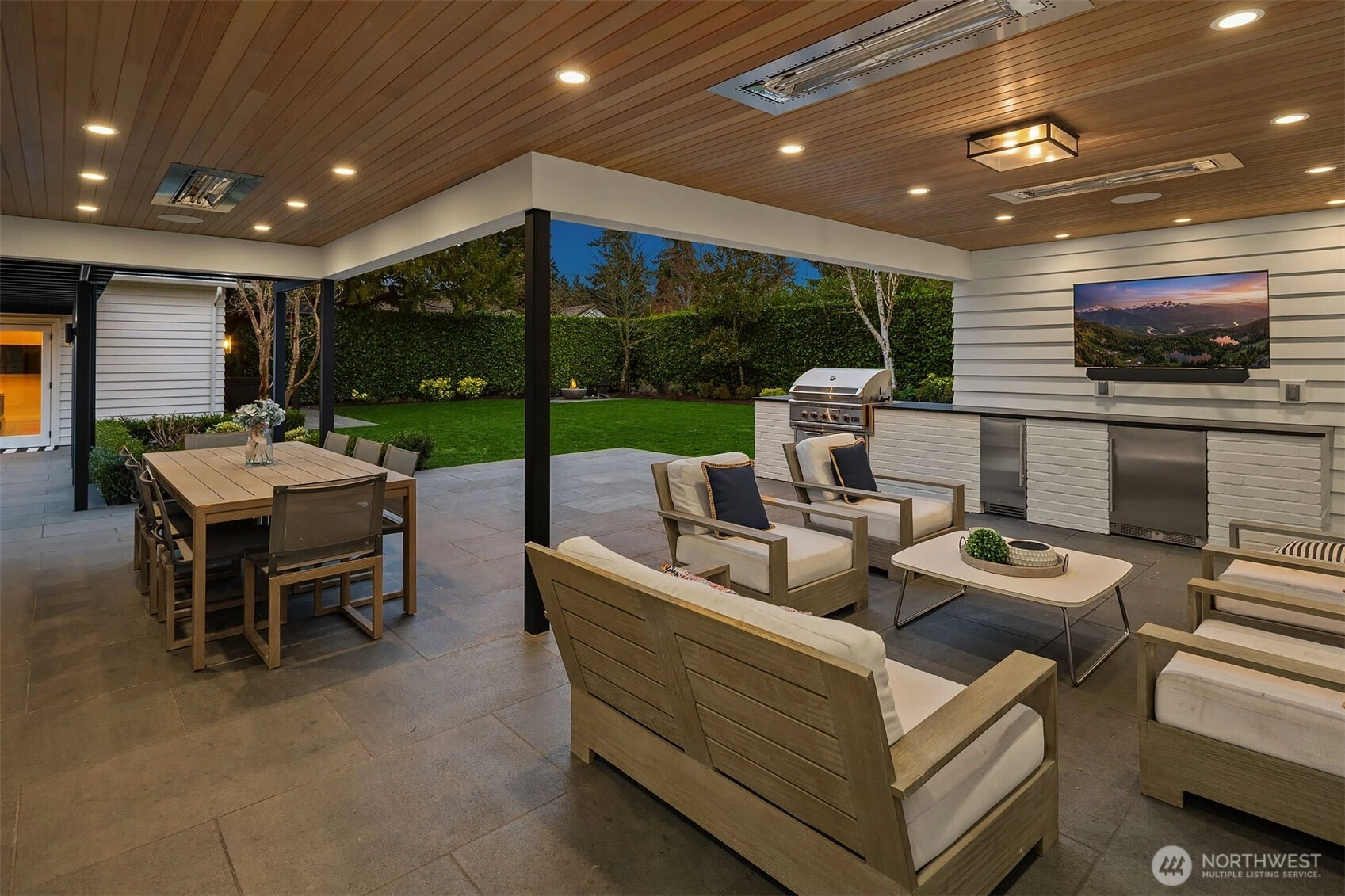 A rare opportunity in the coveted Broadmoor community. This 1940 residence by noted architect William Bain has undergone a masterful transformation, blending timeless architecture with today’s finest upgrades and Pasadena-style indoor-outdoor flow. Behind a private gated entry framed by lush new landscaping, the home offers true one-level living across an expansive main floor. East-facing, light-filled living and dining spaces flow seamlessly over oak hardwood floors to a professional-grade kitchen with Wolf range, Sub-Zero refrigerator, marble island, wine fridge, and walk-in pantry. Two main-level bedrooms include a serene primary suite with walk-in closet and elegant bath. Upstairs, a library landing wrapped in built-in bookshelves leads to two additional bedrooms connected by a Jack-and-Jill bath, one with a private balcony. The finished lower level offers a media room, wine room, laundry, and new bathroom. The main-level flows outside through a covered terrace with cedar ceiling, heaters, A/V, DCS barbecue and outdoor kitchen overlooking the expansive lawn and fire pit. The adjacent 3-car garage and flex space, integrated via breezeway, provide a home office or guest suite with French doors to the lawn. Exhaustive infrastructure upgrades—new roof, siding, electrical, A/C, plumbing and sewer—ensure complete peace of mind and long-term value in this meticulously re-imagined Broadmoor estate.