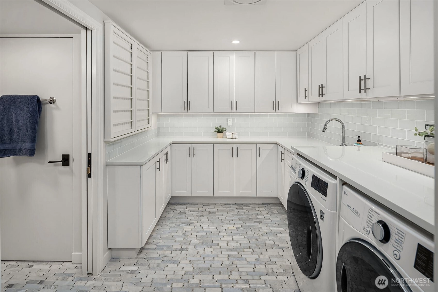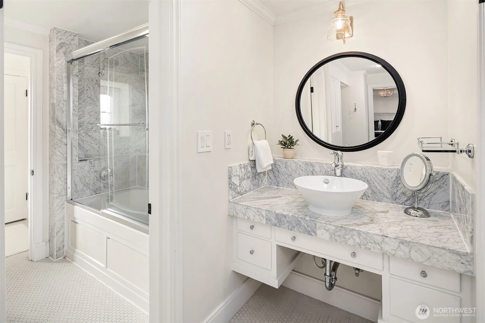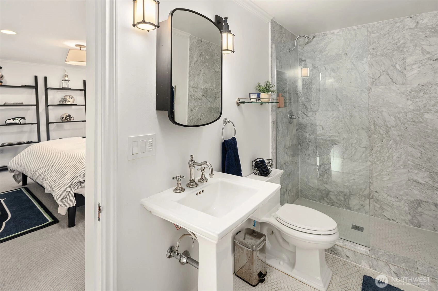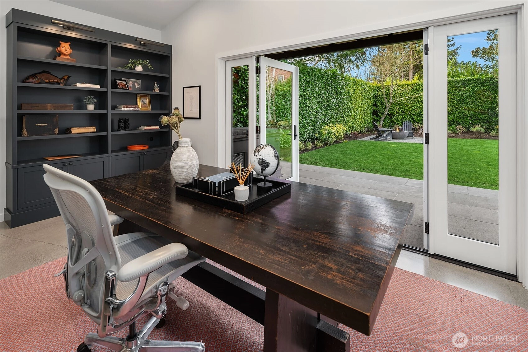 A rare opportunity in the coveted Broadmoor community. This 1940 residence by noted architect William Bain has undergone a masterful transformation, blending timeless architecture with today’s finest upgrades and Pasadena-style indoor-outdoor flow. Behind a private gated entry framed by lush new landscaping, the home offers true one-level living across an expansive main floor. East-facing, light-filled living and dining spaces flow seamlessly over oak hardwood floors to a professional-grade kitchen with Wolf range, Sub-Zero refrigerator, marble island, wine fridge, and walk-in pantry. Two main-level bedrooms include a serene primary suite with walk-in closet and elegant bath. Upstairs, a library landing wrapped in built-in bookshelves leads to two additional bedrooms connected by a Jack-and-Jill bath, one with a private balcony. The finished lower level offers a media room, wine room, laundry, and new bathroom. The main-level flows outside through a covered terrace with cedar ceiling, heaters, A/V, DCS barbecue and outdoor kitchen overlooking the expansive lawn and fire pit. The adjacent 3-car garage and flex space, integrated via breezeway, provide a home office or guest suite with French doors to the lawn. Exhaustive infrastructure upgrades—new roof, siding, electrical, A/C, plumbing and sewer—ensure complete peace of mind and long-term value in this meticulously re-imagined Broadmoor estate.