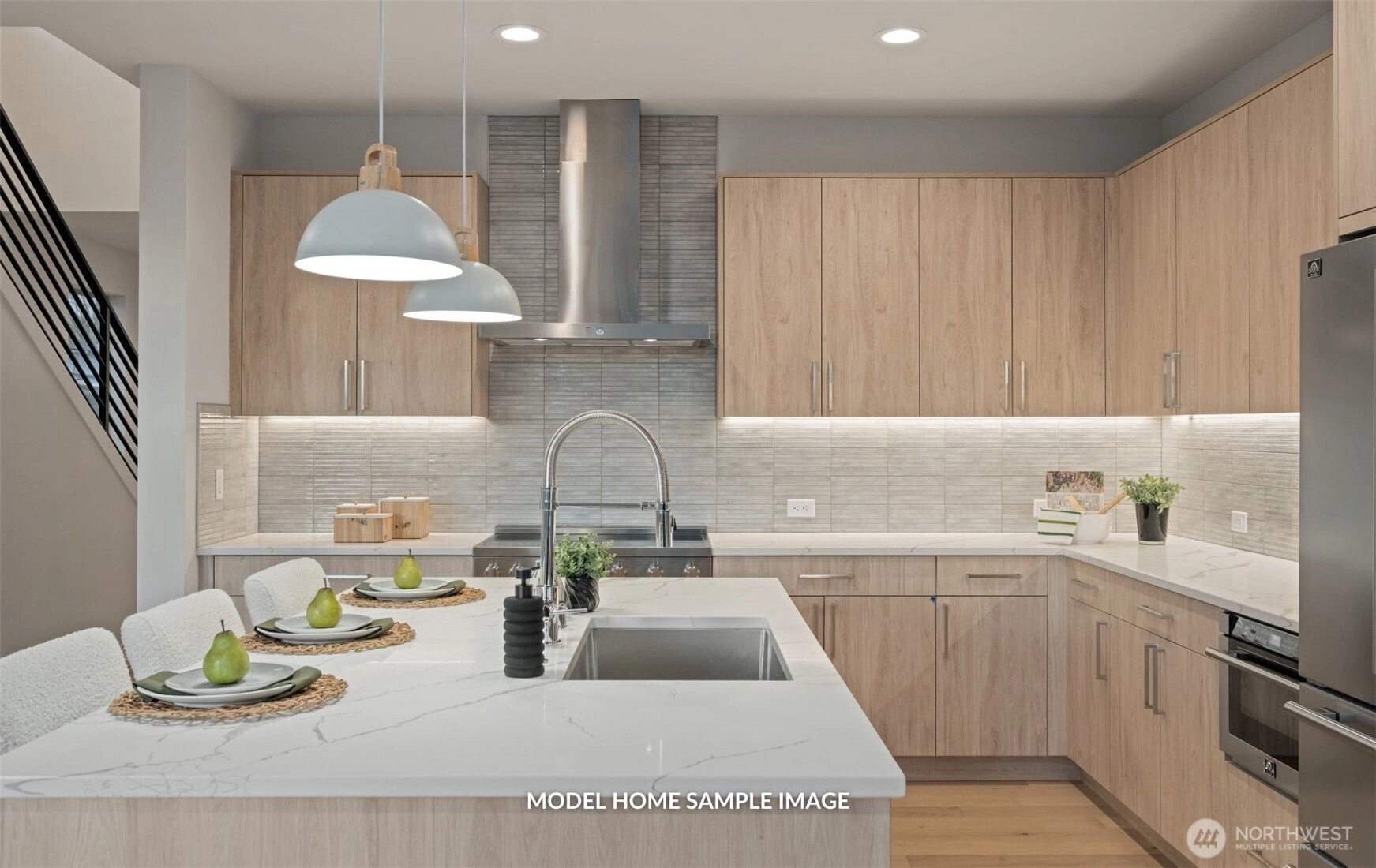 Merit Homes presents Wilder Lot 3! The 4-home community in desirable rose hill offers this thoughtfully designed two-story floorplan offering a reduced footprint without sacrificing luxury or livability. This home features 3 bedrooms, 2.5 bathrooms, a bright, open layout, and an attached EV-ready garage. Step inside to a light-filled open-concept main level ideal for both everyday living and entertaining. The gourmet kitchen showcases a quartz slab island with bar seating, custom soft-close cabinetry, dual-zone wine chiller, and a premium appliance package highlighted by an induction range. The great room is warm and inviting with a sleek contemporary linear electric fireplace and seamless access to the outdoor patio. A stylish powder bath completes the main floor, perfect for guests. Upstairs, the primary suite is a true retreat, filled with natural light and featuring a spa-inspired walk-in shower with bench seating and dual shower heads, plus a walk-in closet with custom shelving. Two additional bedrooms provide ample space, complemented by a full secondary bathroom and a well-appointed laundry room with quartz countertops and upper and lower cabinetry. Ideally located for effortless commuting with quick access to major employers including Microsoft, Meta/Facebook, Amazon, and EvergreenHealth. Enjoy close proximity to Kirkland Costco, The Village at Totem Lake, parks, walking trails, and top-rated schools. Ask about our "$25k Your Way Incentive" program!