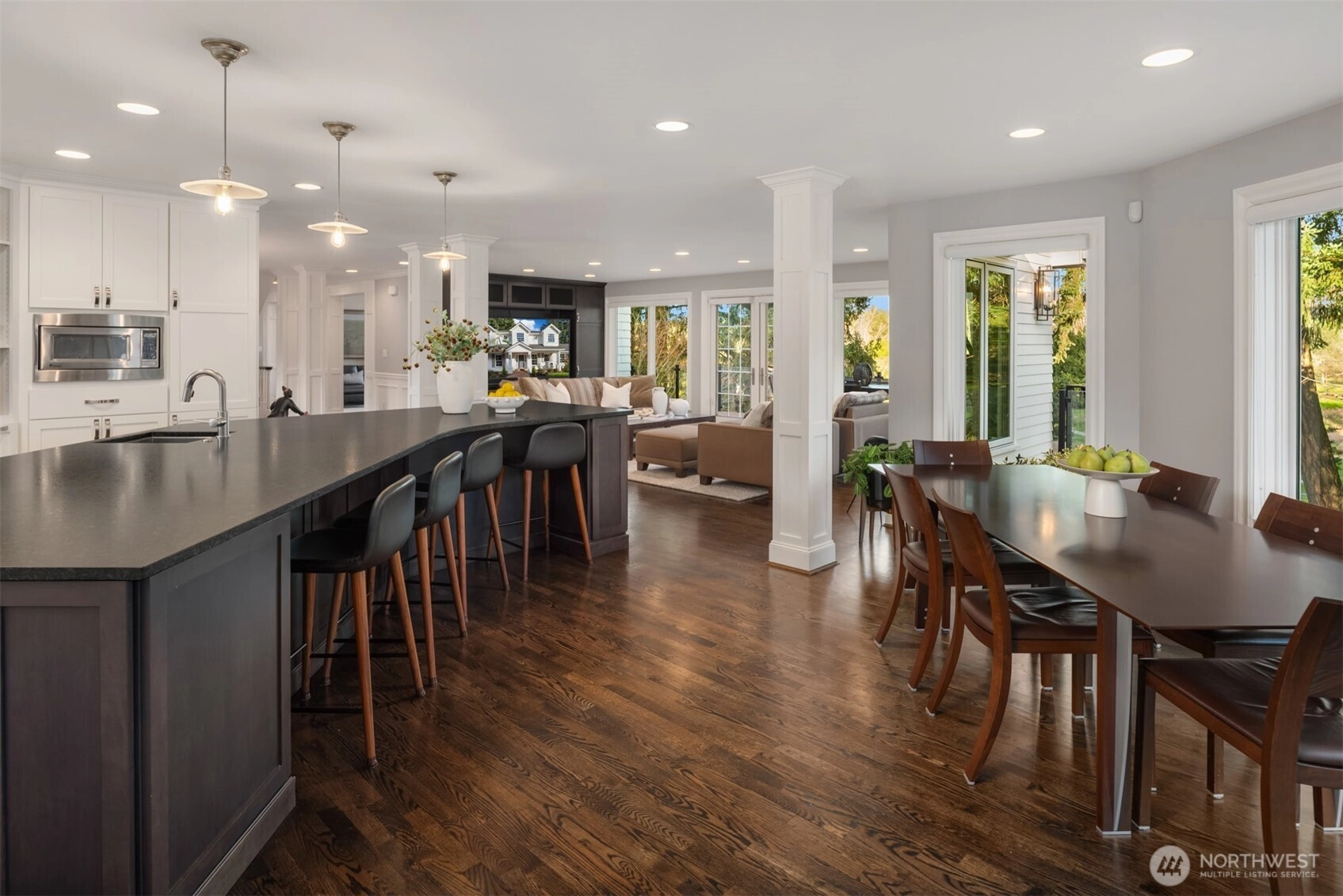 East Coast sophistication & timeless style privately nestled on one of Medina’s most prized avenues. Reimagined and rebuilt in 2012, this exceptional residence is set on nearly three-quarters of an acre overlooking the 5th green of the renowned Overlake Golf & Country Club. A fresh interpretation of classic architecture unfolds through an open floor plan designed for effortless entertaining and comfortable everyday living. Sun-drenched, refined spaces include a soaring living room, family room with French doors to the view deck, and an eat-in kitchen with room for many chefs. 5 bedrooms including 3 on the main level and a view primary suite offering verdant golf course views and a spa-like bath with gorgeous Calacatta marble. The lower level boasts a rec room with wet bar and kitchenette, exercise room, and an additional bedroom + bath. Lush, tranquil outdoor living areas for gathering and soaking in the view. Treasured privacy within minutes of top-rated schools,