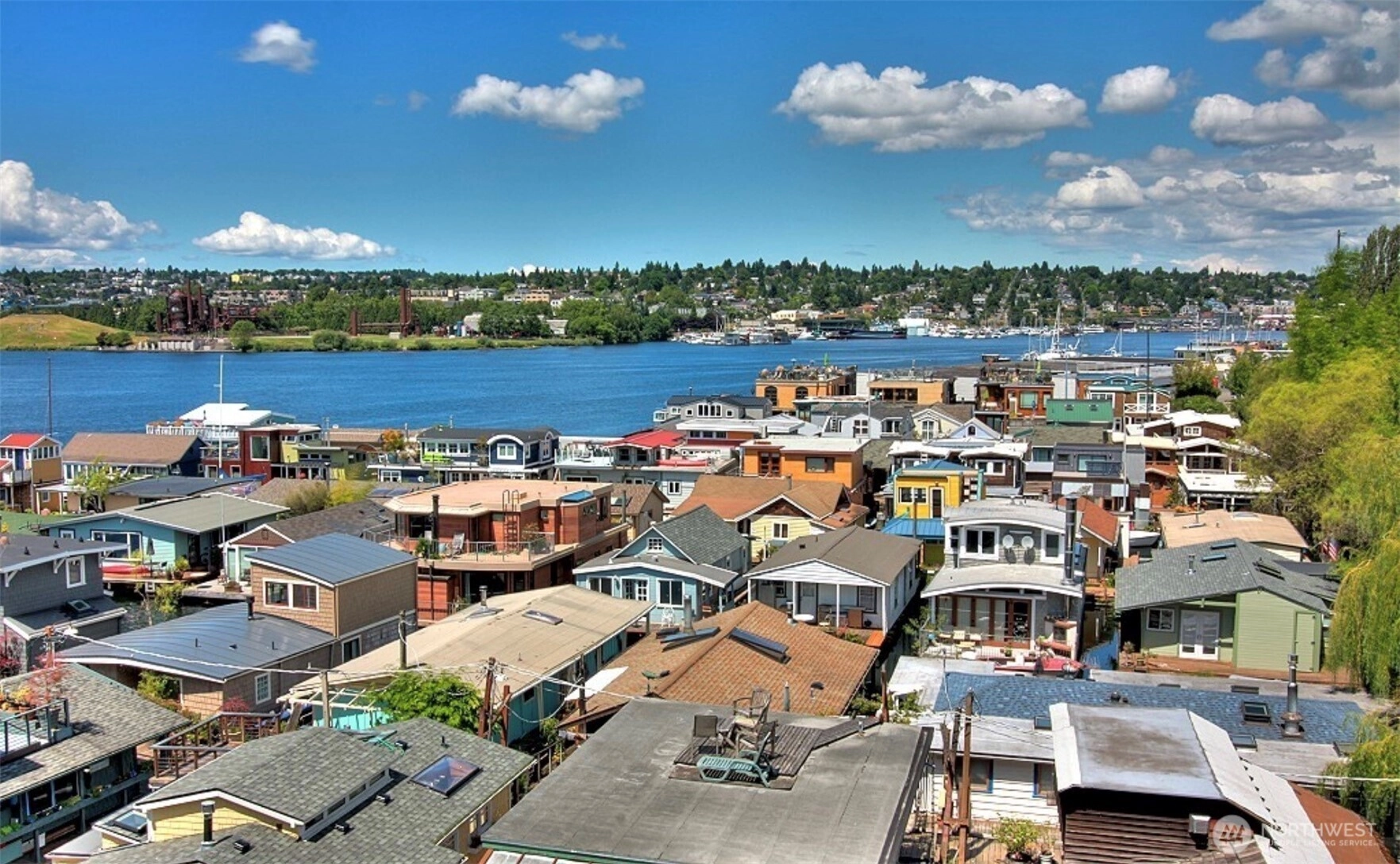 You’re not buying a condo so much as you're buying the next exciting chapter of life. Lake life. Welcome to Union Harbor Condominium. Live on Lake Union surrounded by houseboats and a lifestyle that comes with in-city waterfront living. Fully renovated top floor unit with a view of the lake, 4th of July fireworks and Gasworks Park. Plus, your own 26’ boat slip (rent/sell to someone else in the bldg). West-facing heated swimming pool. Watch the parade of boaters, seaplanes, cold plungers, floating hot tubbers and more from the sun deck. Whip-out your paddleboard or kayak from the floating storage platform and you’re on the lake in minutes. Pets are welcome and there’s a storage room for your bike. The condo unit received a studs-out renovation in recent years, incl. electric, plumbing, lighting, flooring, appliances, ceiling, skylights (when are there ever two large skylights in a condo?!), fireplace surround and shower. In-unit W/D. Built-in wall ports for portable A/C units in bedroom and living room. Pop across the street to Pete’s Market for groceries or stroll up to Eastlake Ave for Julia’s 14 Carrot Cafe, Serafina, Cicchetti, Armistice Coffee Roaster & Eastlake Coffee Cafe. One assigned parking space in the gated garage. Install an EV charger if desired. Comes with a generous storage bin at the parking spot plus a storage unit down the hall from your unit. The building recently completed a $4M exterior renovation including roof, windows, siding, decks, railings & more.