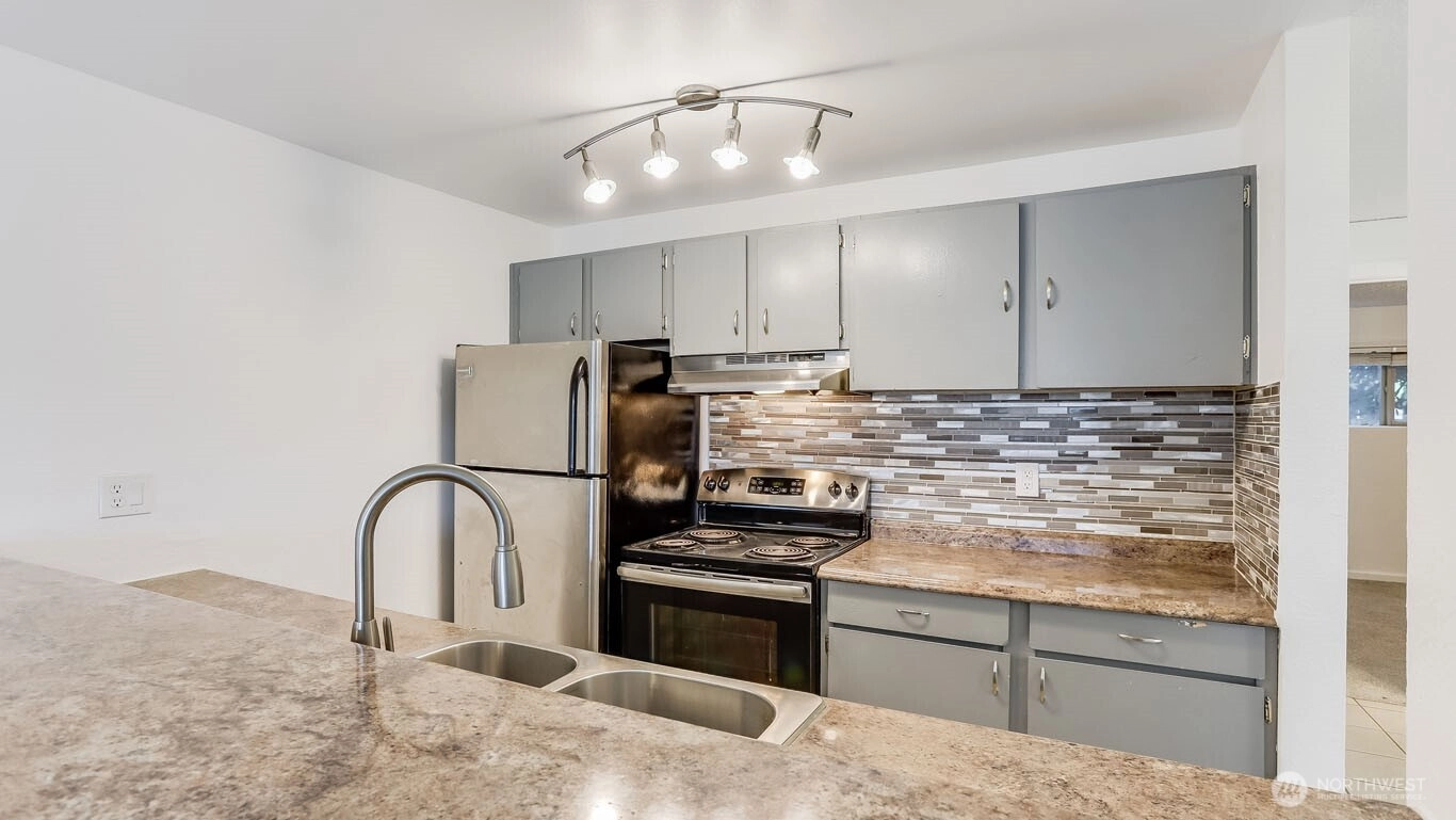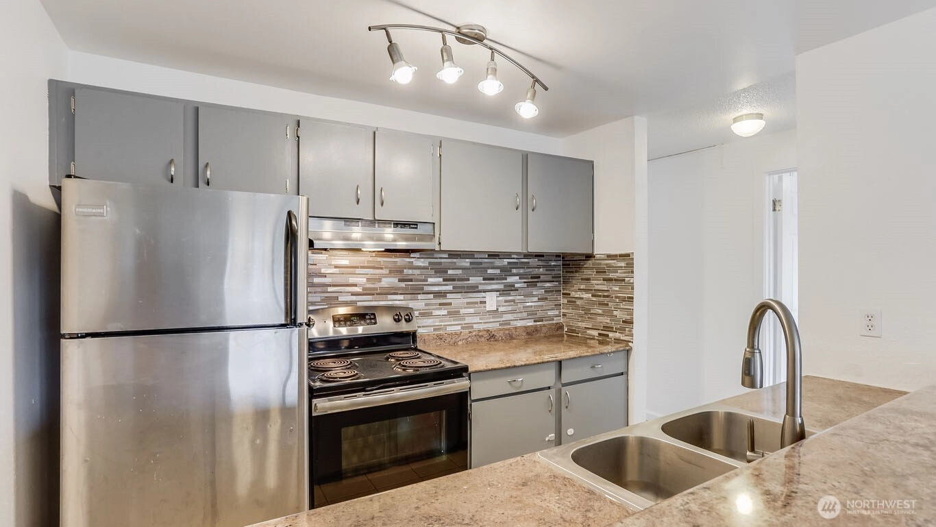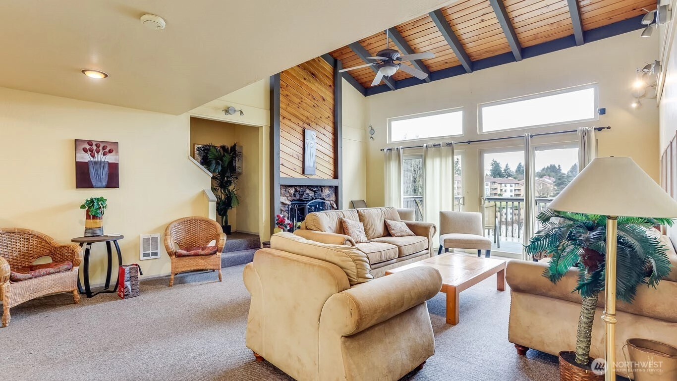 Move in ready and well-maintained ground-floor unit in the heart of Federal Way with a bright and functional layout. This 2-bedroom, 1-bathroom home offers a comfortable & functional open living space with ample natural light throughout the generous living space & lots of closet storage space. The galley kitchen is well-equipped with stainless steel appliances, granite counter-tops, a breakfast bar, & more storage. The open concept flows from the kitchen seamlessly into the dining room & living room areas; creating the ideal space for both daily living and entertaining. The back patio offers privacy with breathtaking sunsets & a direct / unobstructed view of the clear waters of serene Easter Lake, providing a peaceful, rural feel despite the benefit of being in a central location, making this home the ultimate & affordable waterfront lifestyle property. Excellent resort-style community amenities, including a clubhouse, pool, hot tub, sauna, gym, two laundry rooms and lots of secure parking spaces for you & your visitors. The unit is pet-friendly and doesn't have a rental cap, making it an excellent opportunity for both homeowners & investors. Its prime location offers quick & easy access to I-5, HW 18, shops, restaurants, parks, entertainment, bus lines, commuter routes & the light rail system. HOA dues include sewer, water, garbage & access the amenities. A great home with scenic views & comfortable, low-maintenance living. The perfect combination of convenience & value!