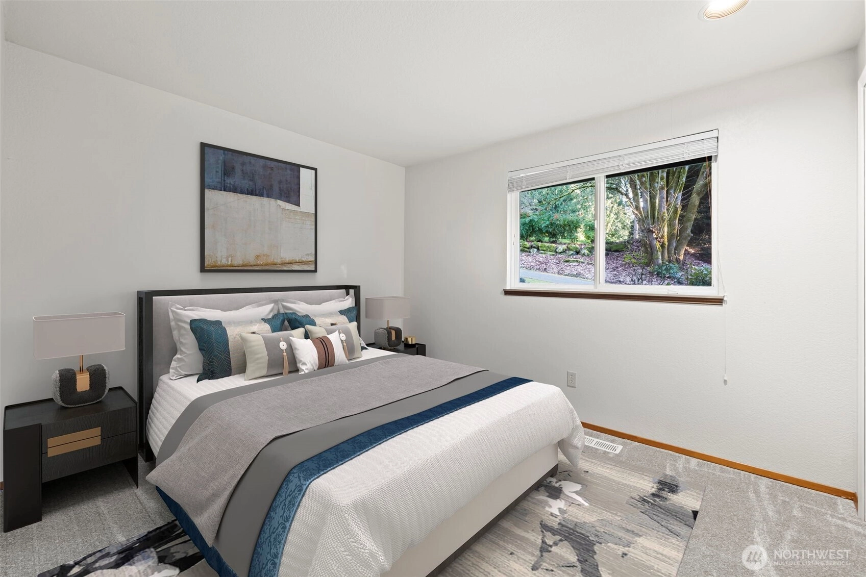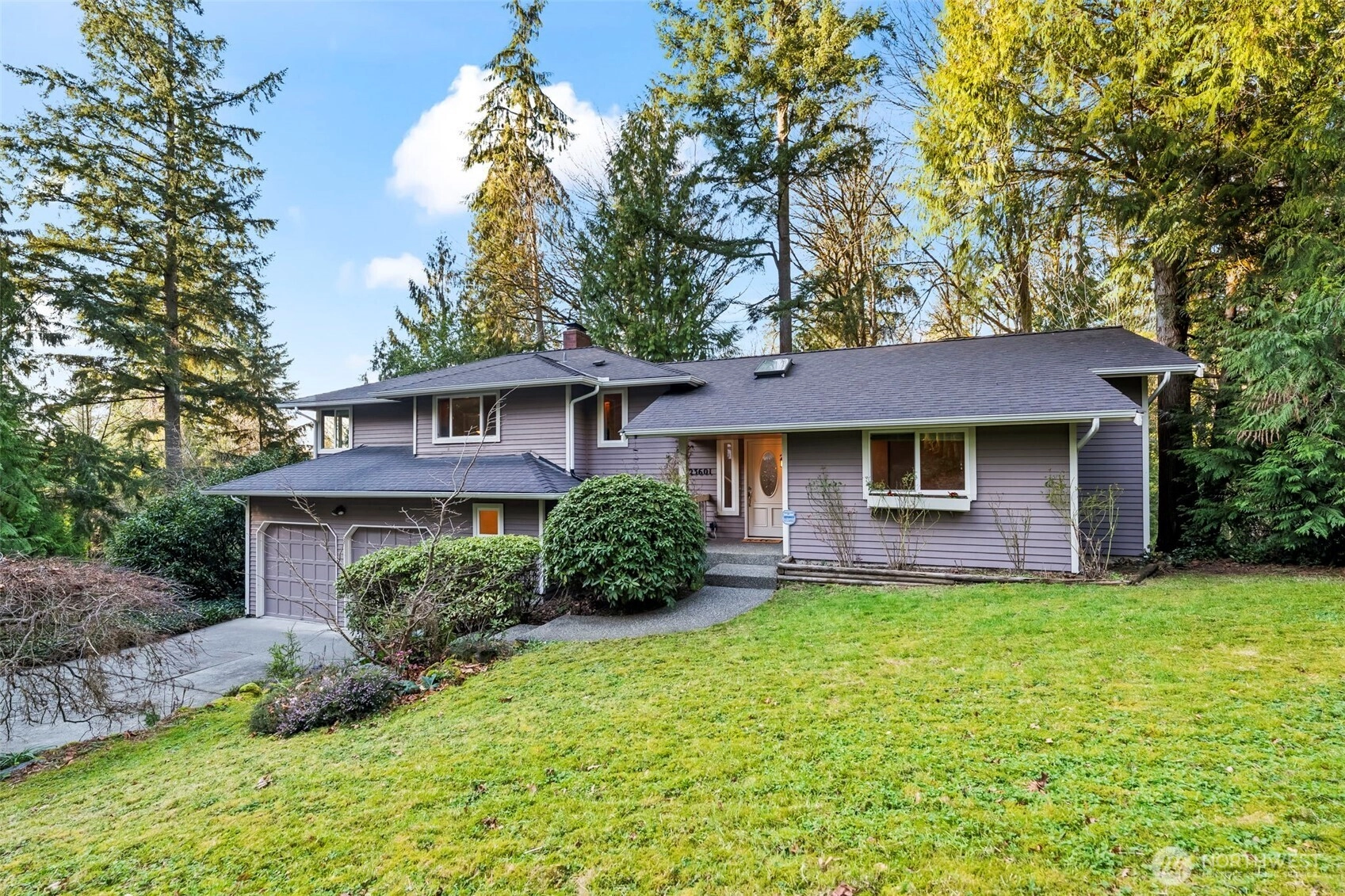 Welcome to the highly sought-after Wellington Hills neighborhood! Tucked away on a quiet cul-de-sac, this beautifully updated multilevel home blends timeless style and comfort in a peaceful, country-like setting with sunny space for gardening. Near a park with trails overlooking mountains and gorgeous sunsets, it’s just minutes from downtown Woodinville with easy access to SR9 and 522. Surrounded by mature greenery, expansive decks create effortless indoor-outdoor living, perfect for morning coffee, summer gatherings, and relaxing evenings. The home's light-filled entry opens to a spacious floor plan with plush new carpeting. The inviting main living area features quality finishes and a cozy fireplace. The eat-in kitchen is a chef’s delight with stainless steel appliances, granite counters, abundant cabinetry, and a generous breakfast area. A formal dining room with wet bar sets the stage for memorable dinners and celebrations. The serene primary suite features a private view deck, attached full bath, and walk-in closet. The lower-level rec room has a second fireplace, convenient half bath, and soundproof windows – perfect for musicians, a media room, home office or hobbies. Conveniently located near local shopping (Costco 5 min), tasting rooms, dining, and within the acclaimed Northshore school district. With an efficient heat pump for heating/cooling & no HOA, this exceptional opportunity offers privacy, quality, and everyday convenience all in one home. Move-in ready.
