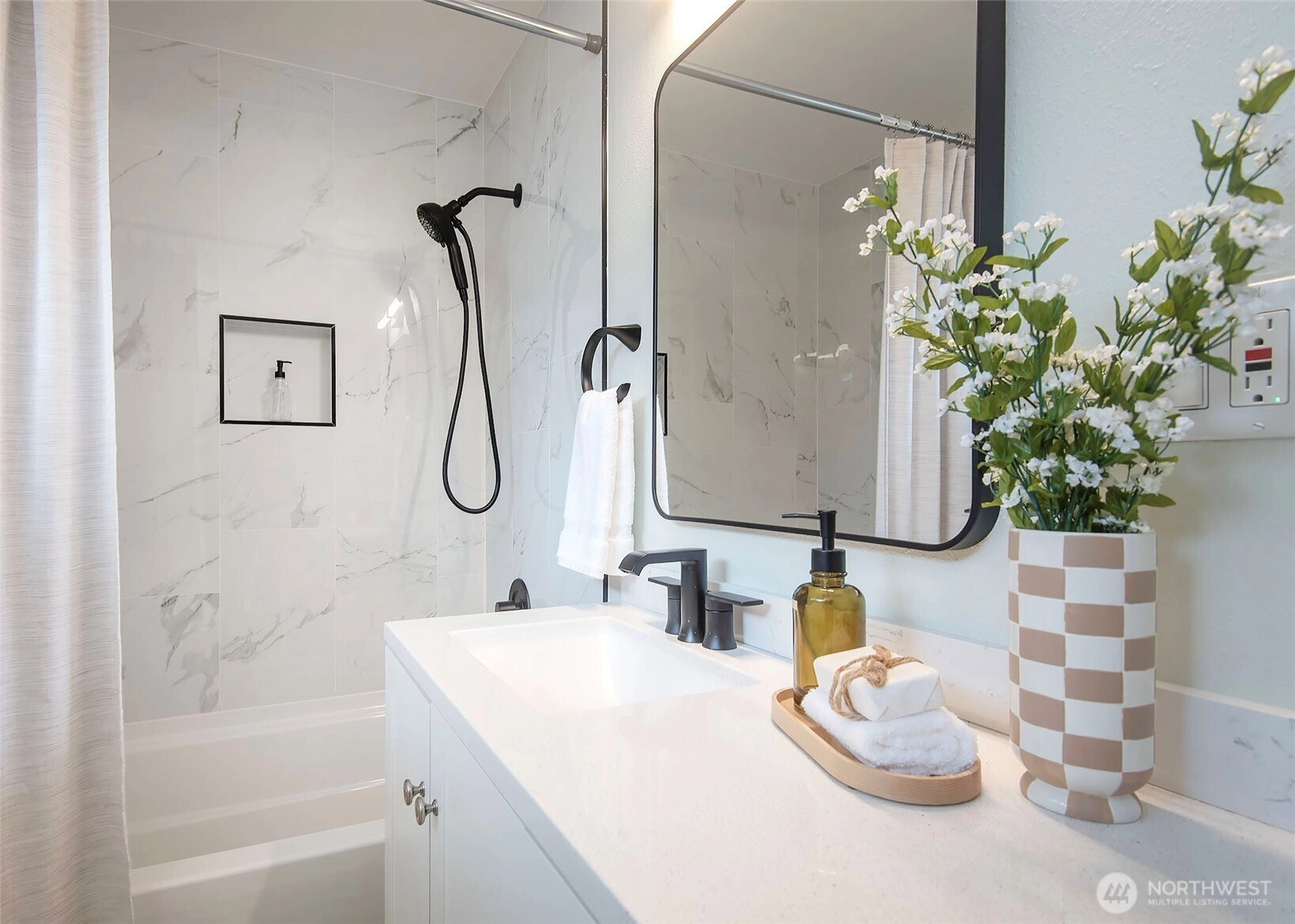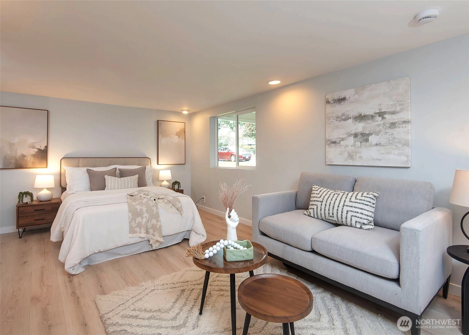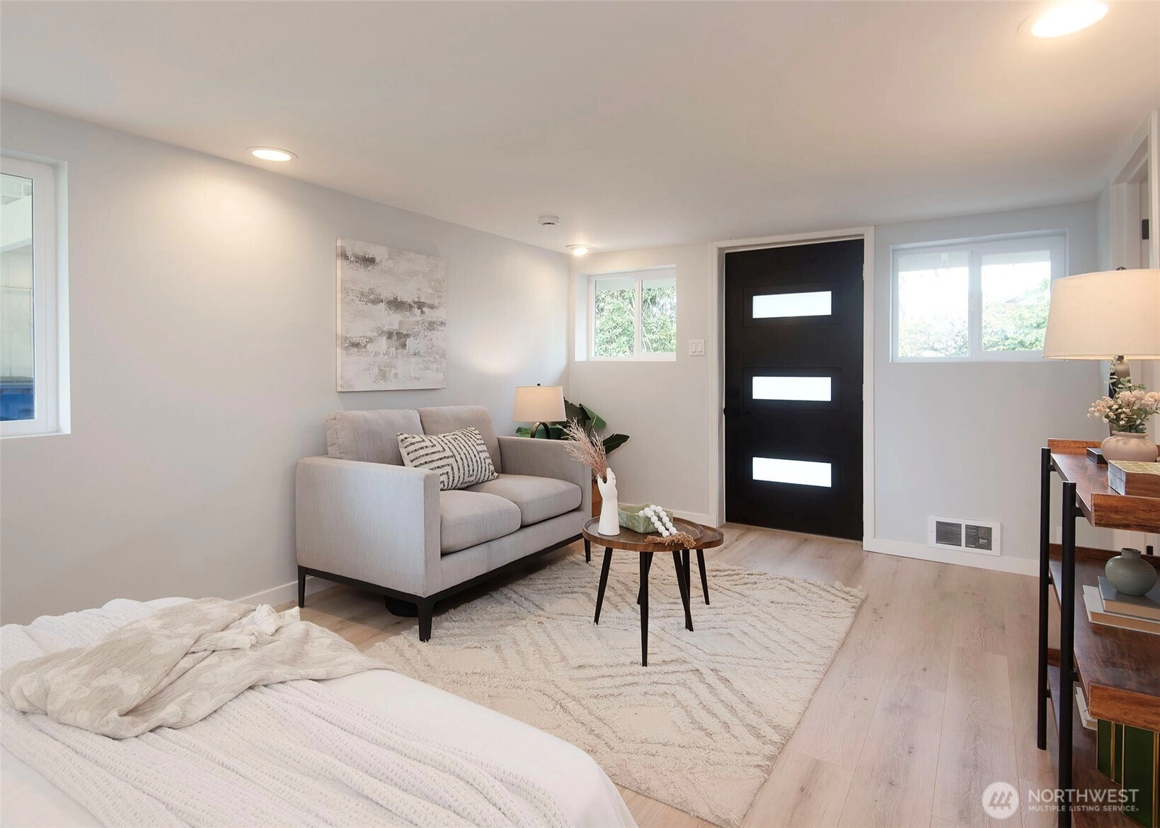 Classic Midcentury 1945 built Matthews Beach Rambler on large corner lot. Recently remodeled home with tons of upgrades and improvements throughout this clean single level charmer. The new modern kitchen is sure to impress with granite counters and all new Stainless Steel appliances and custom cabinets. Step into the light filled living room with warm engineered flooring and a cozy fireplace. This 3 bed 2 3/4 bath home has a large primary suite with a big walk in closet and a beautifully updated private bathroom complete with a spacious walk in shower . New windows and all fresh interior paint make this home move in ready. Home also has a separate entrance large back bedroom with a new kitchenette and full bath ready for multi- generational living or a potential ADU. Plenty of off street parking along with a private 2 spot carport in the back alley. Ideally located just minutes from Wedgwood, Matthews Beach, Children's Hospital and the University of Washington. Perched a few blocks above the Burke Gilman Trail and Lake Washington make this home ready for PNW living.