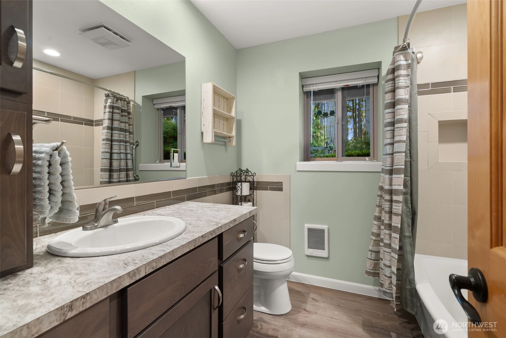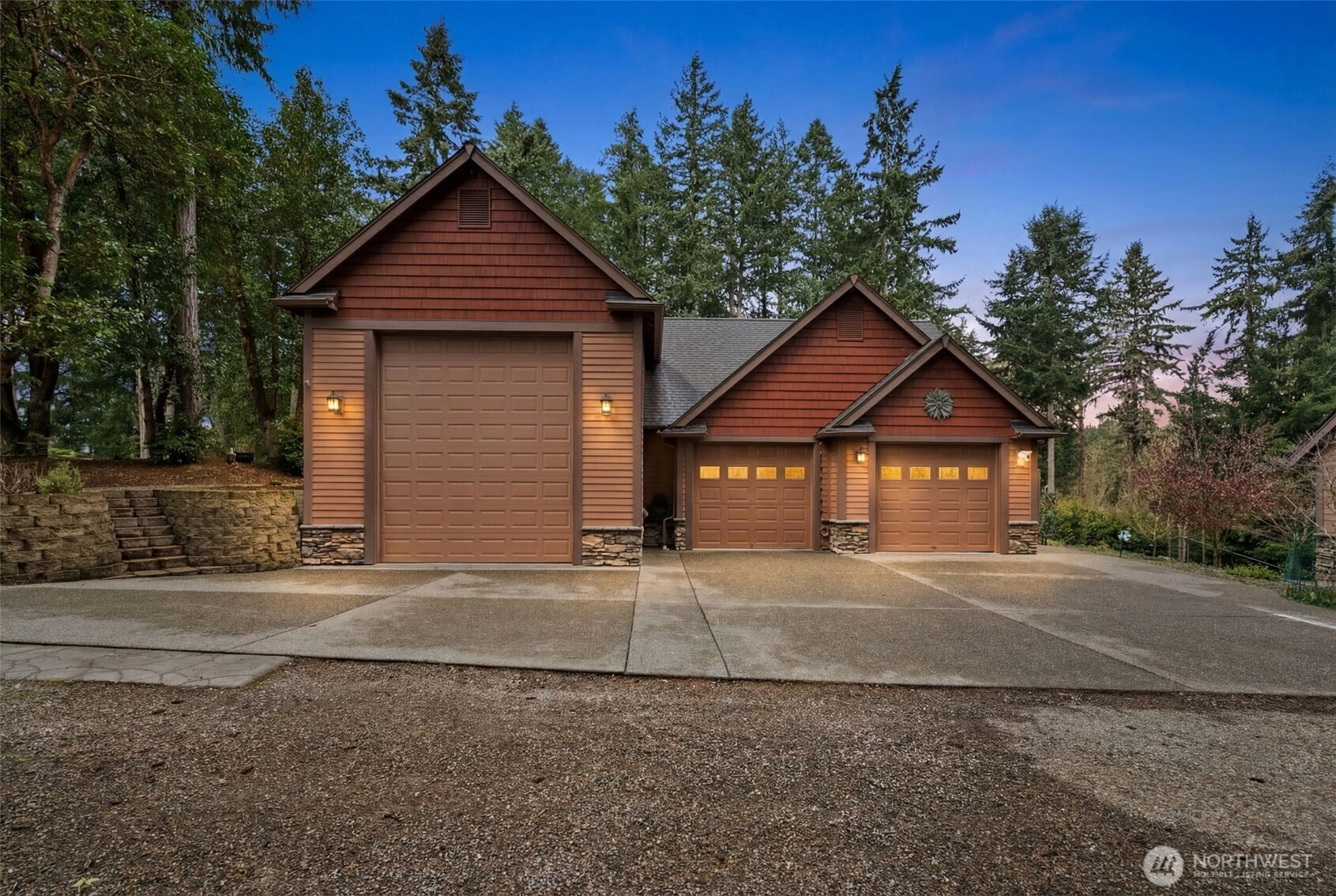 Perched above the Puget Sound, this beautifully crafted custom Anderson Island home offers refined living with sweeping Puget Sound views. The entertainer's kitchen features ample hickory cabinetry, granite countertops, Blanco sink plus high-end appliances which flows seamlessly into the great room with cozy fireplace. Steps away is a cedar sunroom & deck to capture stunning water views. Upstairs, the spacious primary suite includes a sitting area & ample deck for sunrise views, along with a luxurious en suite & large walk-in closet. The lower level offers 2 bedrooms, spacious bathroom, full kitchen & radiant heated floors, plus a separate entry with digital key code—ideal for multi-generational living or vacation rental potential. The property features a massive 2,000+ sq. ft. detached garage with 3 garage bays including a 40-ft RV bay. The fully insulated & heated garage includes a half bath & 400 sq. ft. upstairs flex space plus an on-demand generator for the home. Outside, enjoy a beautifully manicured yard with fruit trees, garden areas, & relaxing hot tub. Located near the local golf course & just 1 mile to the boat launch. This extraordinary property offers more than a home—it offers a lifestyle defined by quiet luxury & breathtaking views. A place where you arrive, exhale, & truly feel at home.