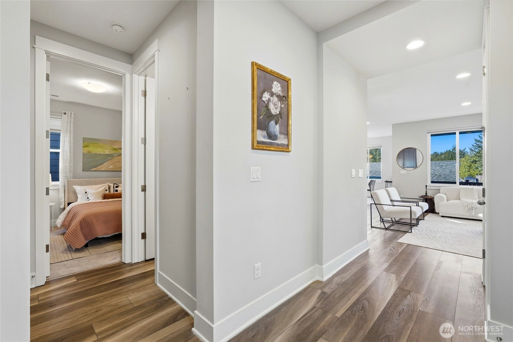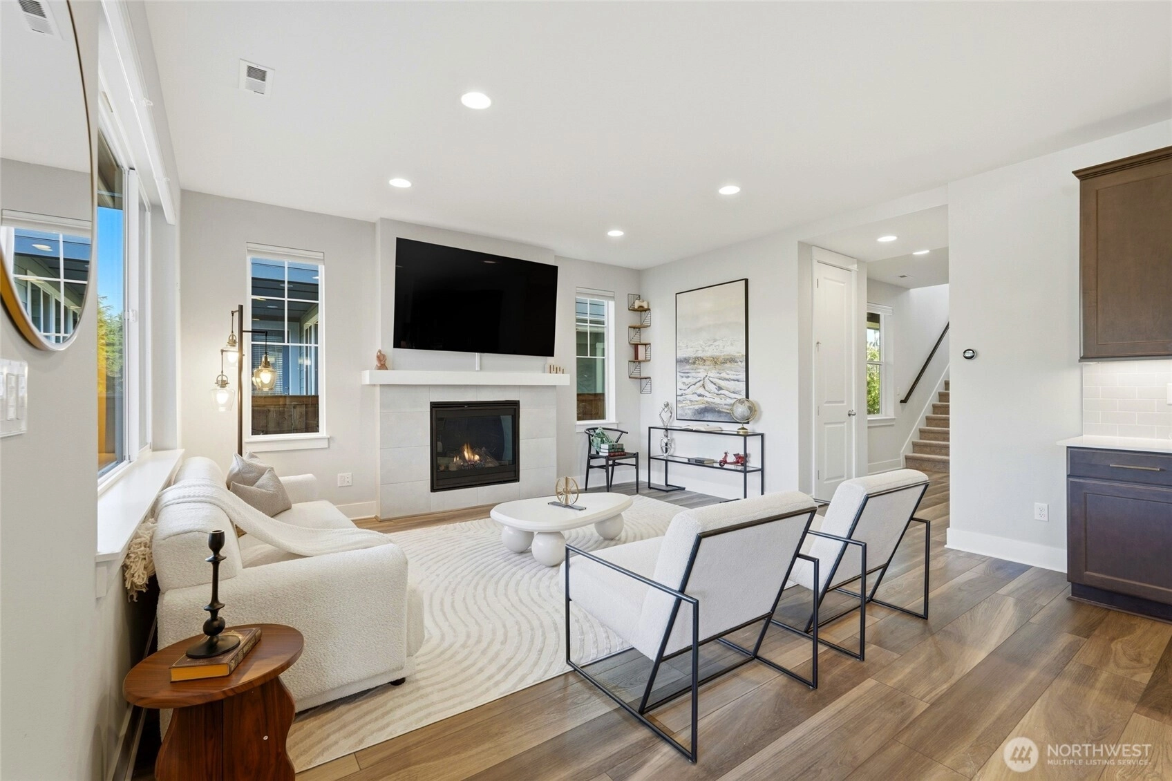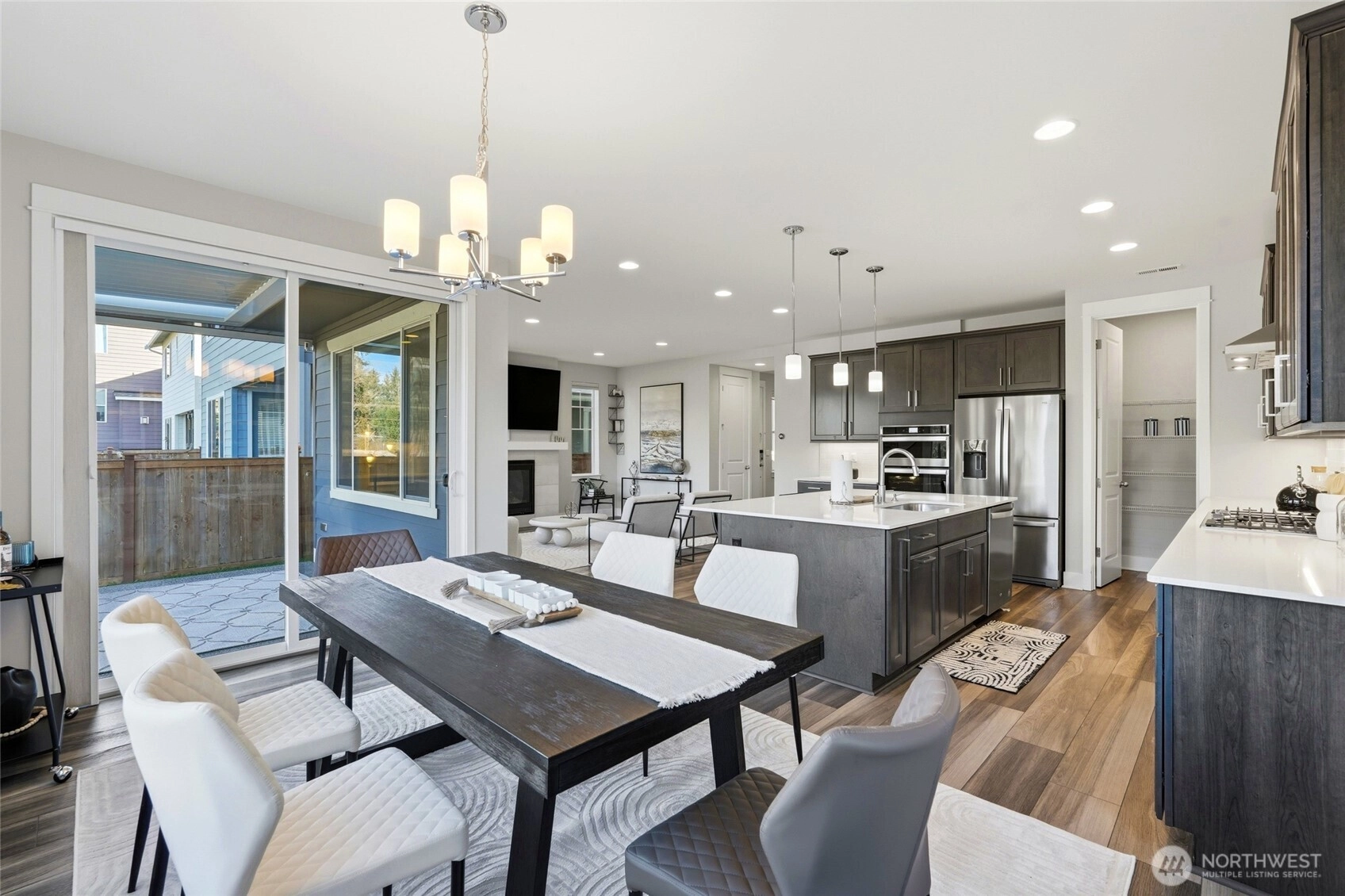 Situated in the desirable Overlook at Summit Park community in Maple Valley, this 2021-built home offers 2,560 sq ft of modern living in an exceptionally convenient location. Designed for flexibility, the main level features an open-concept great room ideal for entertaining, a well-equipped kitchen with abundant workspace and a walk-in pantry, plus a main-floor bedroom and ¾ bath that is perfect for guests, multi-generational living, or a private home office. Upstairs, the spacious primary suite includes a private bath and walk-in closet, complemented by two additional bedrooms and a full bath, plus a loft with built-in desk. Contemporary finishes throughout create a clean, modern feel, plus $35,000 in upgrades including • Govee Smart lighting • Motorized pergola shades • Tesla EV charger • Ring security camera system and • Central A/C. Step outside to a fully fenced, artificial turf backyard with covered patio designed for low maintenance and year-round enjoyment. The home also includes a 2-car garage and is ideally located near everyday amenities. Enjoy easy walking access to dining, shopping, and services at Four Corners, nearby recreation at Summit Park, and miles of outdoor adventure along the Cedar River Trail. The property is also within walking distance of Tahoma High School and located in the highly regarded Tahoma School District. This home offers the perfect balance of modern design, smart technology, and a vibrant, connected neighborhood lifestyle.