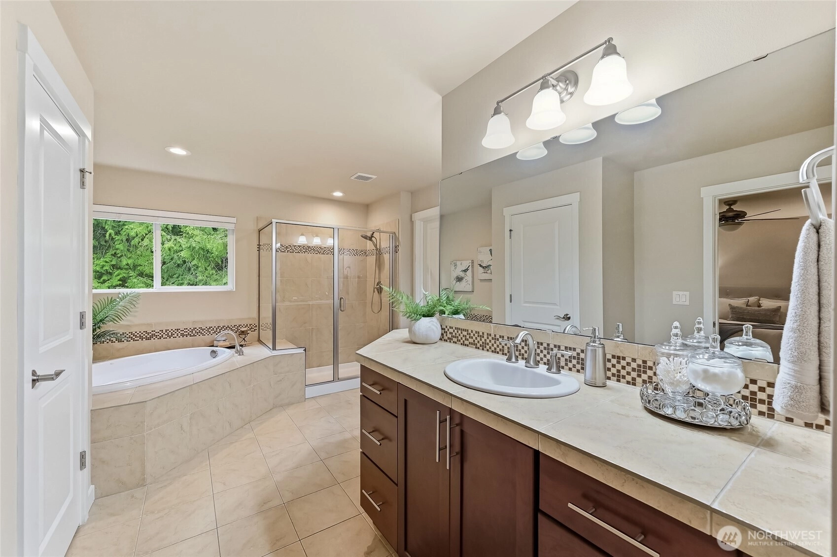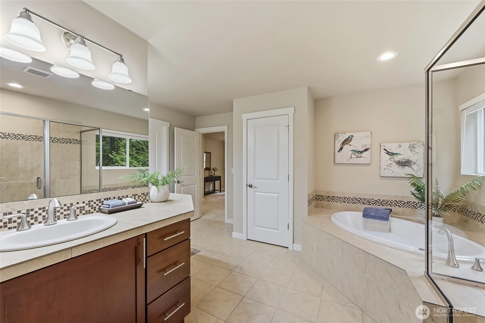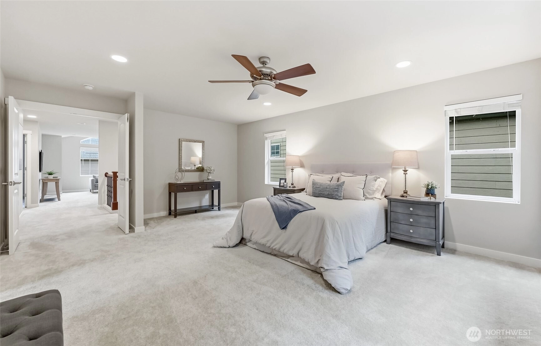 Nestled into a quiet, private setting within the highly regarded Redmond Ridge, this stunning 4-bedroom, 2.5-bath home offers a peaceful retreat in one of the Eastside's most sought-after master-planned communities. Thoughtfully designed streetscapes, mature landscaping, and nearby parks create an inviting neighborhood feel — while this particular homesite feels especially secluded and serene as it backs to a greenbelt. Inside, a spacious, light-filled floor plan and stylish finishes make this home truly move-in ready. The elegant kitchen features slab countertops, appealing cabinetry, stainless steel appliances, and a walk-in pantry — all opening to comfortable living and dining areas primed for everyday living and entertaining. Heading upstairs past the wrought-iron banisters awaits generous bedrooms, a bonus room, and a luxurious 5-piece primary bath. A handy upstairs laundry room limits your trips up and down stairs and keeps your "steps" on the beautiful surrounding trails. "Step" outside and enjoy easy access to Bristol Park, neighborhood trails, QFC, tennis courts, sports fields, and Microsoft commuter bus stops — plus convenient connections to Redmond, Bellevue, Kirkland, and major Eastside employers. Prestigious Lake Washington School District serves this address. Private, peaceful, and remarkably rare.