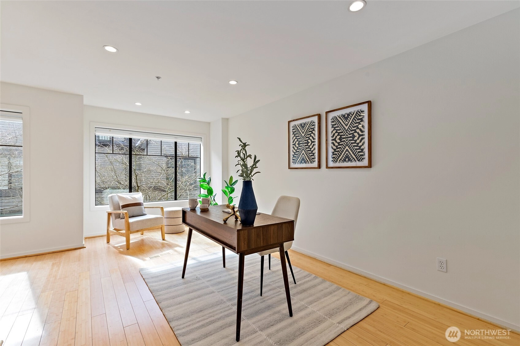 New Price! If you are seeking space, style, and location in equal measure, this three-story townhome puts you at the heart of Downtown Bellevue. The main level is designed for both everyday living and effortless entertaining — an open-concept layout anchored by a striking two-sided fireplace, a chef's kitchen with stainless steel appliances and gas range, and a patio that extends your living space outdoors. Hardwood floors, plantation shutters, and motorized blinds run throughout, giving every room a polished, move-in-ready finish. Upstairs, a spacious bedroom and full bath are complemented by a generously sized bonus room — ideal as a dedicated home office, gym, or media room. At the top, the primary suite is your retreat: a comfortable seating area, Juliette balcony, dual vanities, walk-in closet with custom organizers, and a beautifully appointed en-suite bath. Practical details are just as considered: secure underground parking with two tandem spaces, two storage units, and a newer hot water tank. All within a short distance of Bellevue Square and a short commute to Microsoft, Amazon, and Meta hubs — and served by the highly-rated Bellevue School District. This is downtown Bellevue living without compromise.