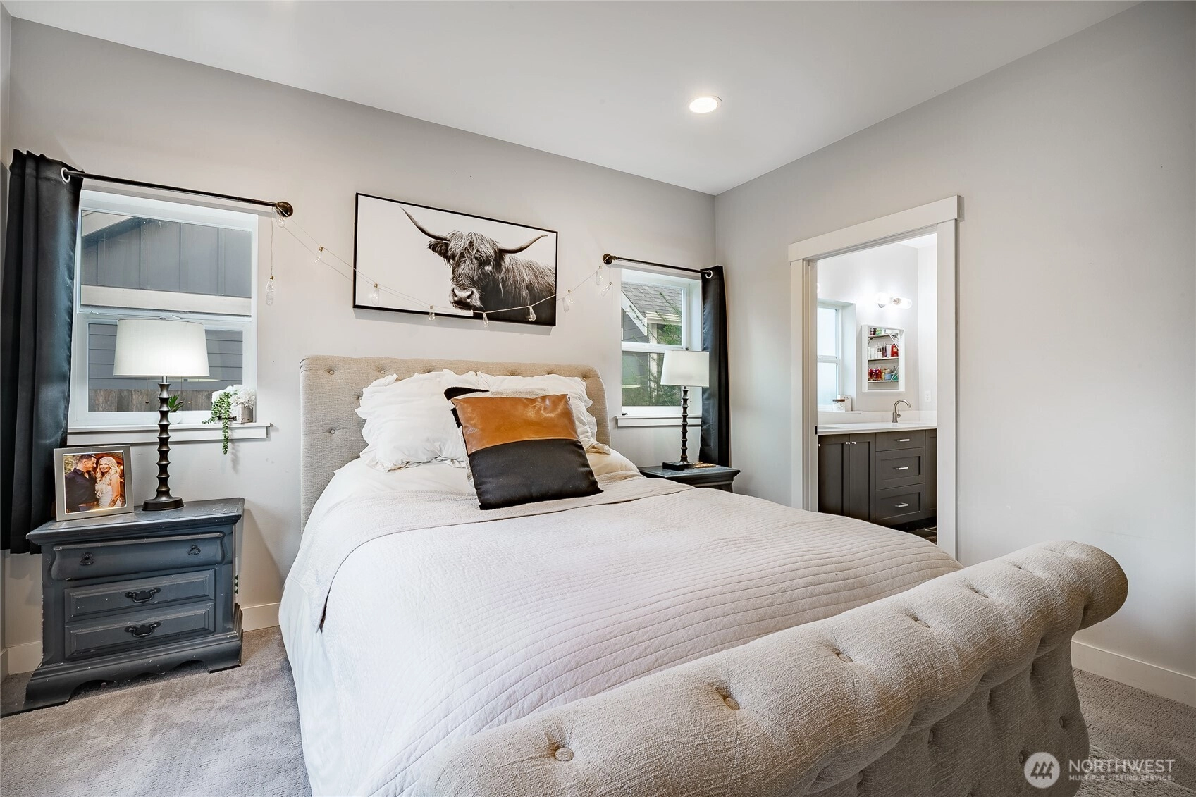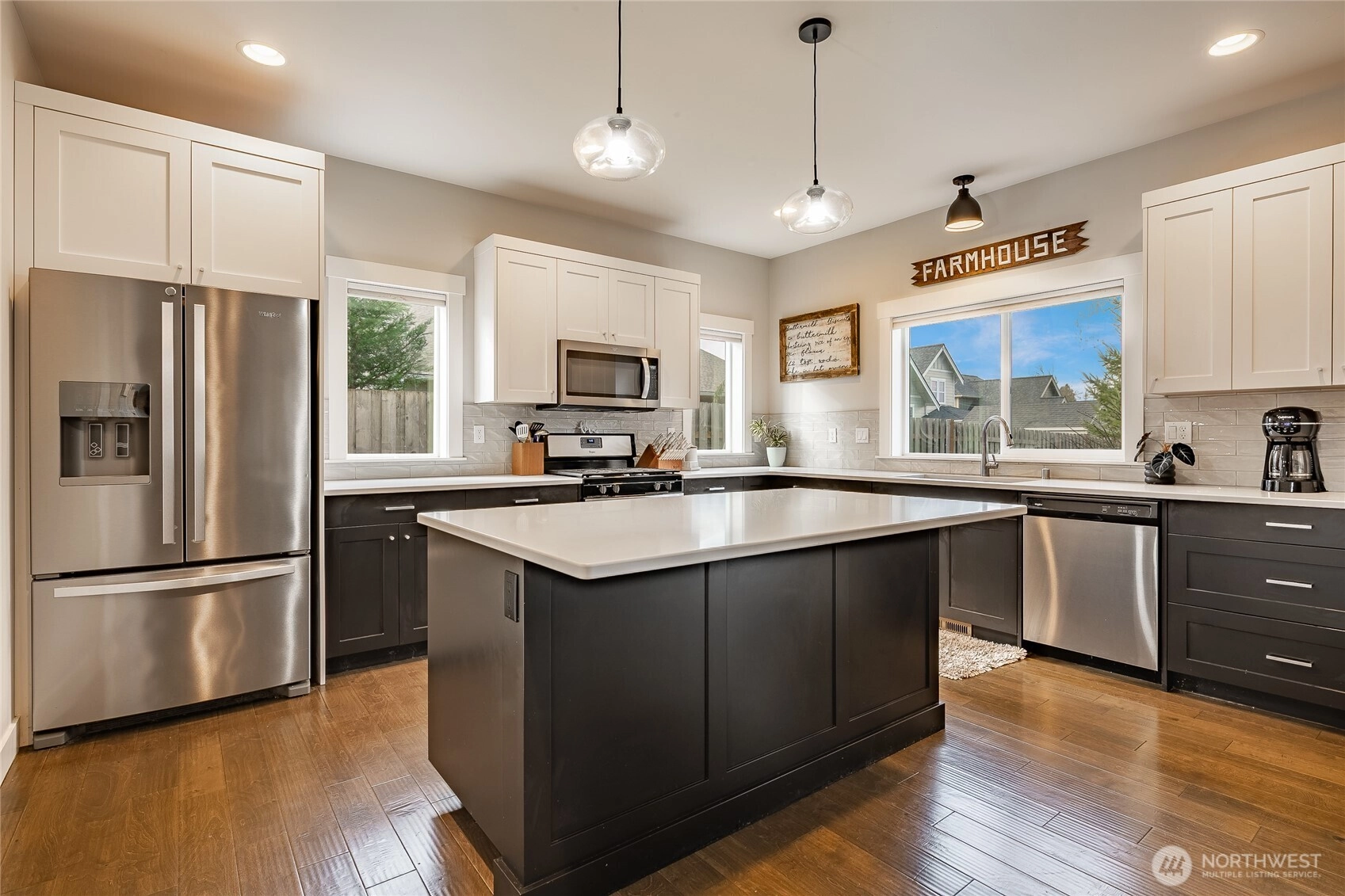 Tucked at the end of a quiet, wooded cul-de-sac in desirable East Lynden, this inviting 2,976 S.F. home offers the perfect blend of space, comfort, and privacy! With 5 bedrooms, 3 bathrooms, and a versatile bonus room, there is room for everyone to live, work, and gather together. Step inside to a bright, natural light–filled kitchen that is designed for everyday living and entertaining, featuring excellent functionality, generous quartz counter space, and a convenient walk-in pantry. It has stainless steel appliances and an open dining area that flows onto a spacious deck overlooking the serene, private backyard. This peaceful outdoor setting is perfect for summer gatherings, outdoor dining, or simply relaxing and enjoying the beauty of the outdoors. The main level offers a spacious primary retreat, complete with a full en-suite bath and walk-in closet. 4 additional bedrooms are upstairs, with a bonus room that has plenty of space for relaxing and gathering. Ideally located close to schools, parks, and scenic walking trails, this home offers both tranquility and convenience, and every space invites connection in the heart of one of Lynden’s most desirable neighborhoods. Come and unpack, settle in, and set down some roots in a place where your next chapter begins, and lasting memories are waiting to be made. Welcome Home!