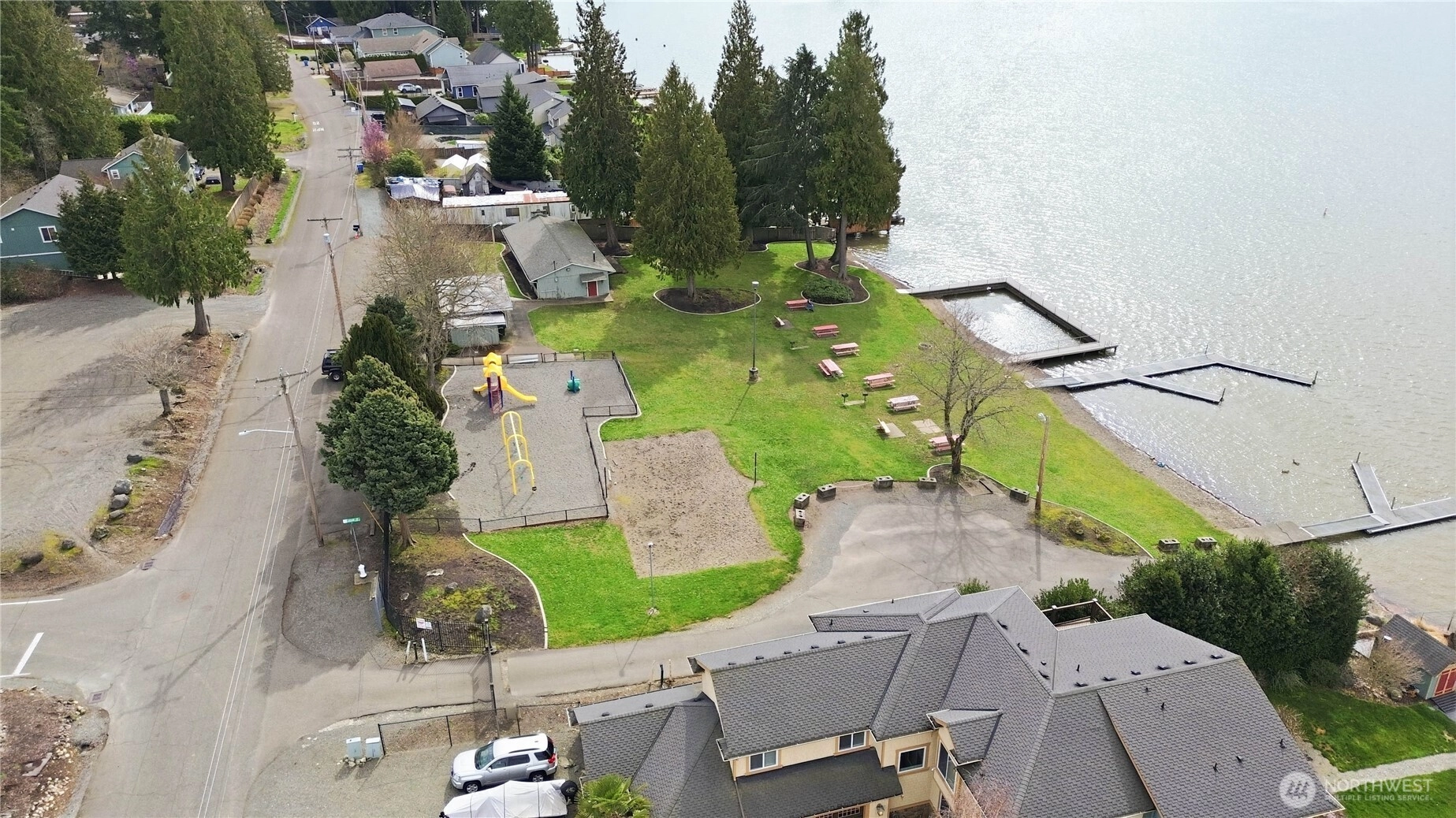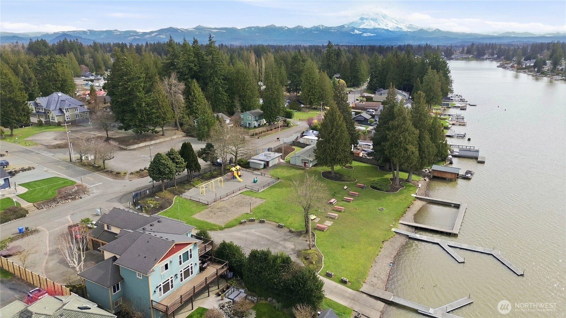 Welcome to Inlet Island at Lake Tapps. Tucked just one home back from the water, this charming rambler offers peekaboo lake views and the peaceful feeling of island living. Driving across the causeway and leaving the busy town behind, you instantly feel a sense of calm and relaxation. The home sits on a good-sized yard, perfect for BBQs and entertaining. Inside you’ll find hardwood flooring, fresh interior paint, new carpet, and a newly updated bathtub and shower. The home has been maintained and offers a solid foundation for future updates with a little sweat equity. Enjoy the covered patio and the quiet neighborhood setting where deer wander through and eagles often soar overhead. Located in a desirable community with private access to the neighborhood park featuring gated entry, boat launch, docks, clubhouse, playground, sport court, and community events including outdoor movie nights. Perfect for summer boating and some of the best fishing in Western Washington. A great location for commuting while still feeling like a peaceful getaway.